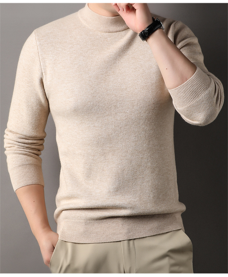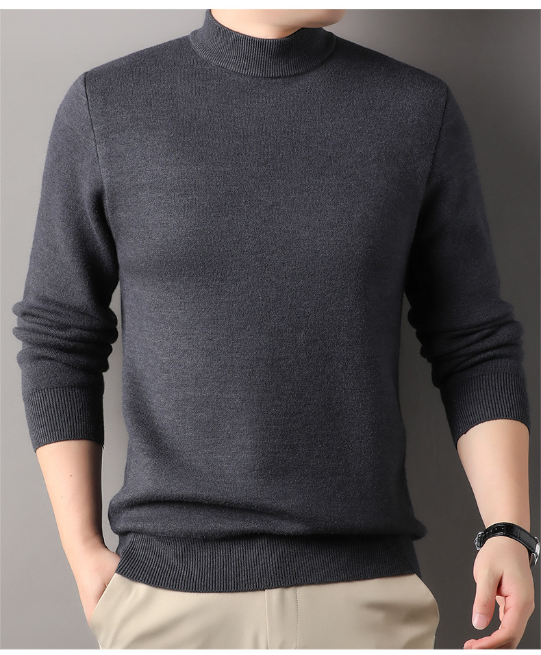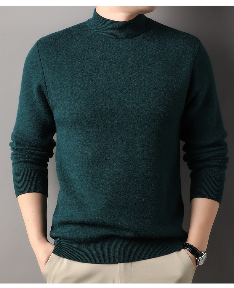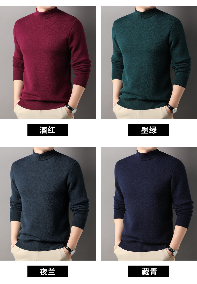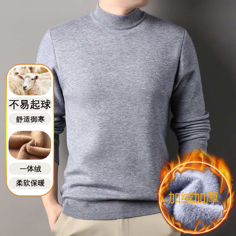 [양모 원피스 벨벳 포함] 남자 스웨터 세미 터틀넥 기모 두꺼워 가을과 겨울 스웨터 남성용 스웨터
