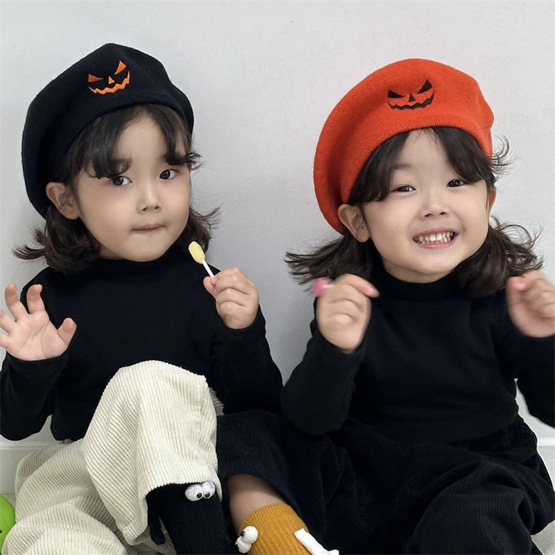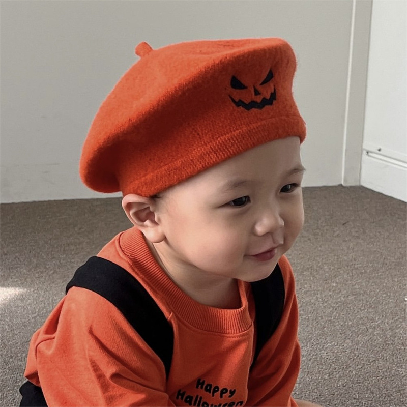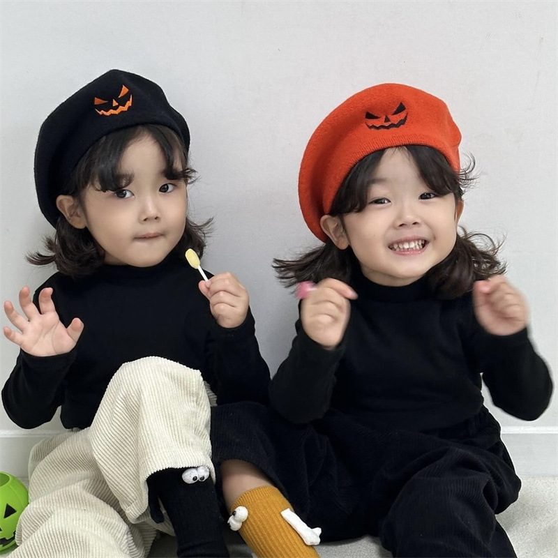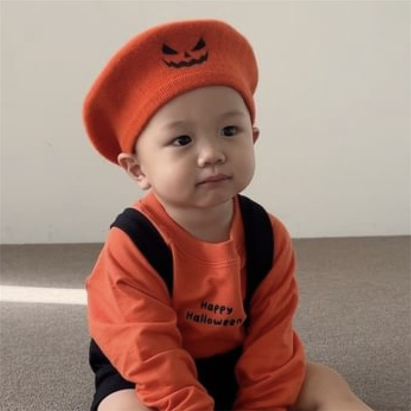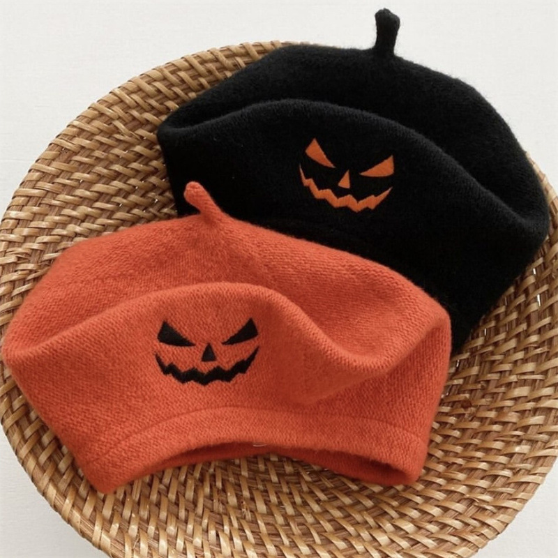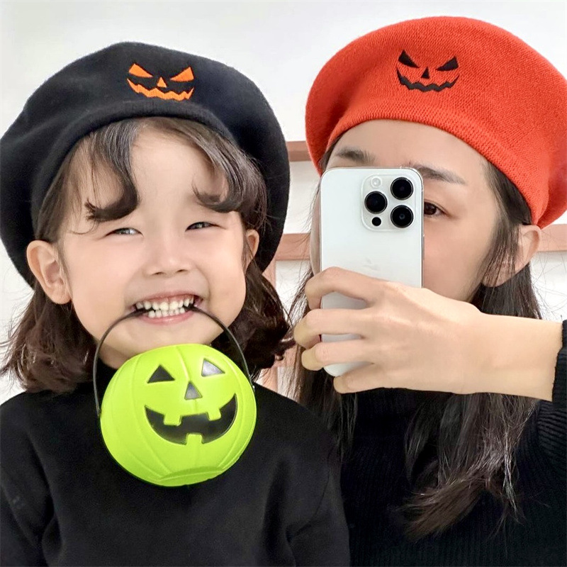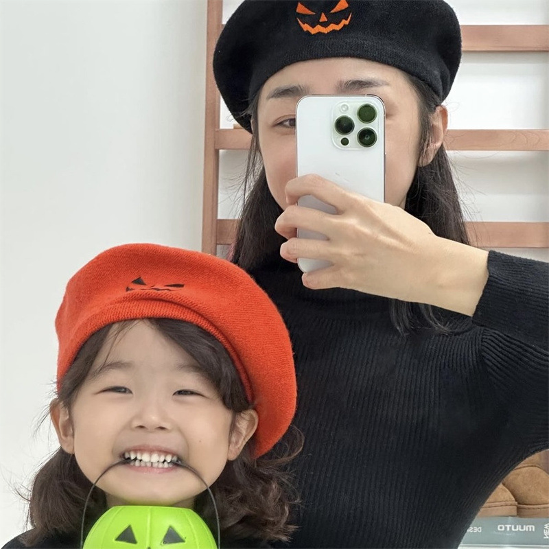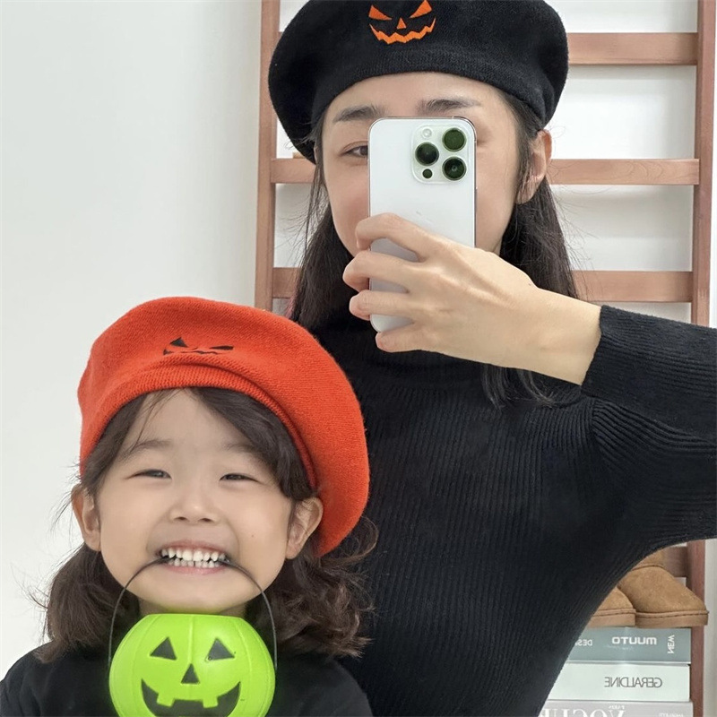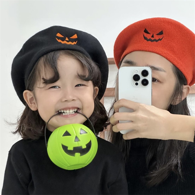 Ins 할로윈 베레 웃는 호박 어린이 성인 부모-어린이 귀여운 따뜻한 양모 한국 블로거 같은 스타일