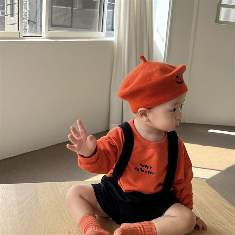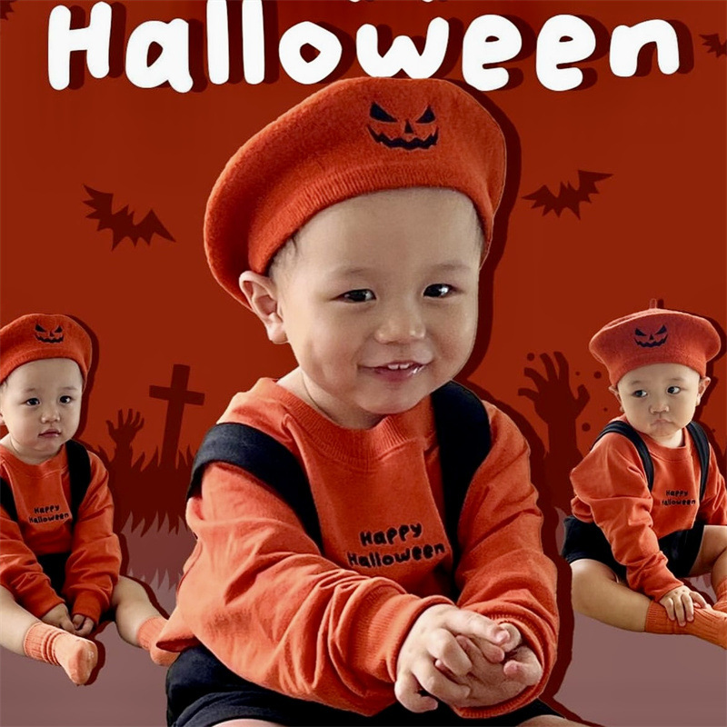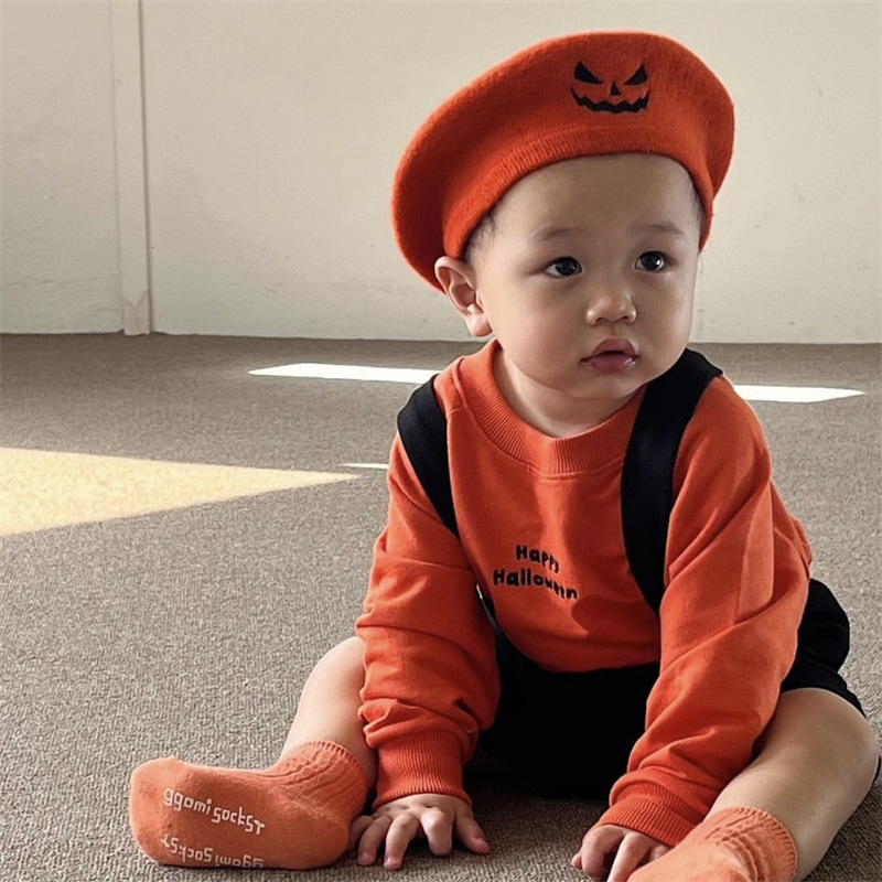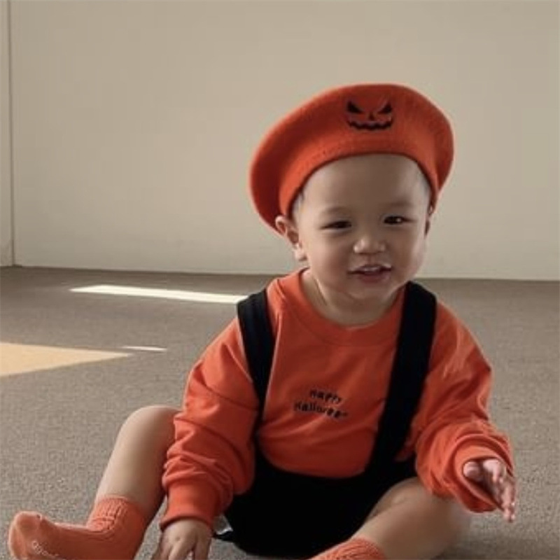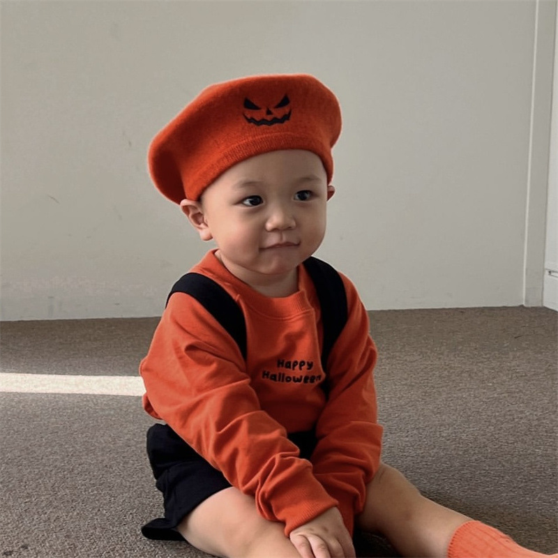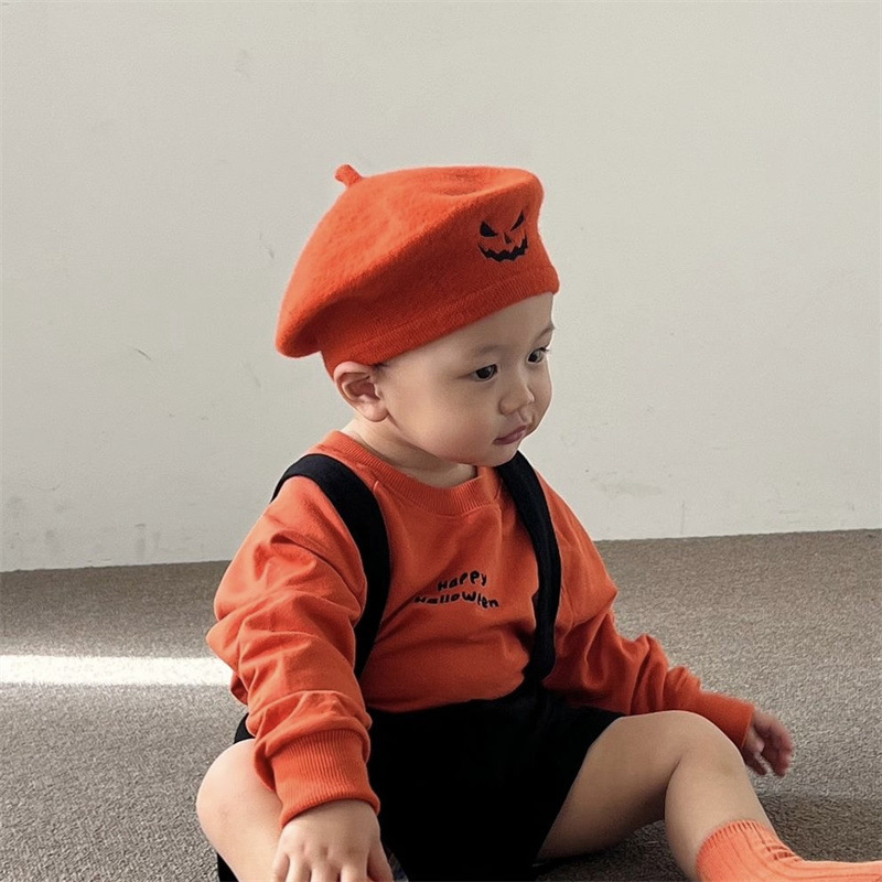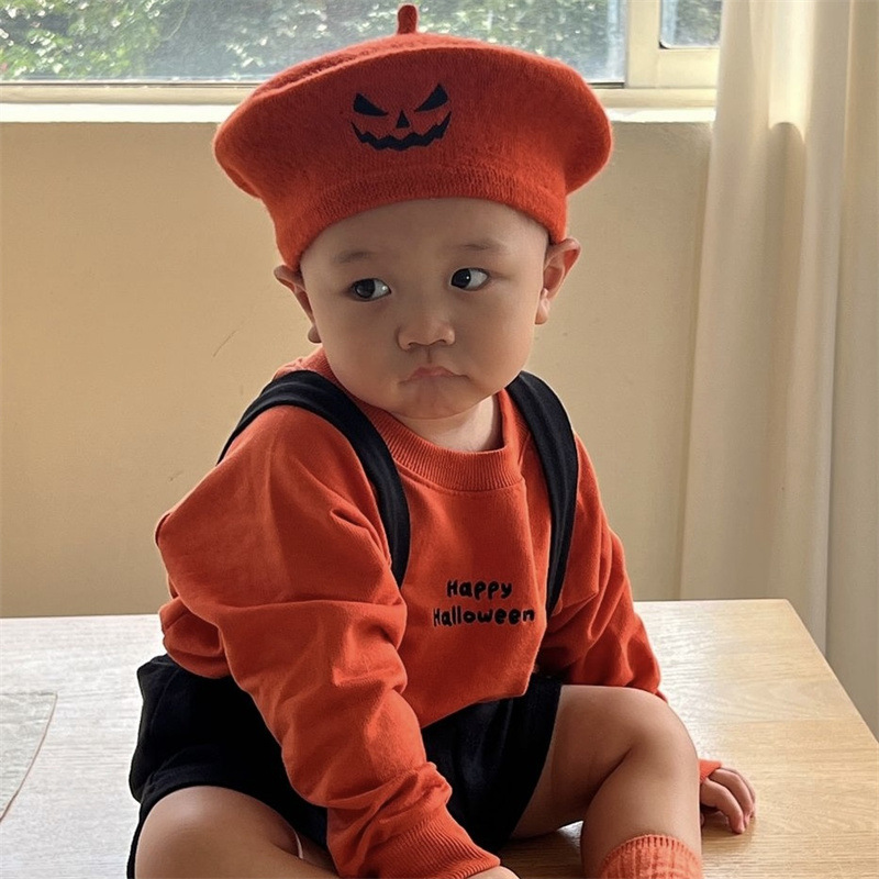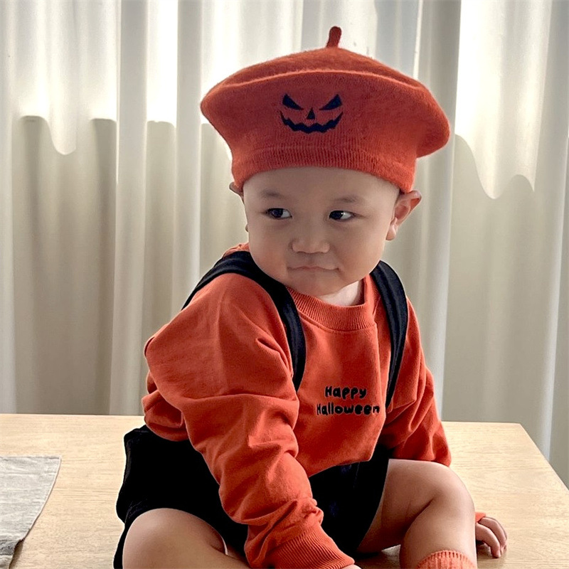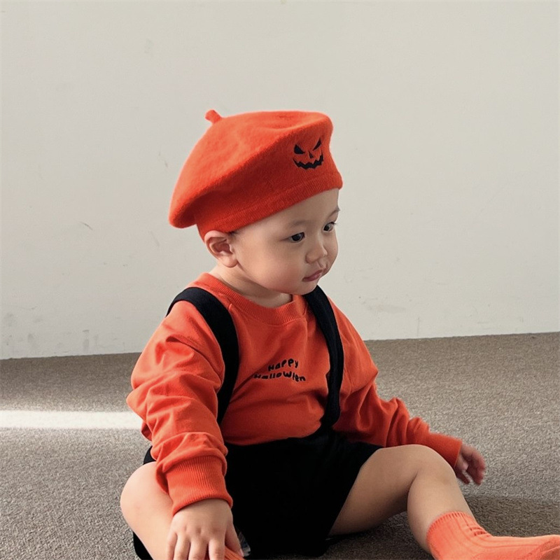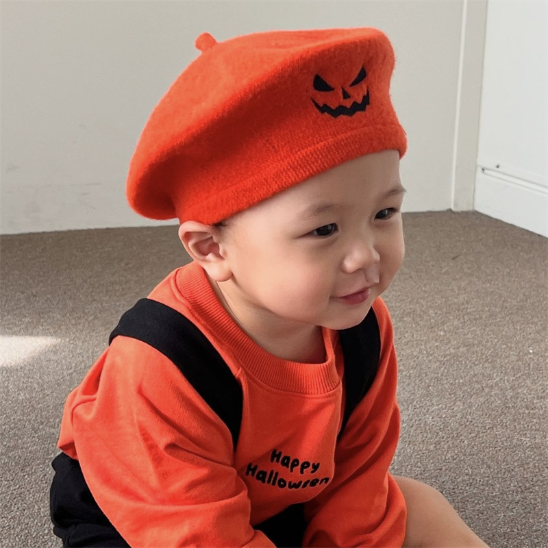 Ins 할로윈 베레 웃는 호박 어린이 성인 부모-어린이 귀여운 따뜻한 양모 한국 블로거 같은 스타일