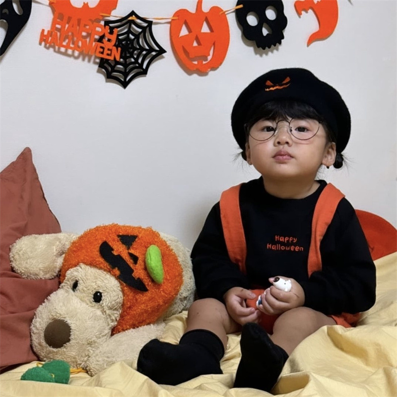 Ins 할로윈 베레 웃는 호박 어린이 성인 부모-어린이 귀여운 따뜻한 양모 한국 블로거 같은 스타일스토어 가기