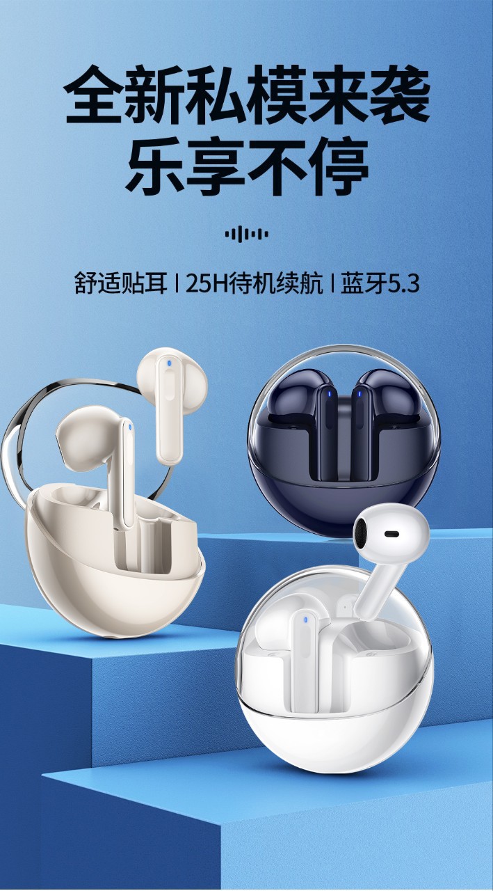 2024 새로운 개인 모델 TWS 진정한 무선 블루투스 헤드셋 5.3 투명 스마트 터치 ENC 통화 소음 감소 헤드셋스토어 가기