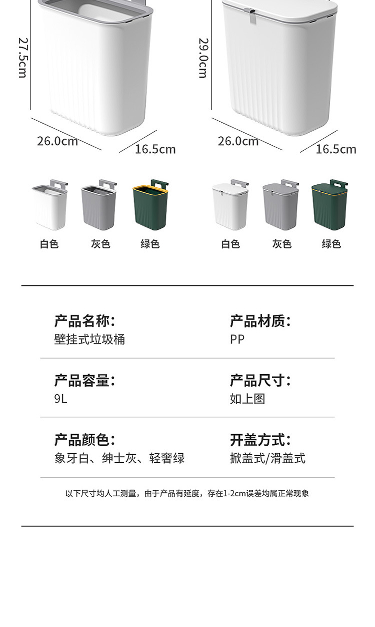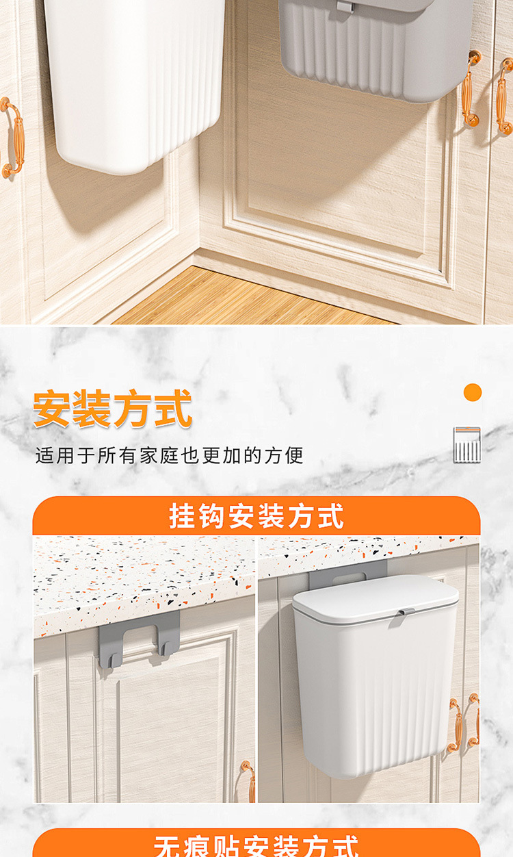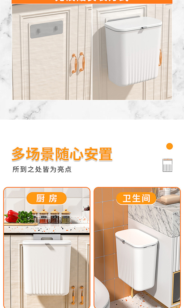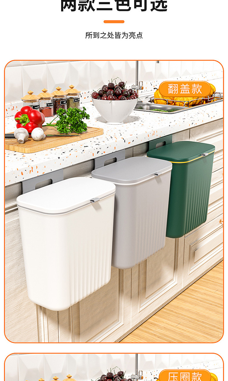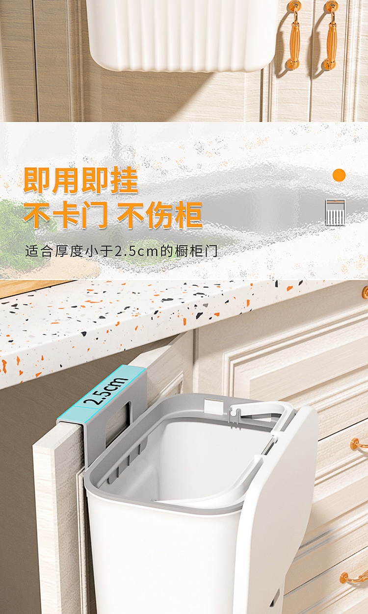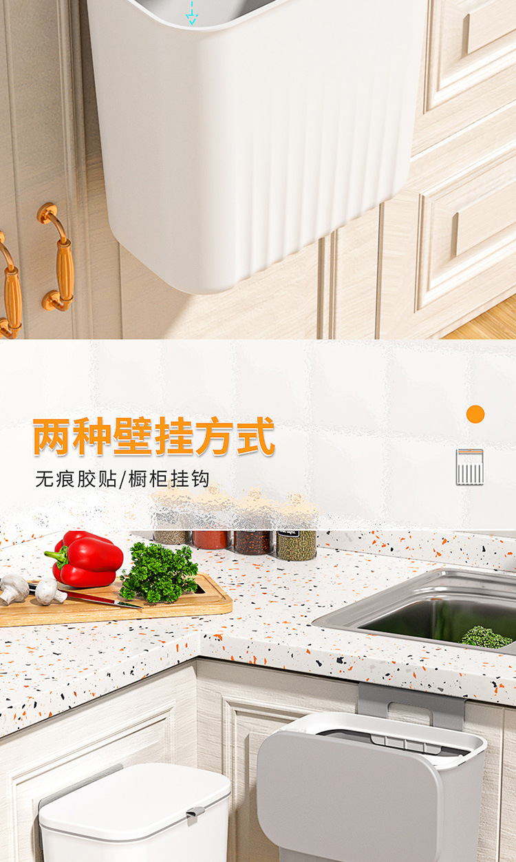 주방 휴지통 벽걸이 캐비닛 도어 욕실 화장실 가정용 뚜껑 슬라이딩 구멍이없는 플라잉 곤충 컬렉션 Di Xuan스토어 가기