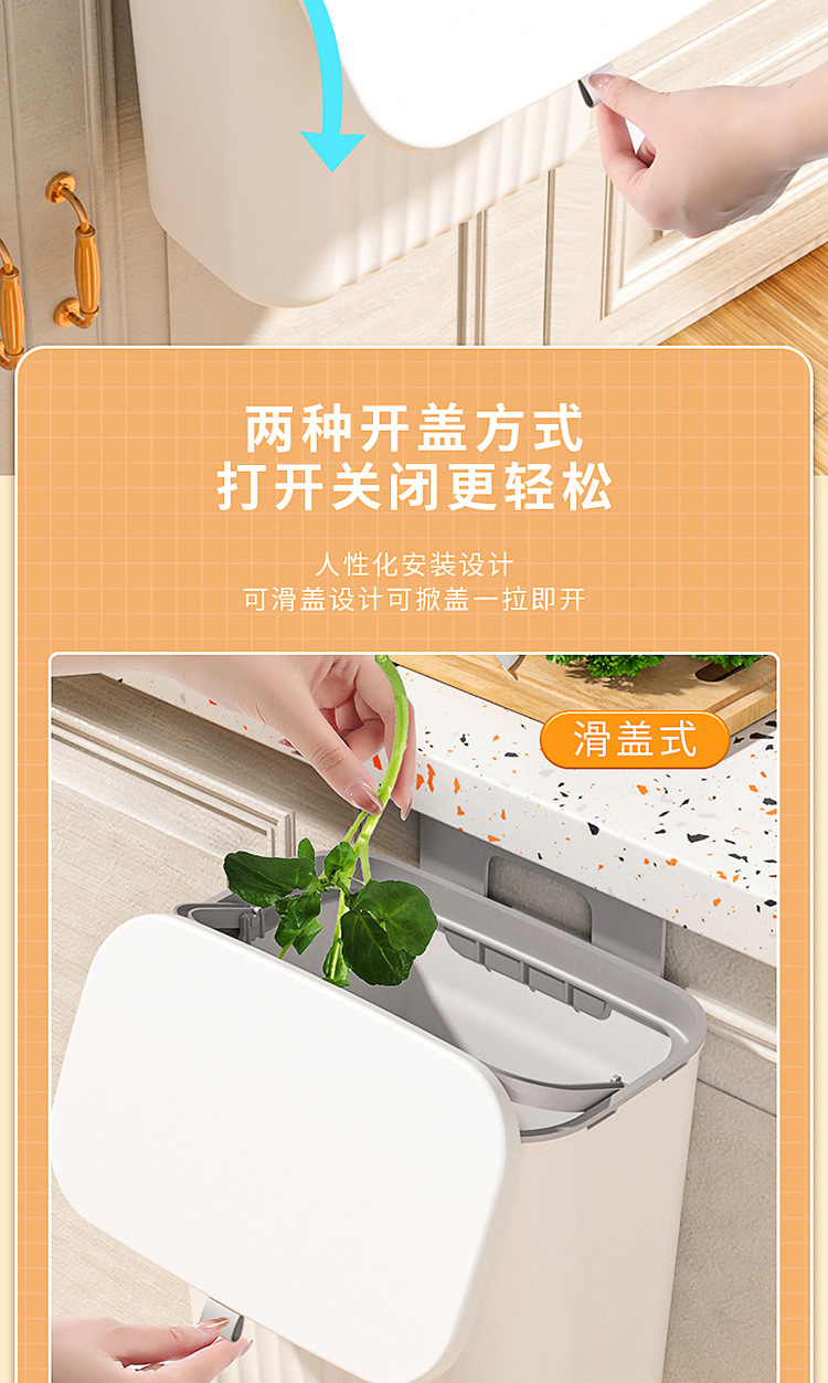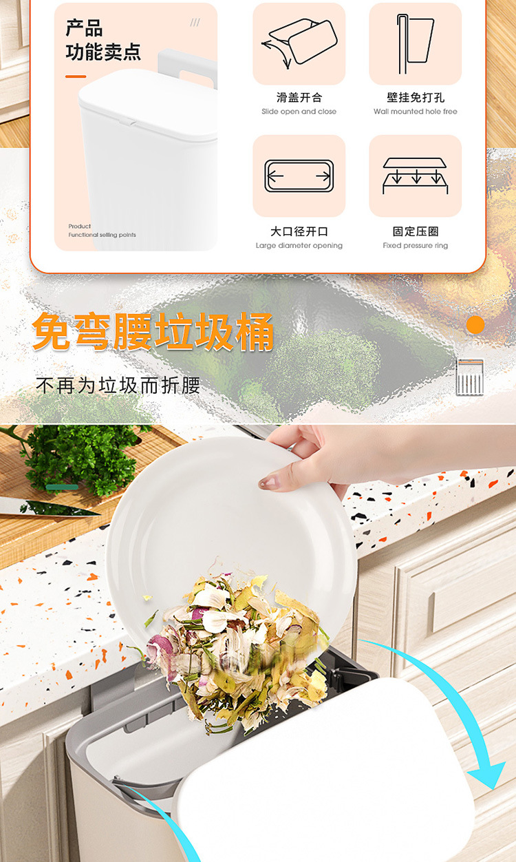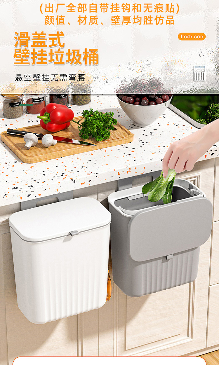 주방 휴지통 벽걸이 캐비닛 도어 욕실 화장실 가정용 뚜껑 슬라이딩 구멍이없는 플라잉 곤충 컬렉션 Di Xuan
