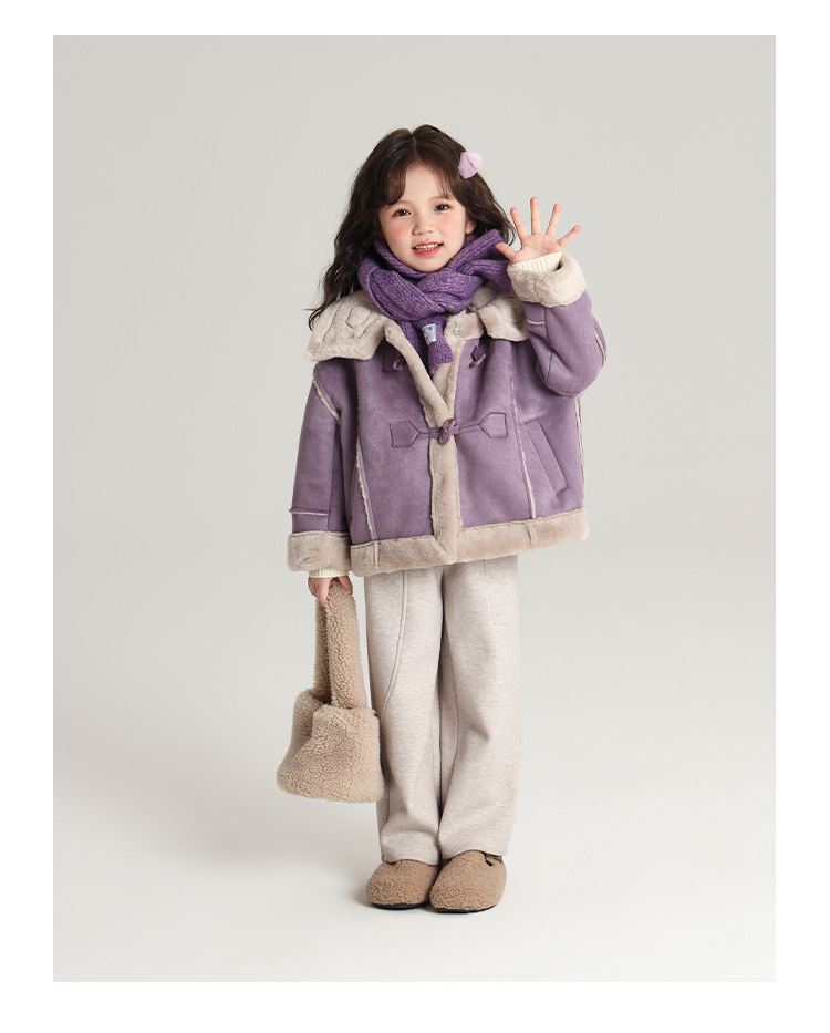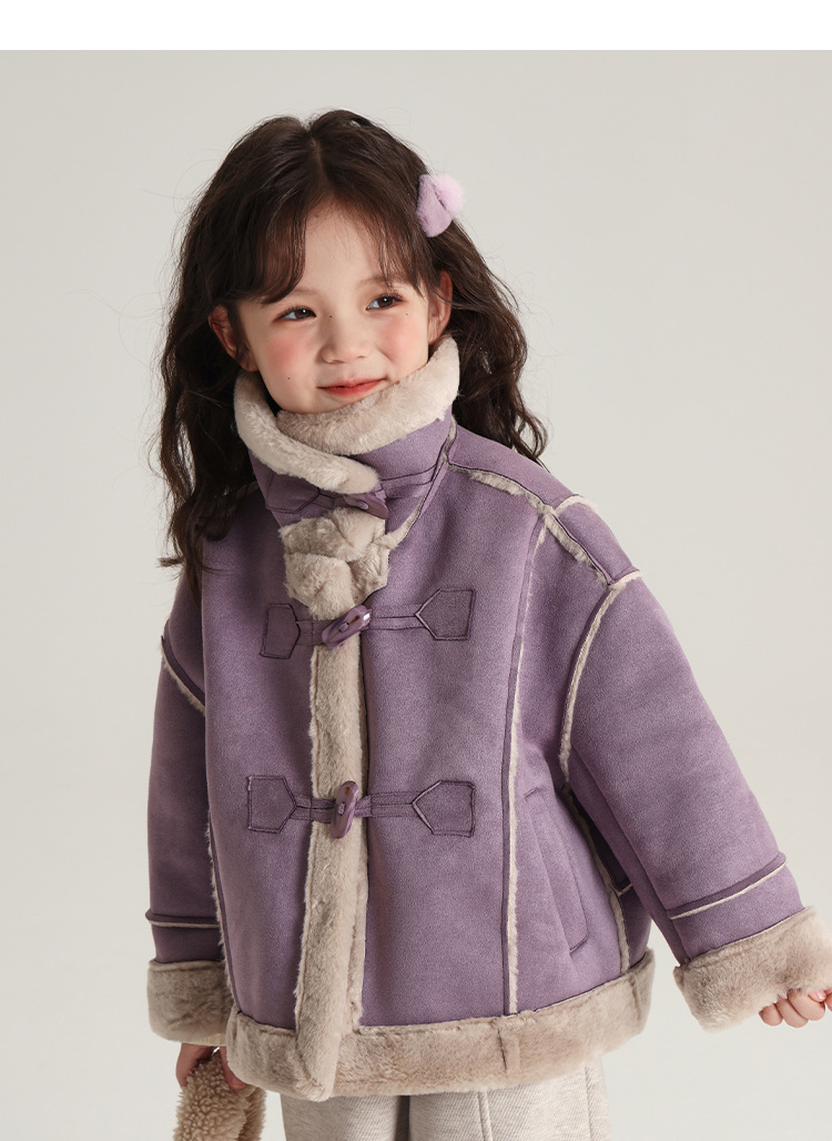 푸딩하루 여아용 플리스 자켓 2025 겨울 신상 아동용 스타일리시 플리스 두꺼운 뿔단추 자켓스토어 가기