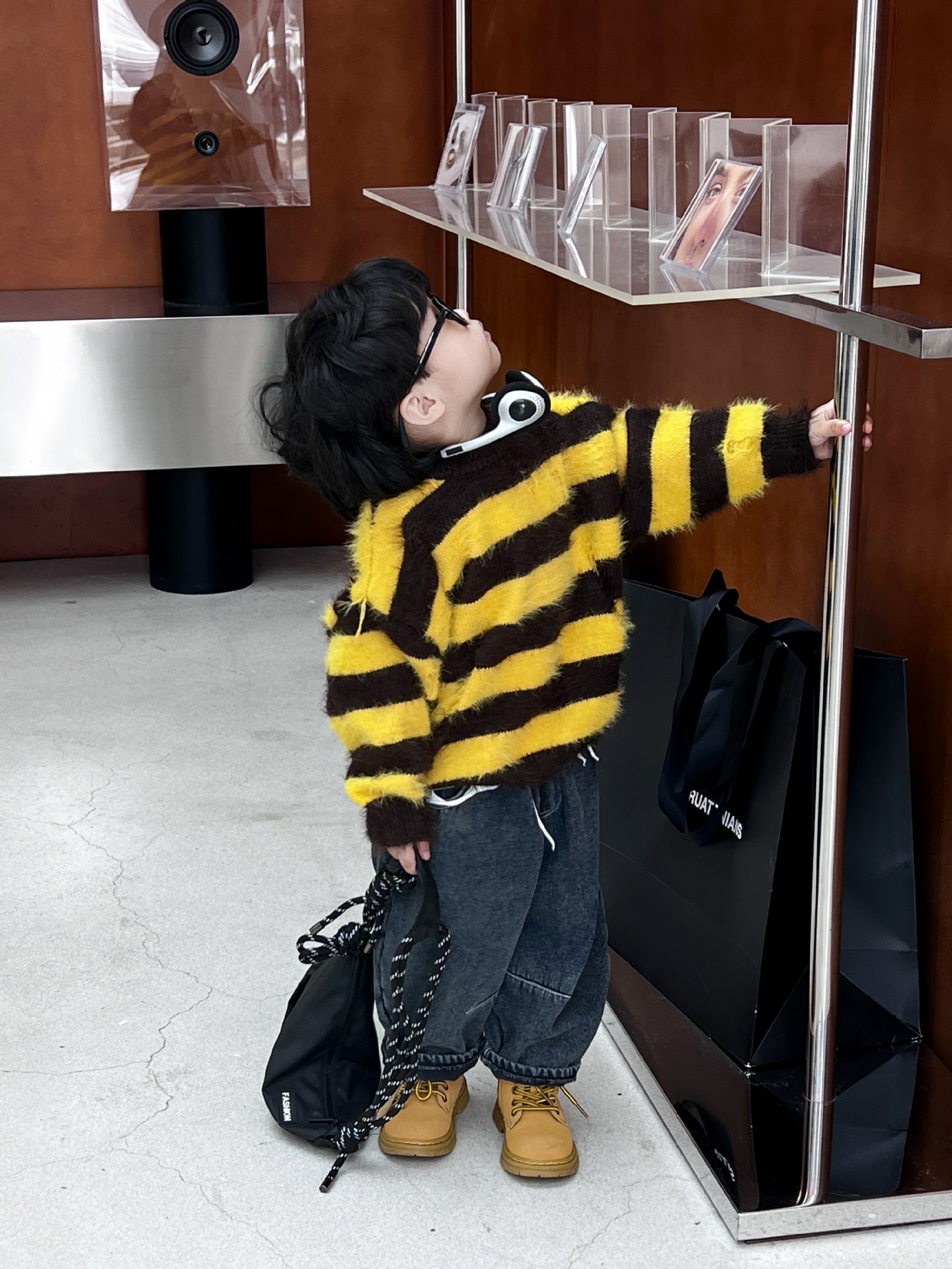 아동용 스웨터 겨울옷 유아용 패셔너블하고 세련된 남아용 스트라이프 두꺼운 니트 스웨터 트렌디하고 따뜻함스토어 가기