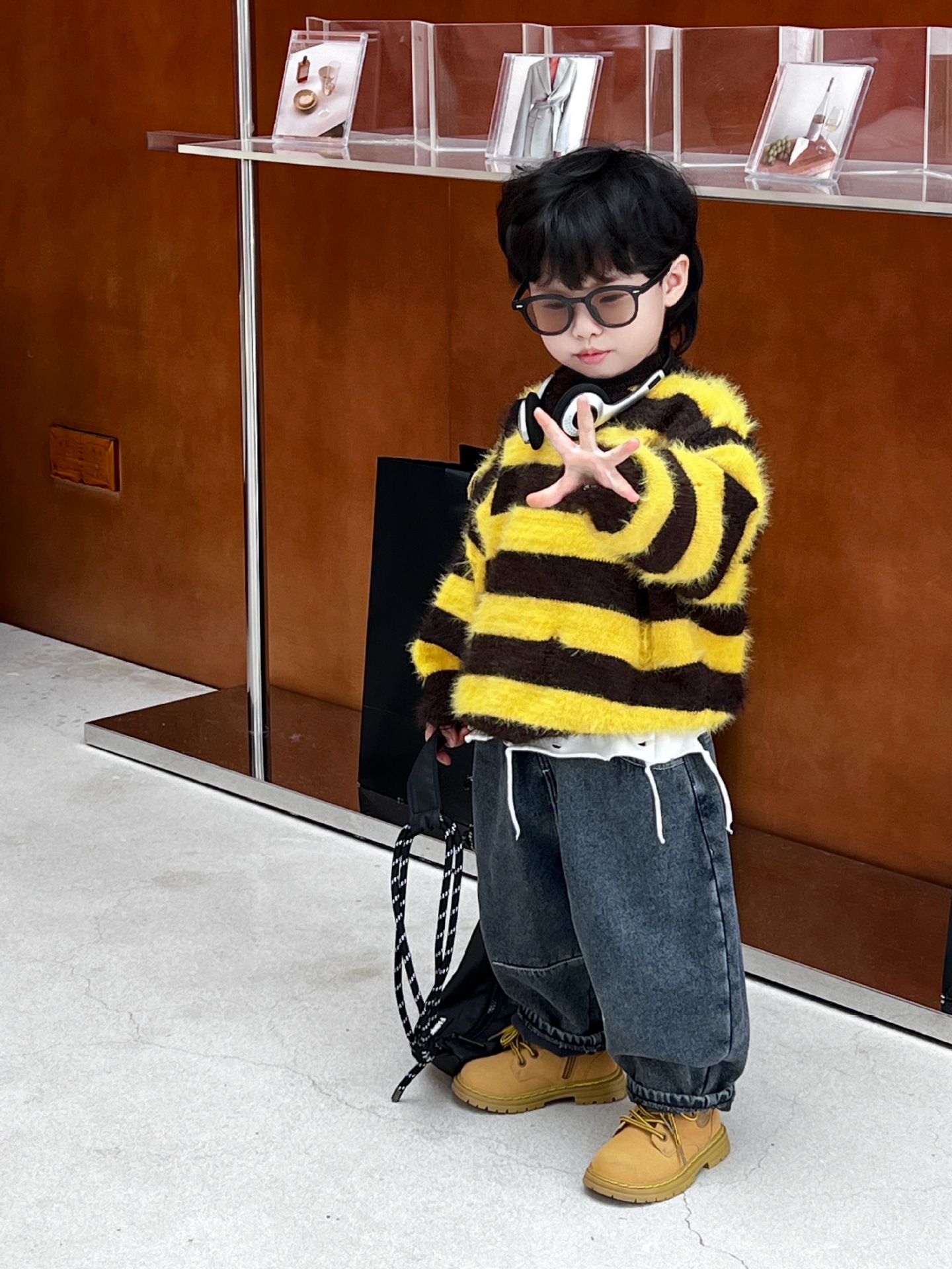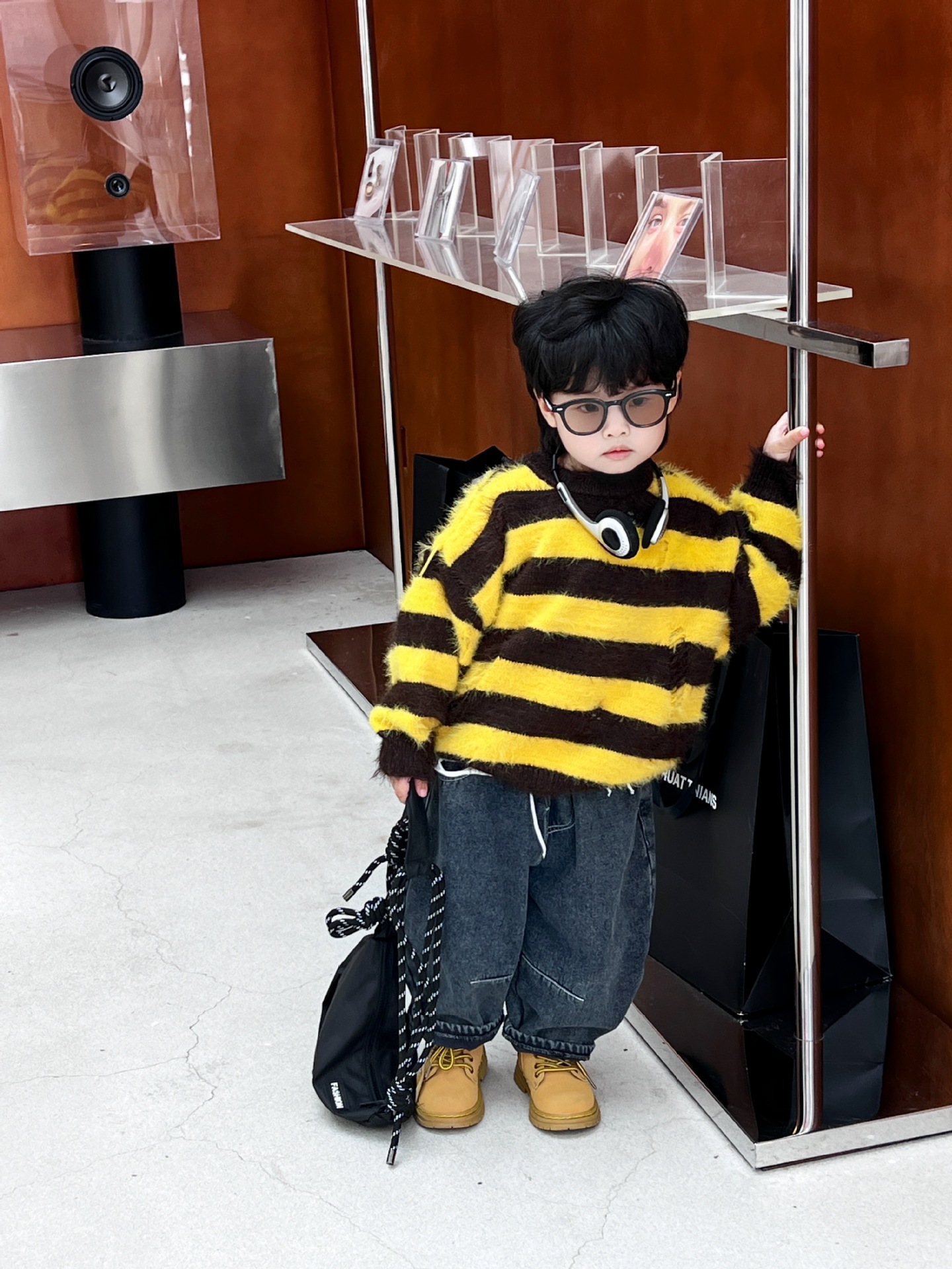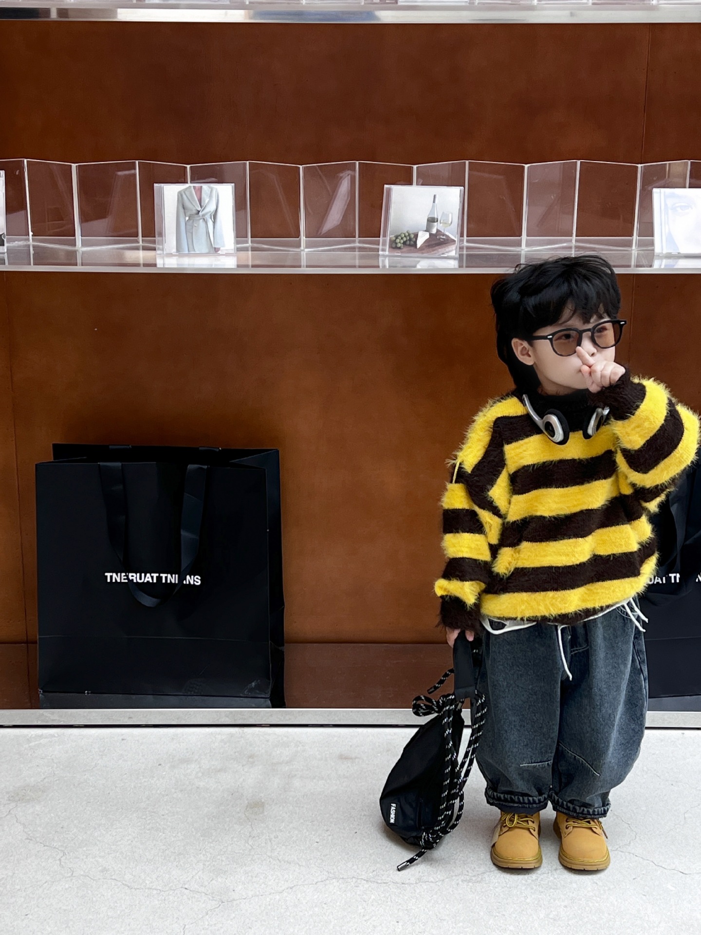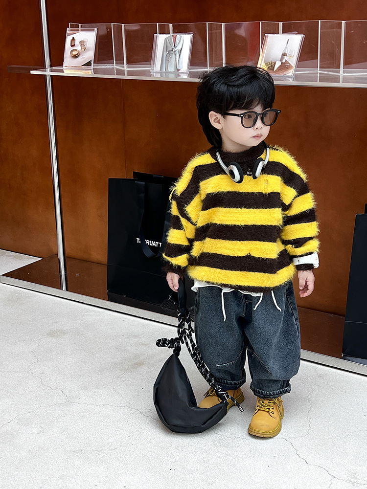 아동용 스웨터 겨울옷 유아용 패셔너블하고 세련된 남아용 스트라이프 두꺼운 니트 스웨터 트렌디하고 따뜻함