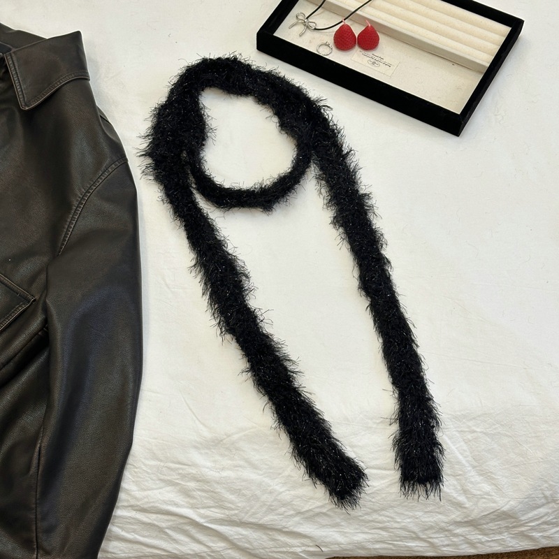 봉제 틈새 디자인 긴 좁은 스카프 여성의 가을과 겨울 Y2K 새로운 패션 솔리드 컬러 올 매치 장식 작은 스카프