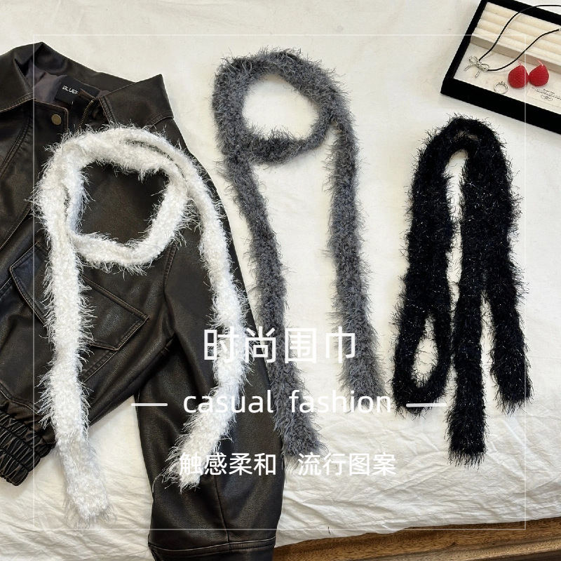 봉제 틈새 디자인 긴 좁은 스카프 여성의 가을과 겨울 Y2K 새로운 패션 솔리드 컬러 올 매치 장식 작은 스카프스토어 가기