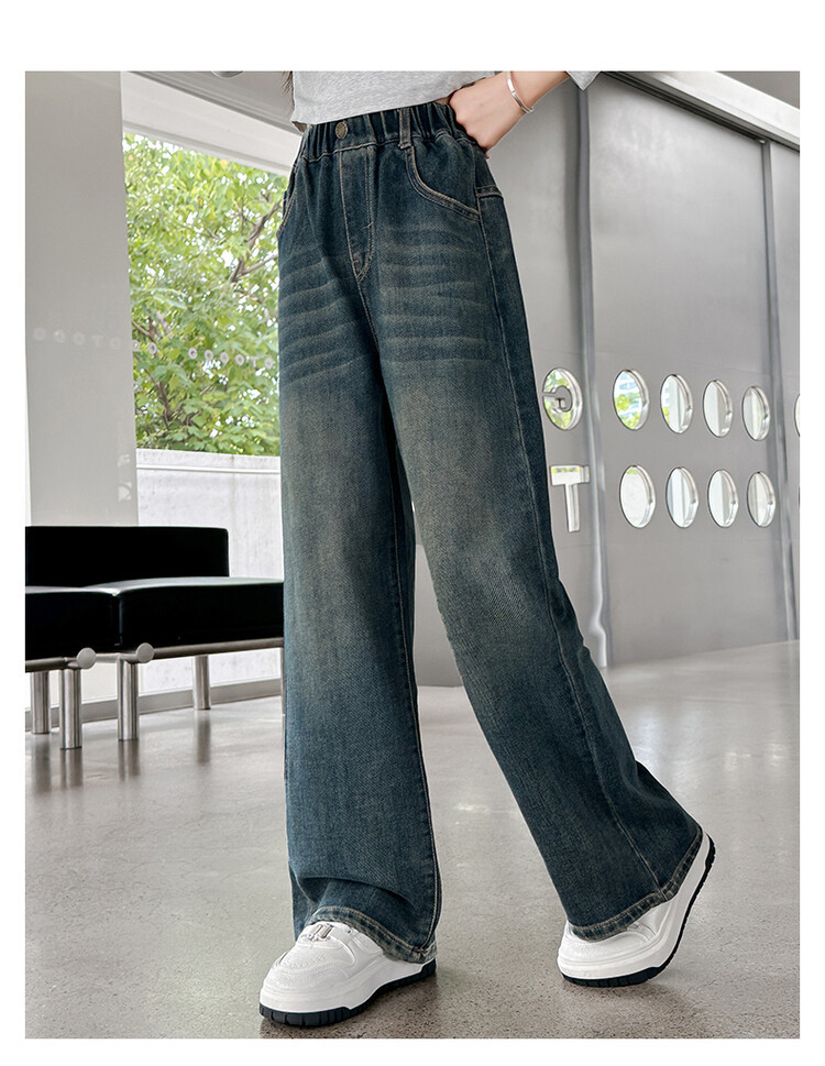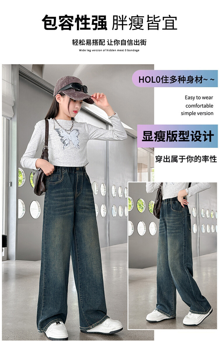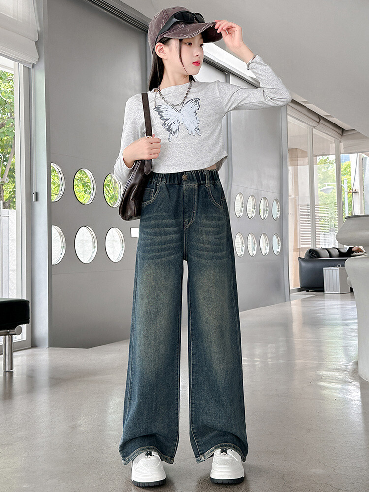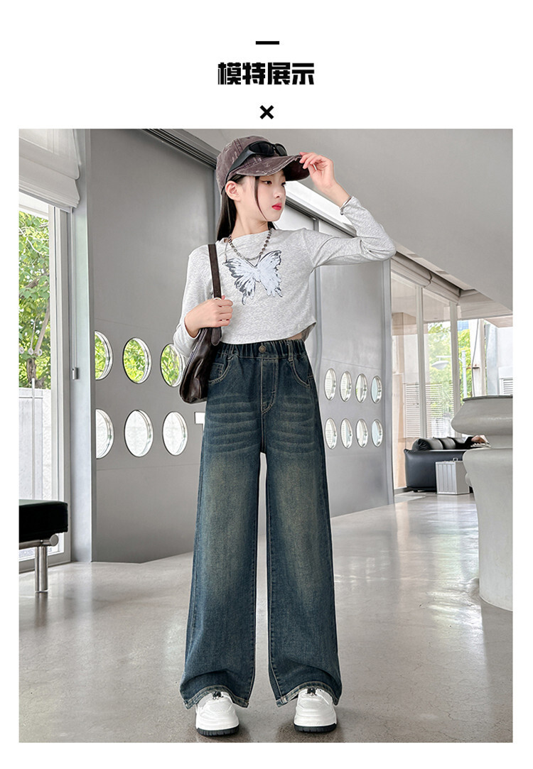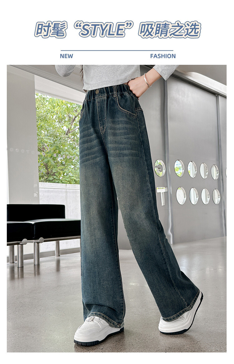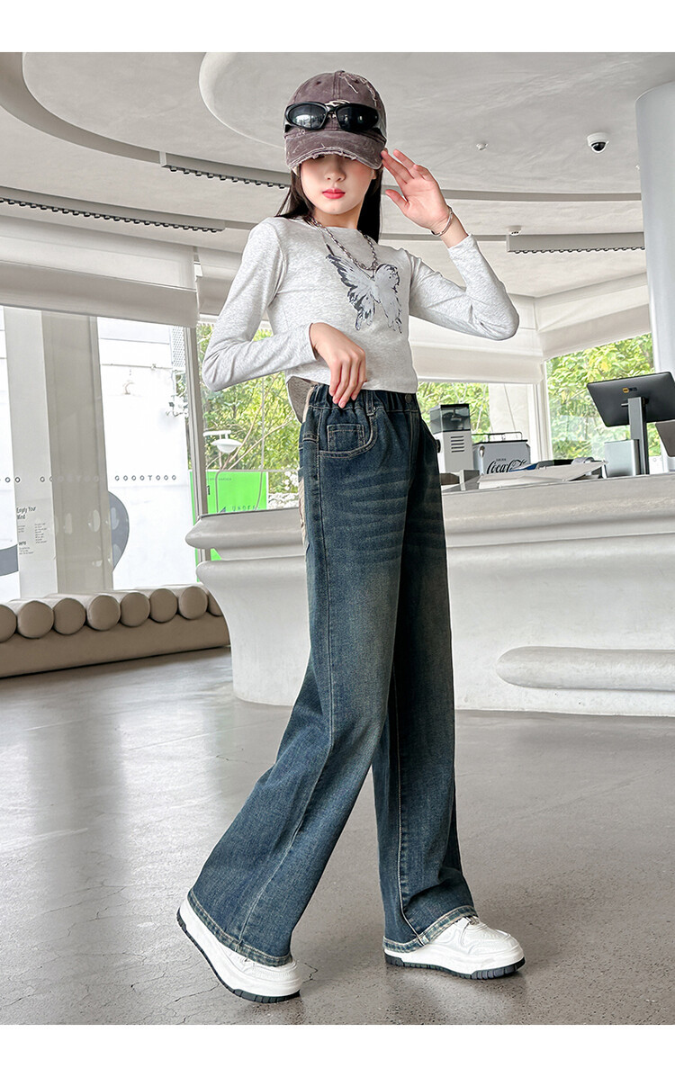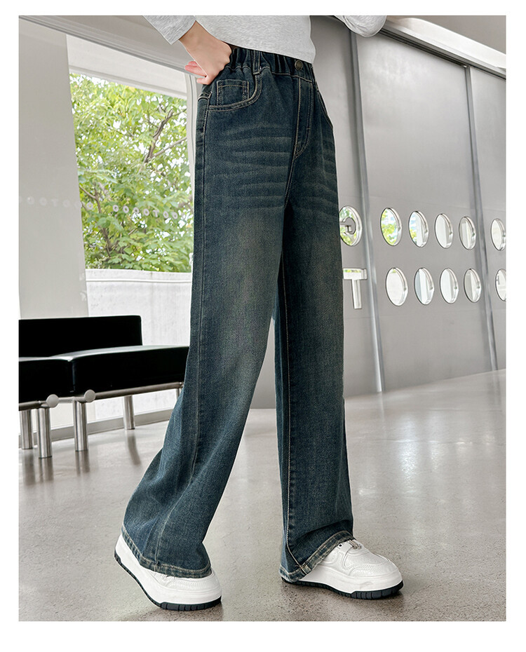 가을 중다 소녀 청바지 아동복 새로운 소녀 넓은 다리 바지 느슨한 스트레이트 바지 간단한 유행스토어 가기