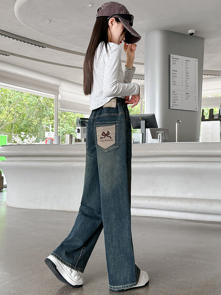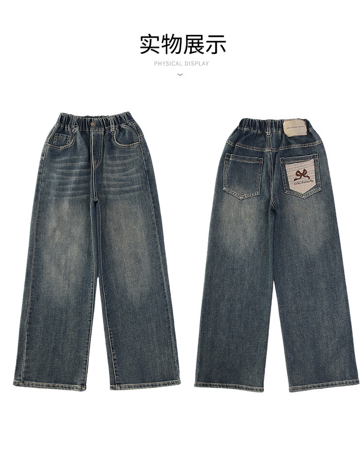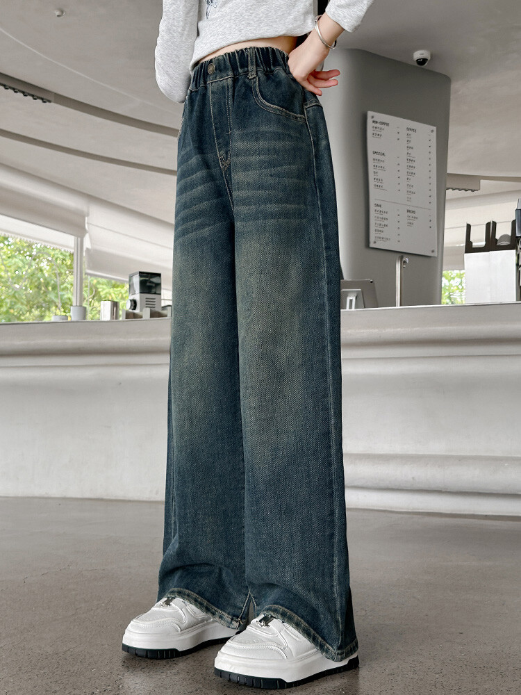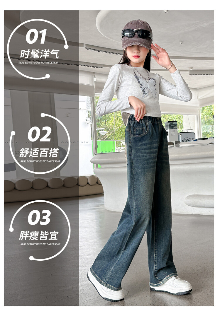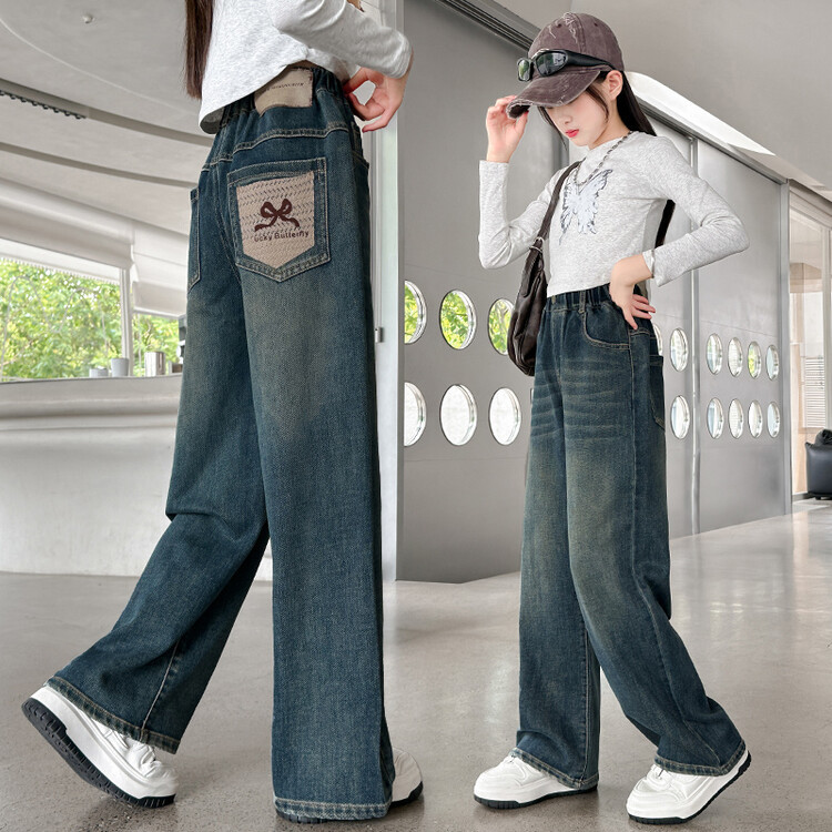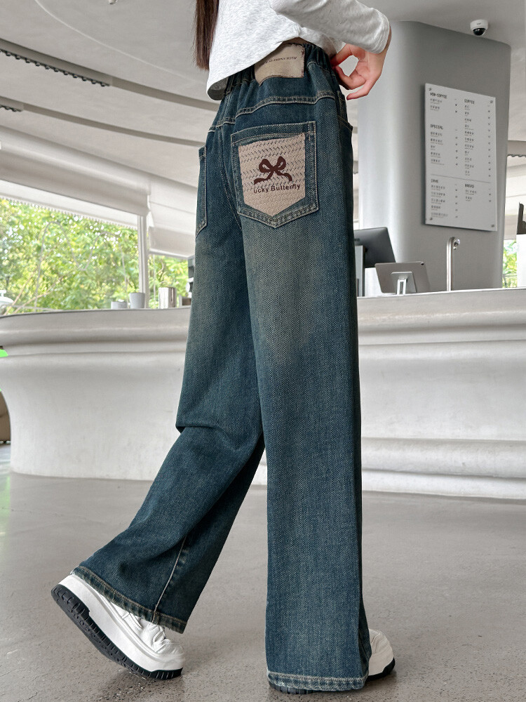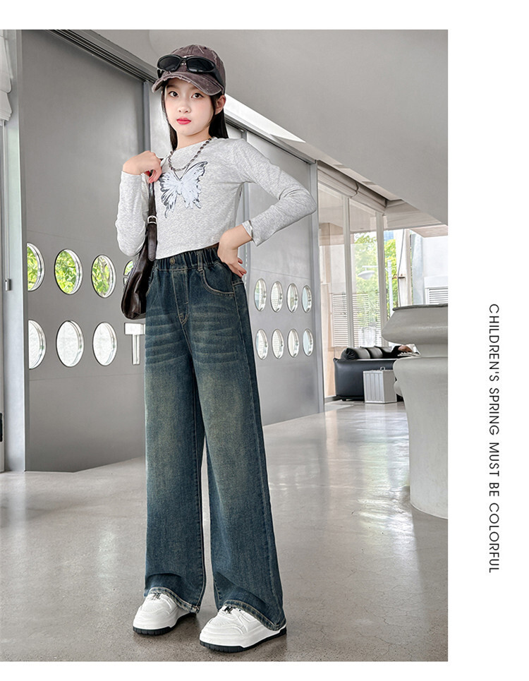가을 중다 소녀 청바지 아동복 새로운 소녀 넓은 다리 바지 느슨한 스트레이트 바지 간단한 유행스토어 가기