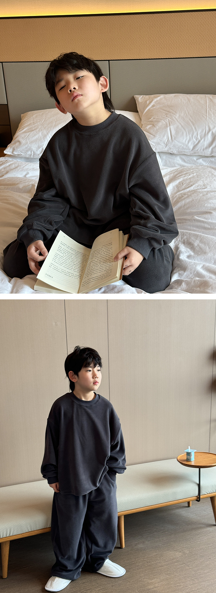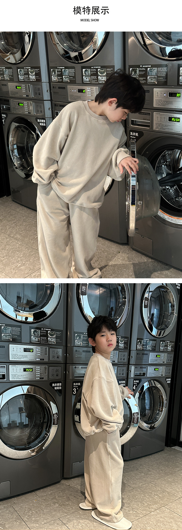 이홍 의류 소년 양면 양면 양털 홈 옷 2024 겨울 새 어린이 열 속옷 투피스 한국식 세트스토어 가기