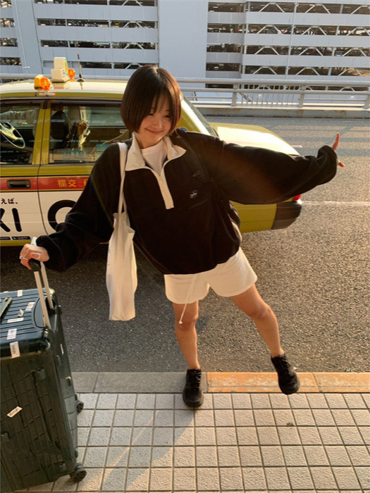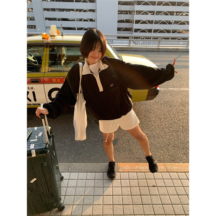 2024년 가을 신상품 동대문 t*he barnnet 반지퍼 멀티 컬러 폴라 플리스 스웨트셔츠