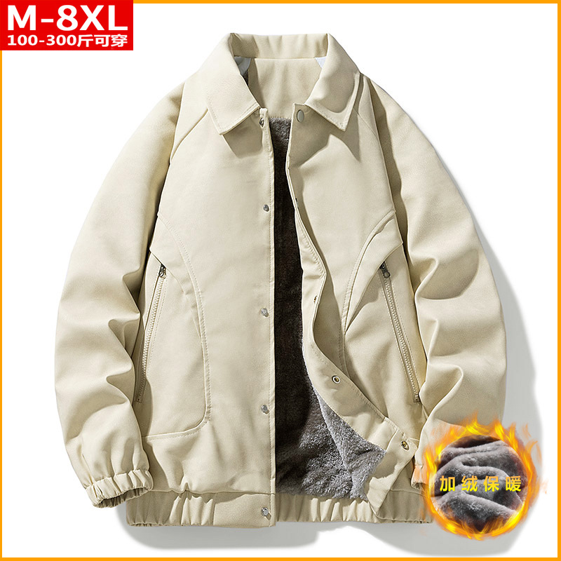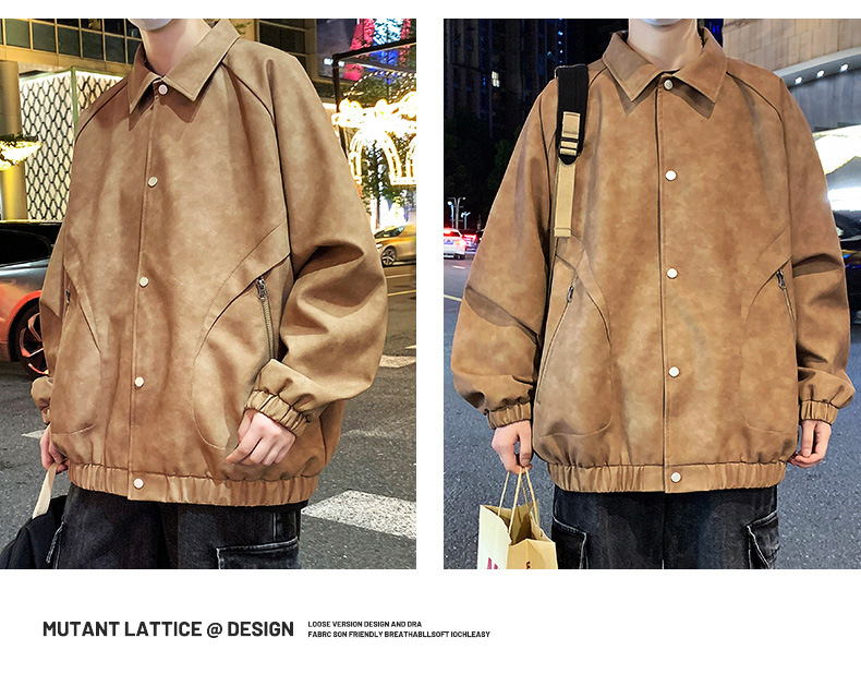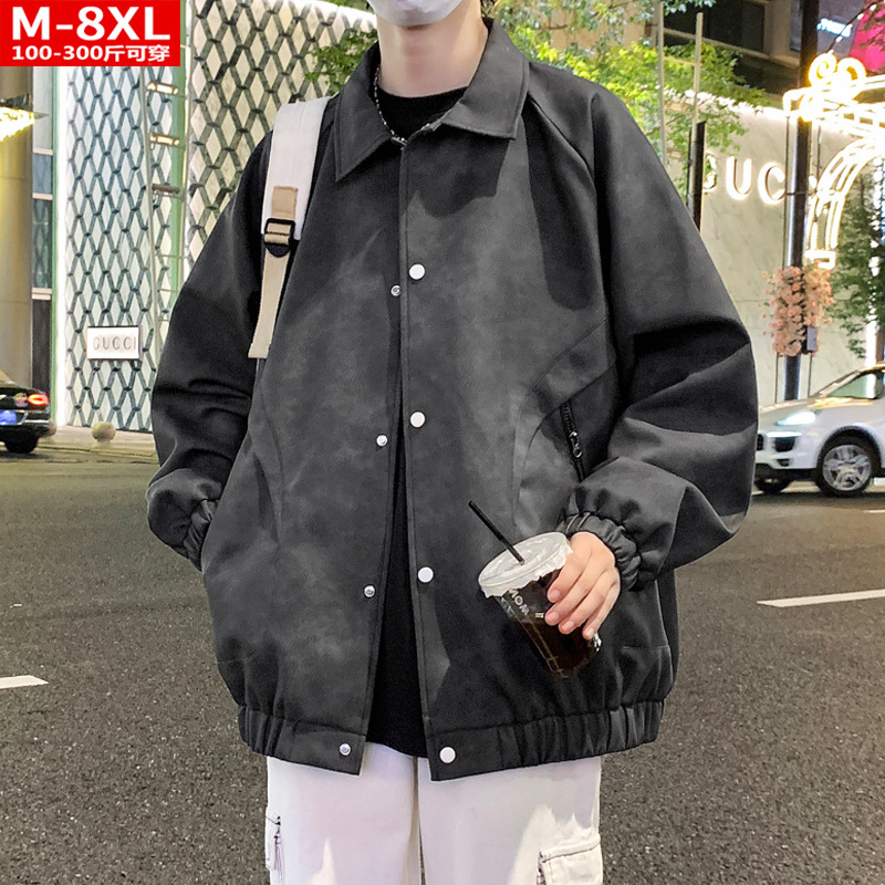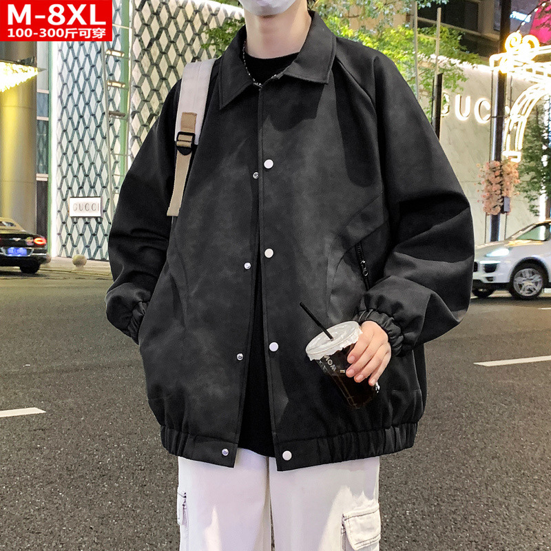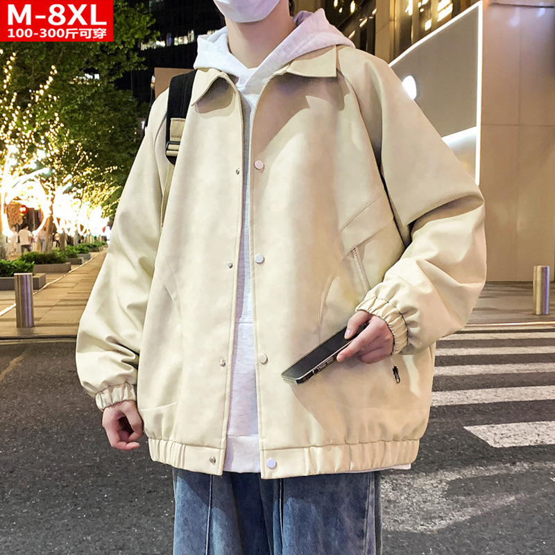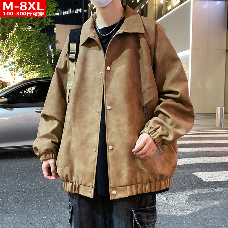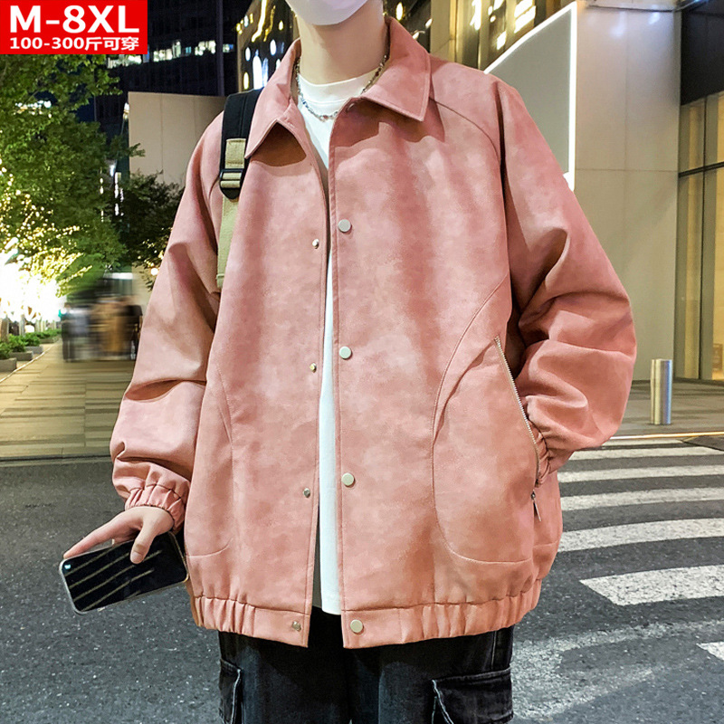봄과 가을 패션 홍콩 스타일 남성 스퀘어 칼라 오토바이 PU 가죽 자켓 지방 남성 플러스 사이즈 느슨한 캐주얼 자켓스토어 가기