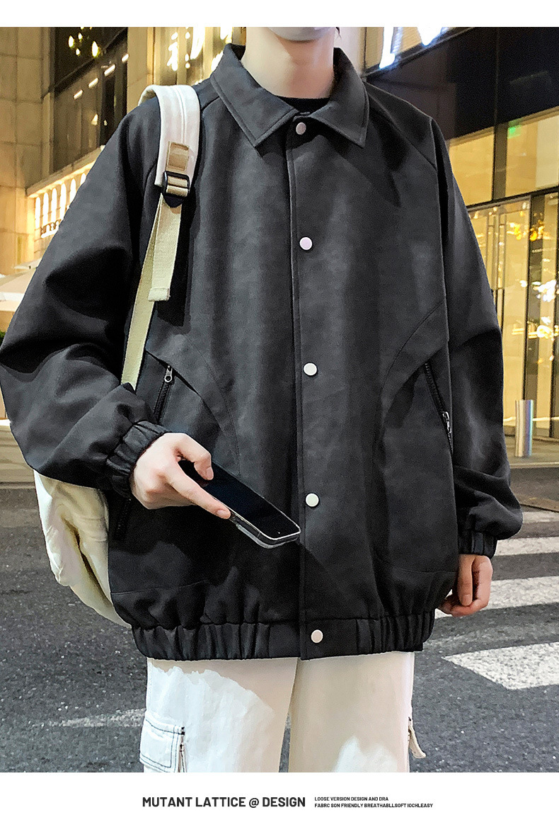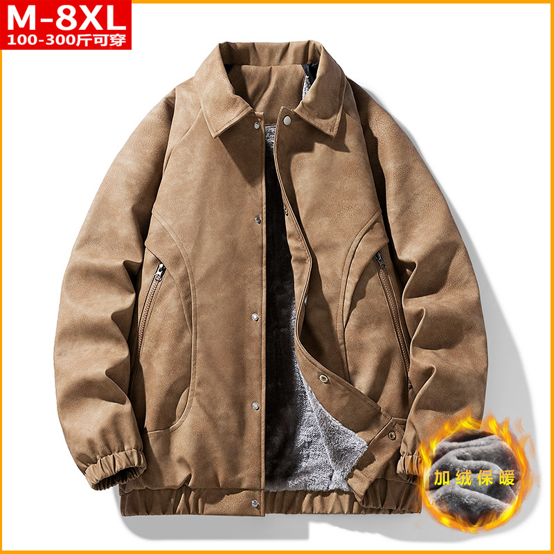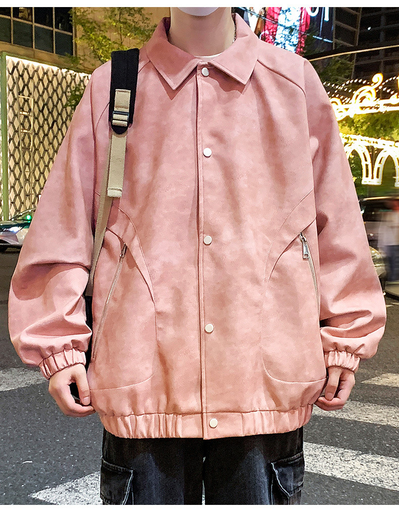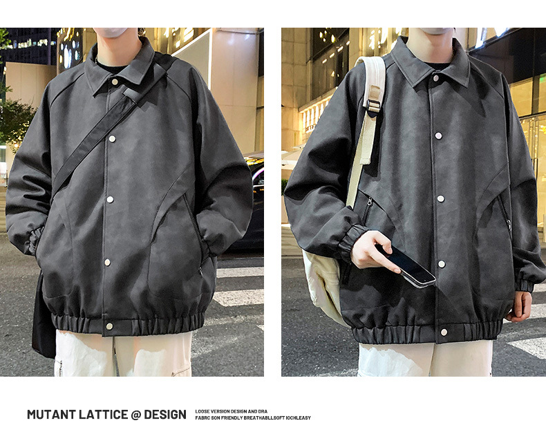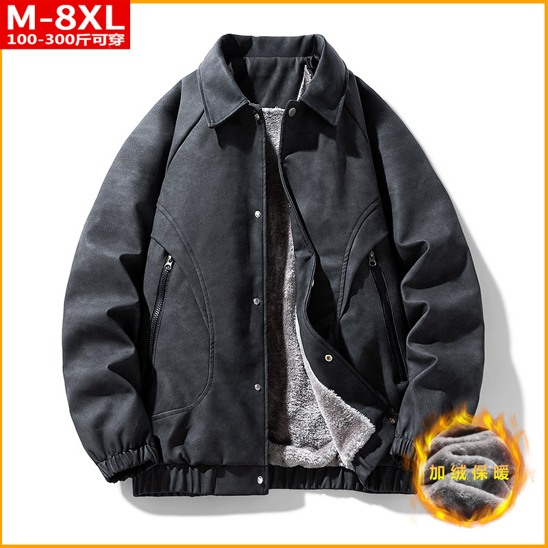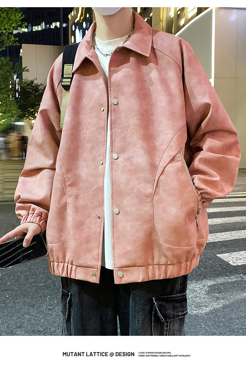 봄과 가을 패션 홍콩 스타일 남성 스퀘어 칼라 오토바이 PU 가죽 자켓 지방 남성 플러스 사이즈 느슨한 캐주얼 자켓스토어 가기