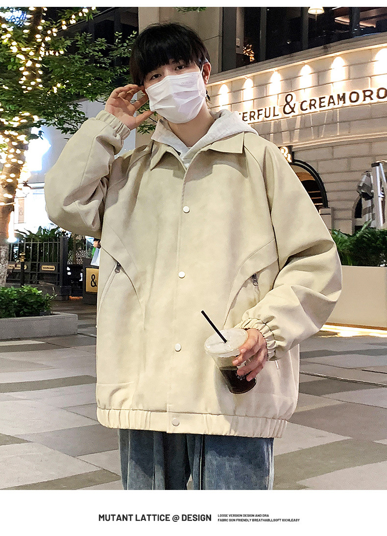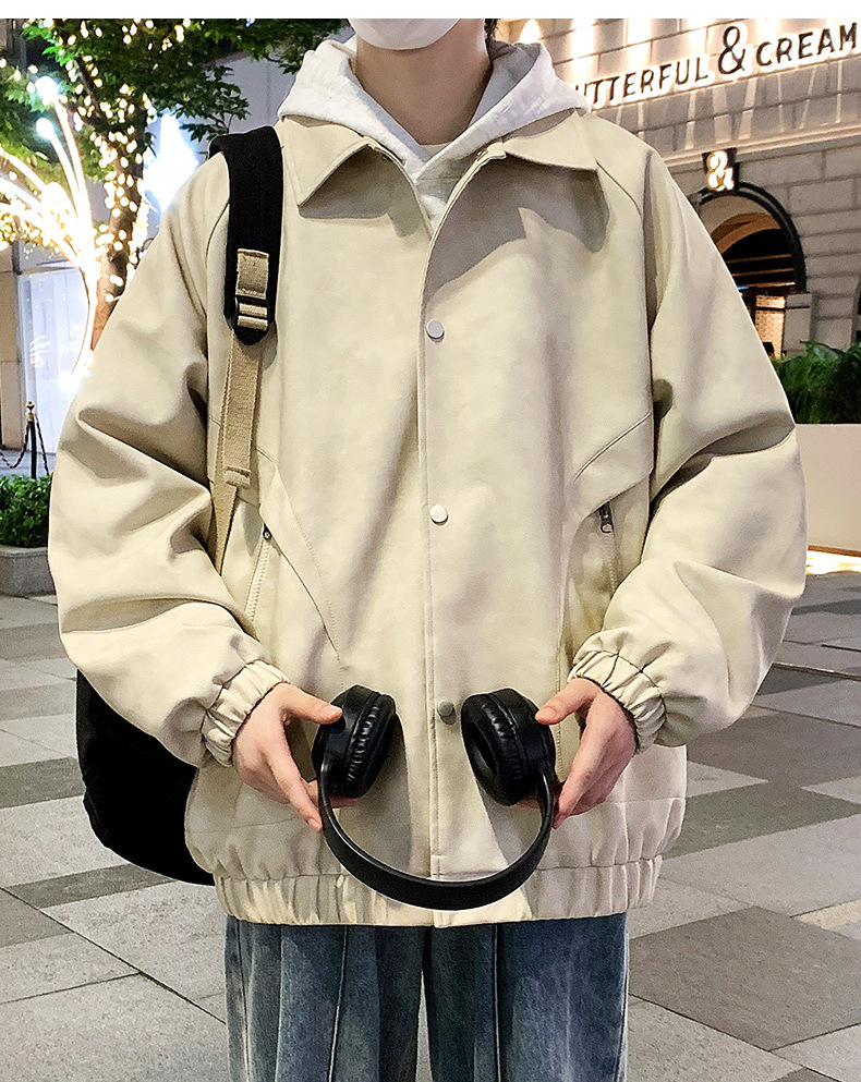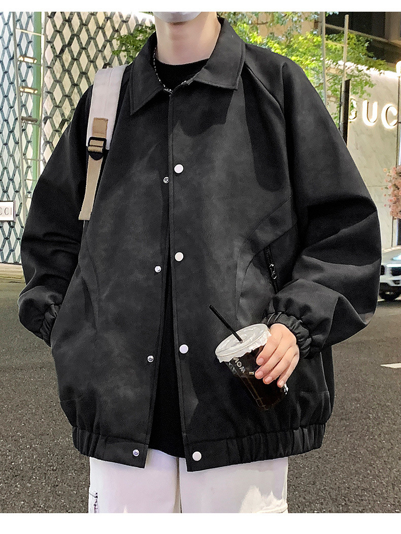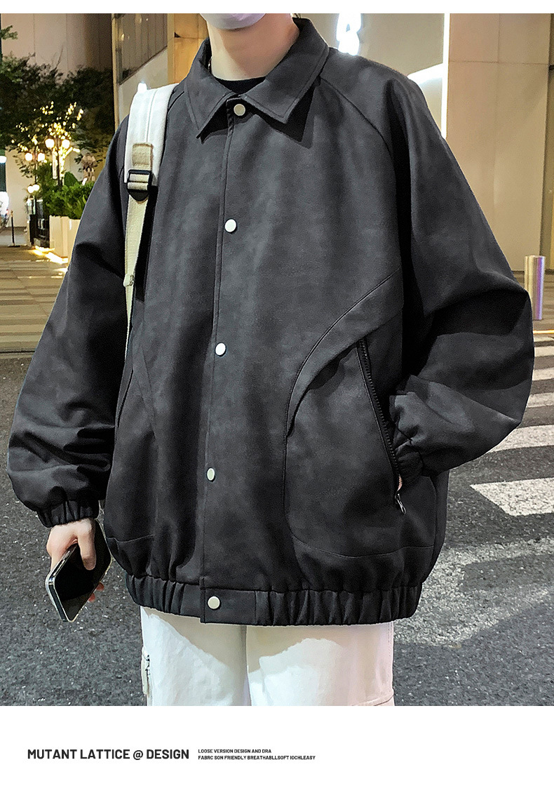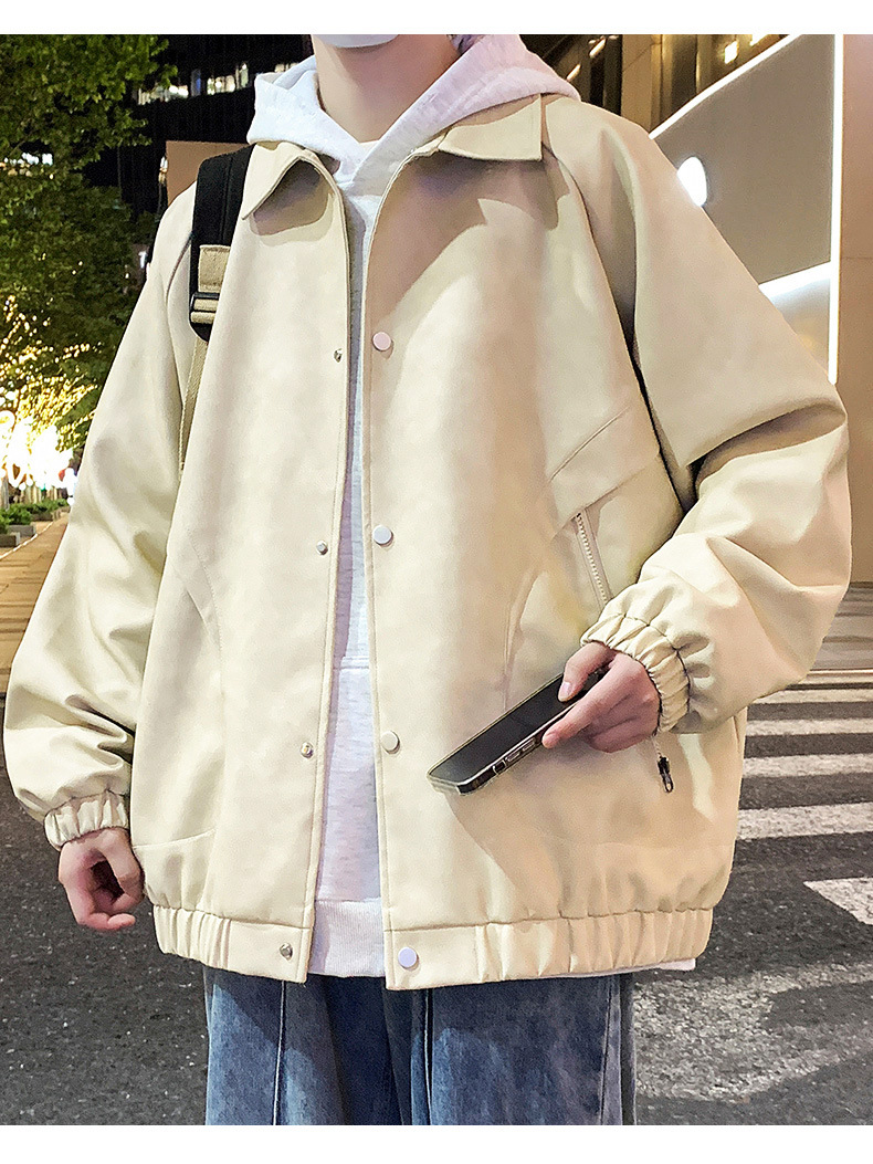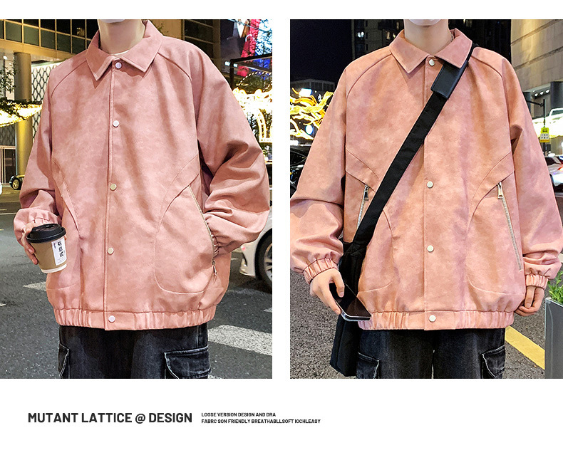 봄과 가을 패션 홍콩 스타일 남성 스퀘어 칼라 오토바이 PU 가죽 자켓 지방 남성 플러스 사이즈 느슨한 캐주얼 자켓스토어 가기