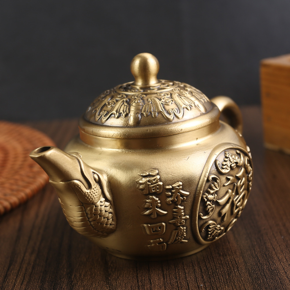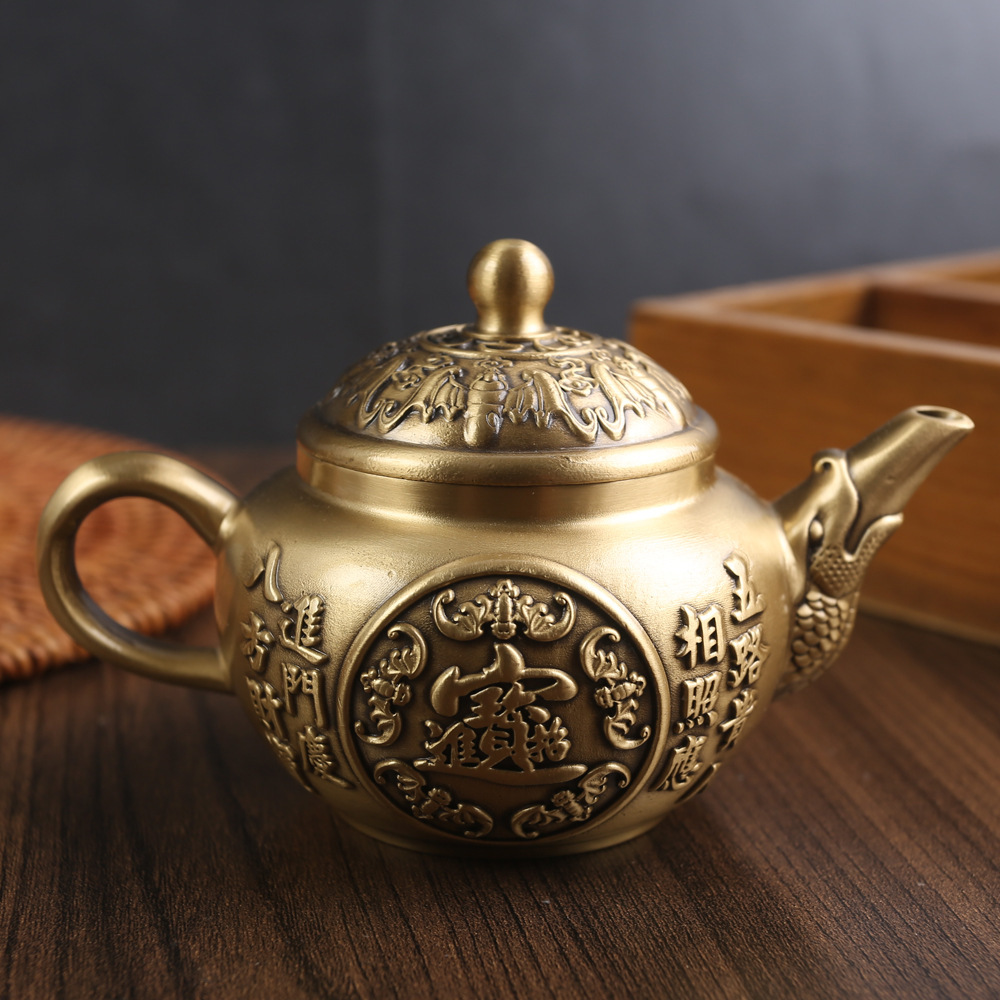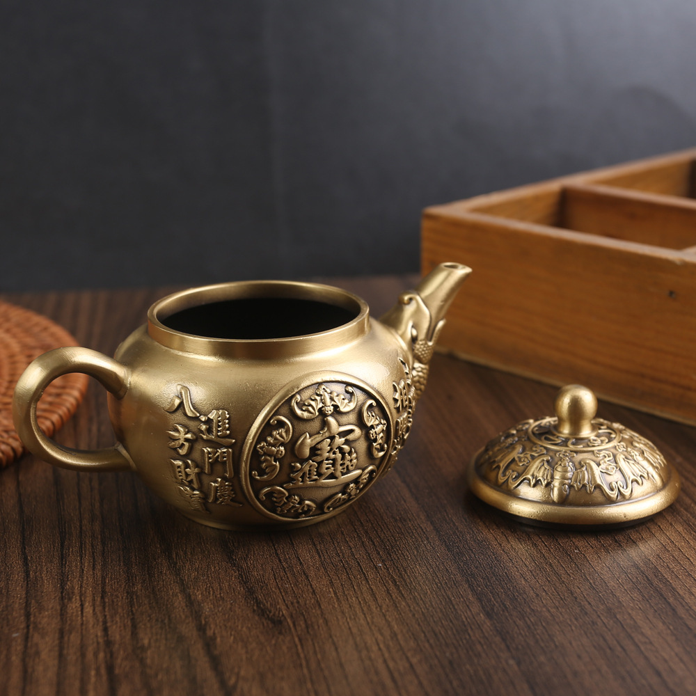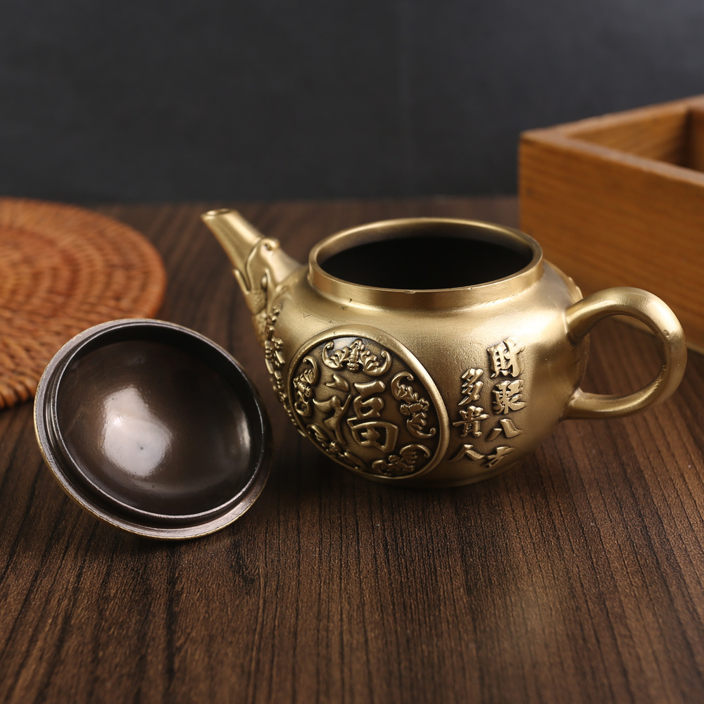 황동 빈티지 창조적 인 작은 주전자 장식품 사무실 홈 루시드 우푸 주전자 순수 구리 금속 공예