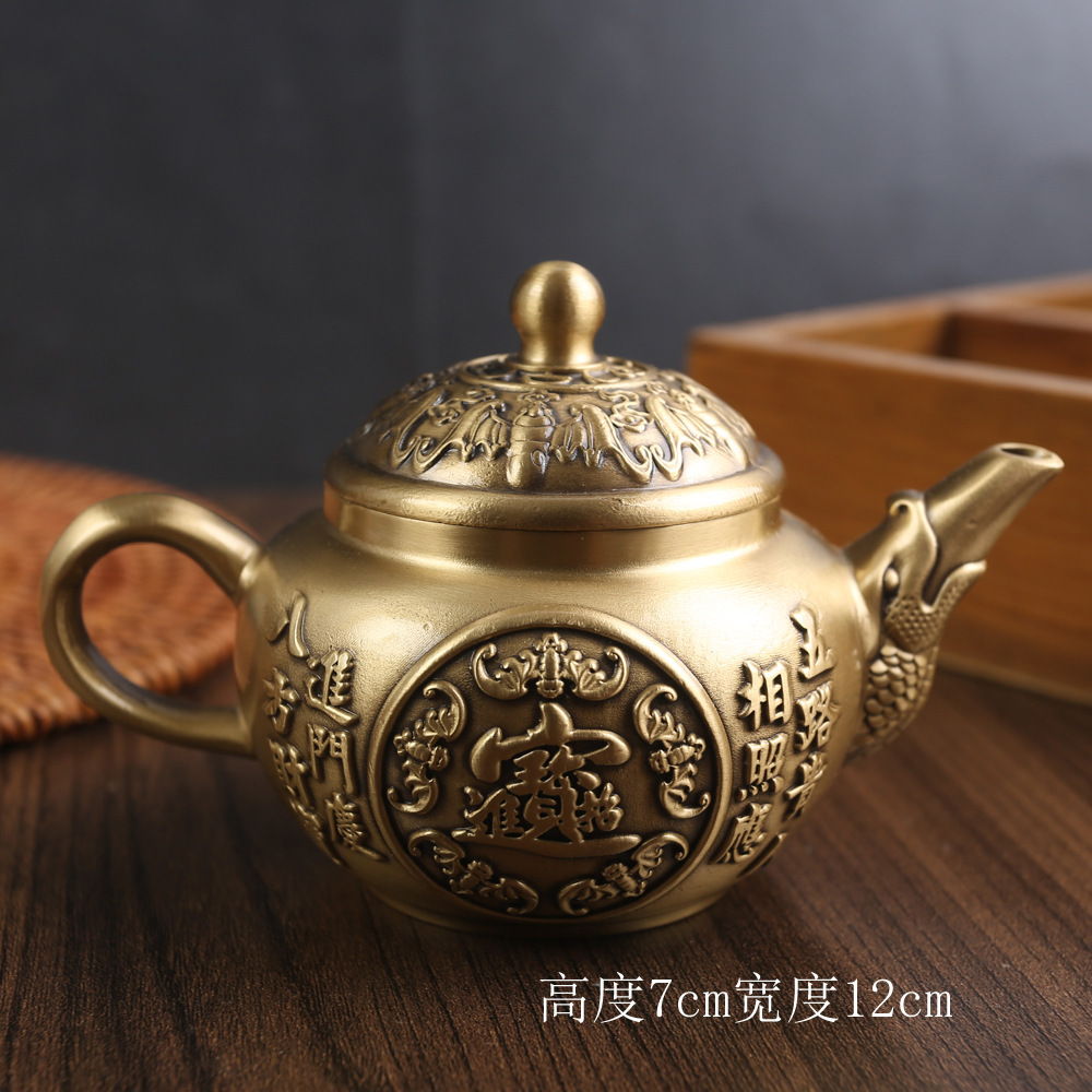 황동 빈티지 창조적 인 작은 주전자 장식품 사무실 홈 루시드 우푸 주전자 순수 구리 금속 공예스토어 가기