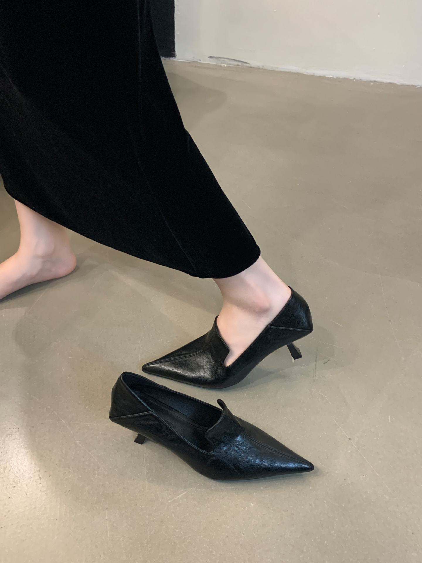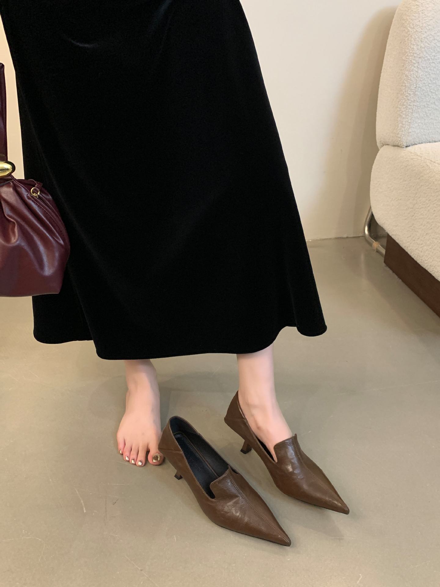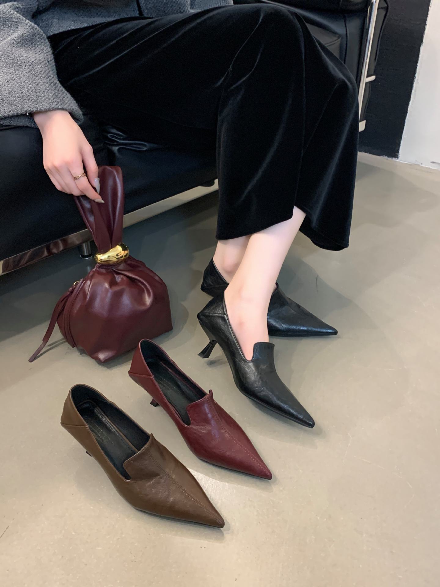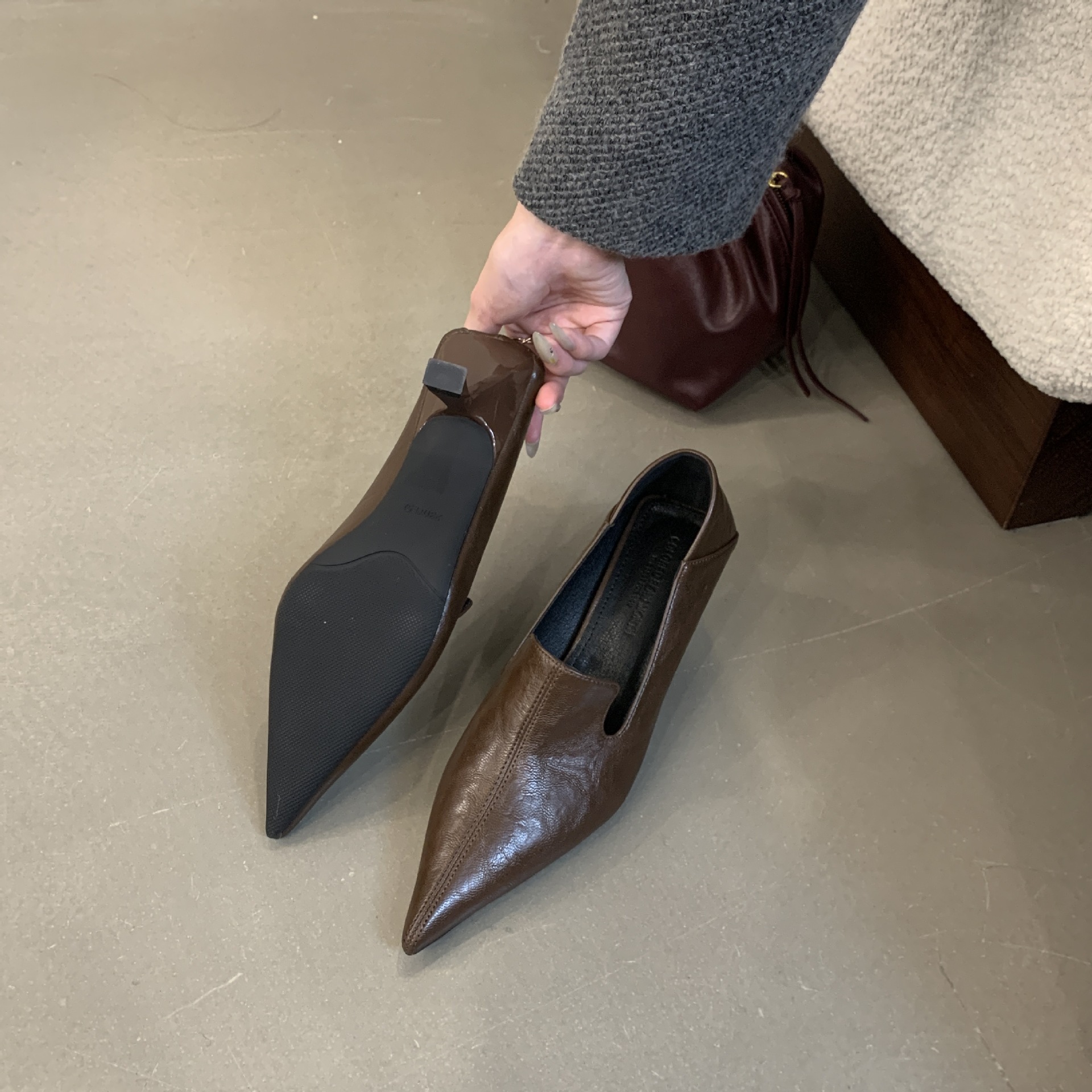 새로운 2024 프랑스 스타일 우아한 메리 제인 신발 여성 틈새 디자인 센스 뾰족한 가죽 신발 패션 하이힐 싱글 레이어 신발스토어 가기