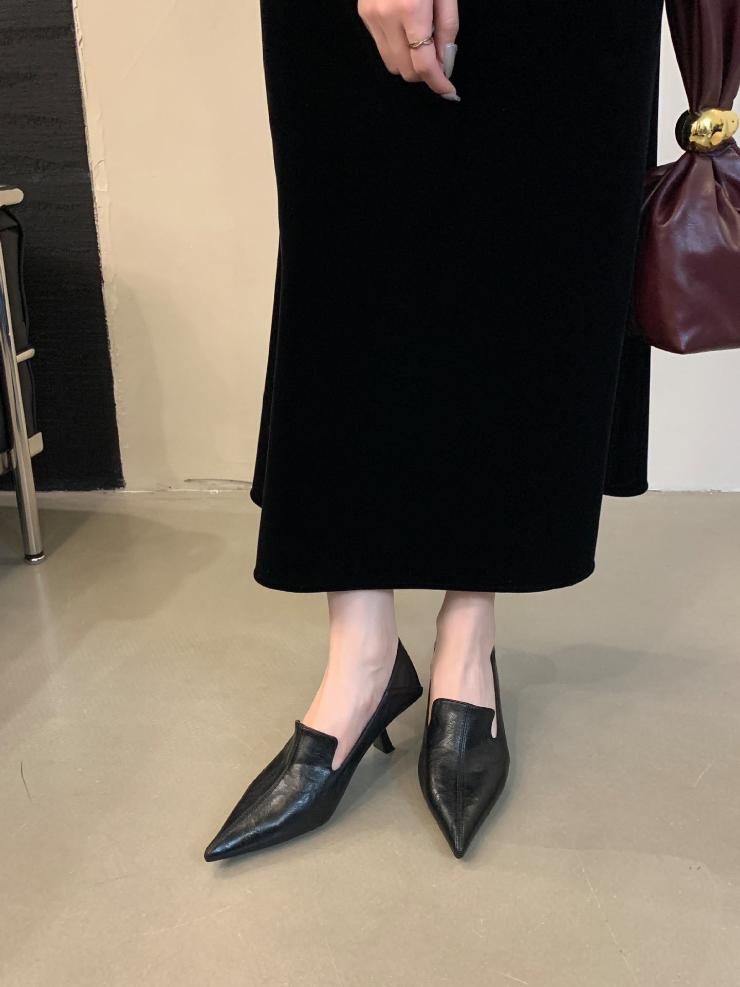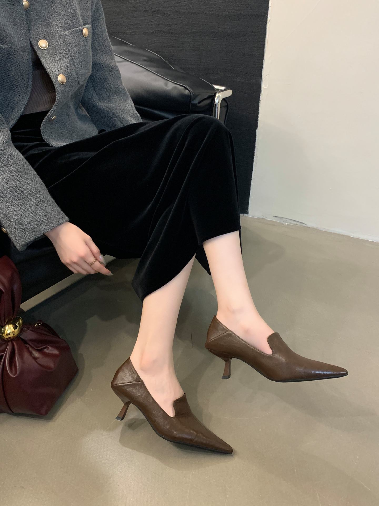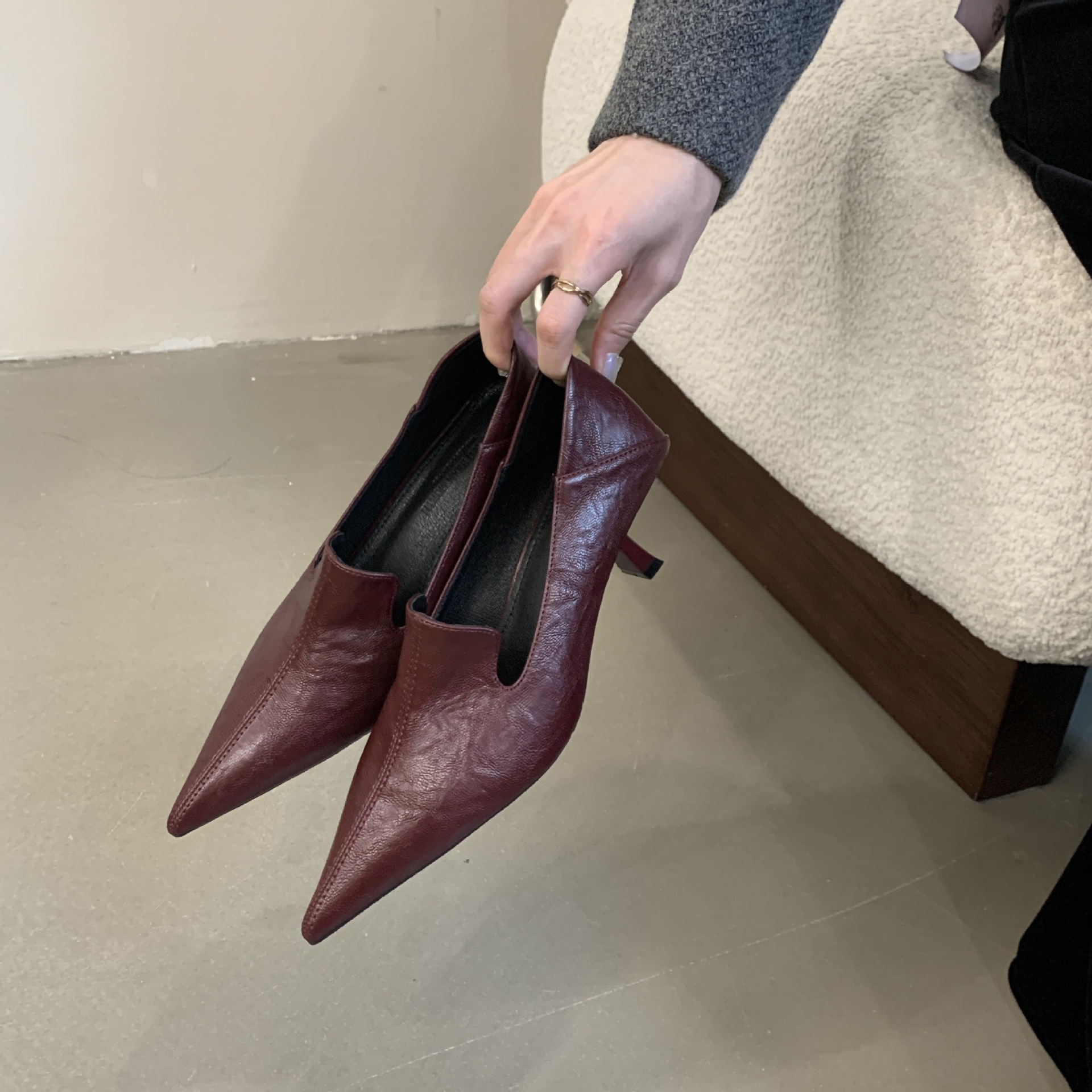 새로운 2024 프랑스 스타일 우아한 메리 제인 신발 여성 틈새 디자인 센스 뾰족한 가죽 신발 패션 하이힐 싱글 레이어 신발스토어 가기
