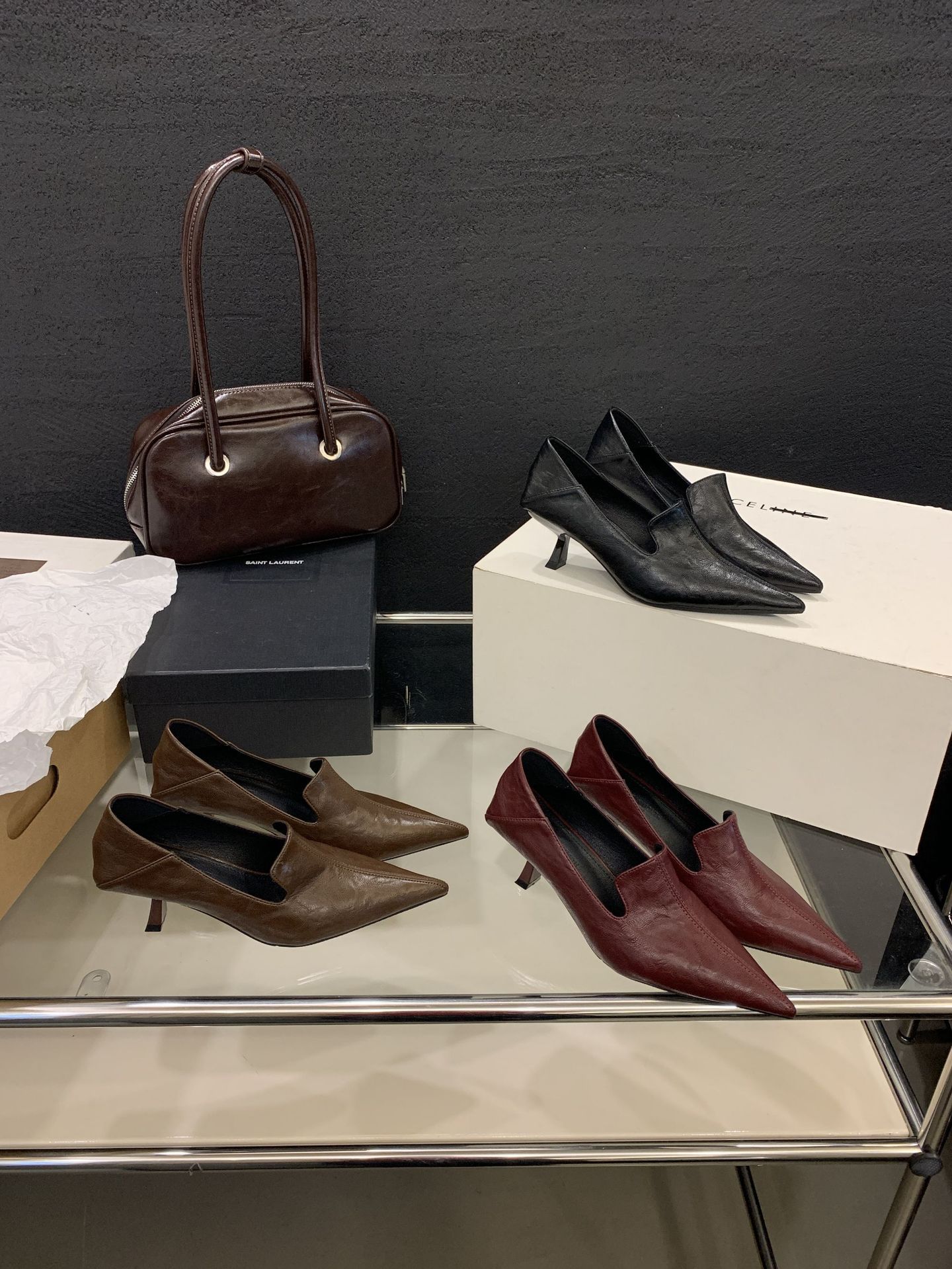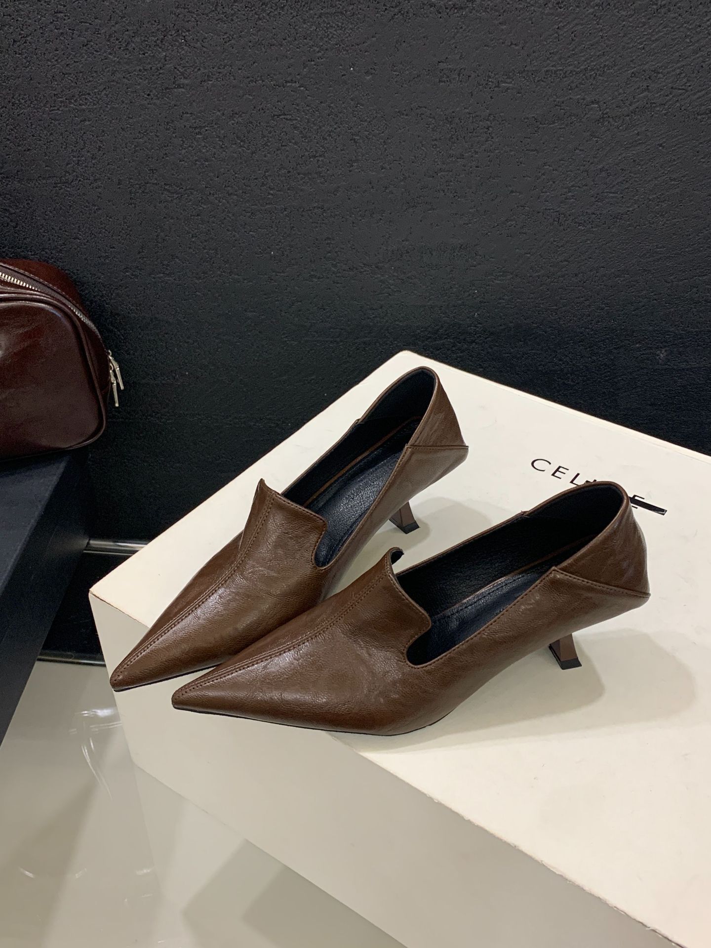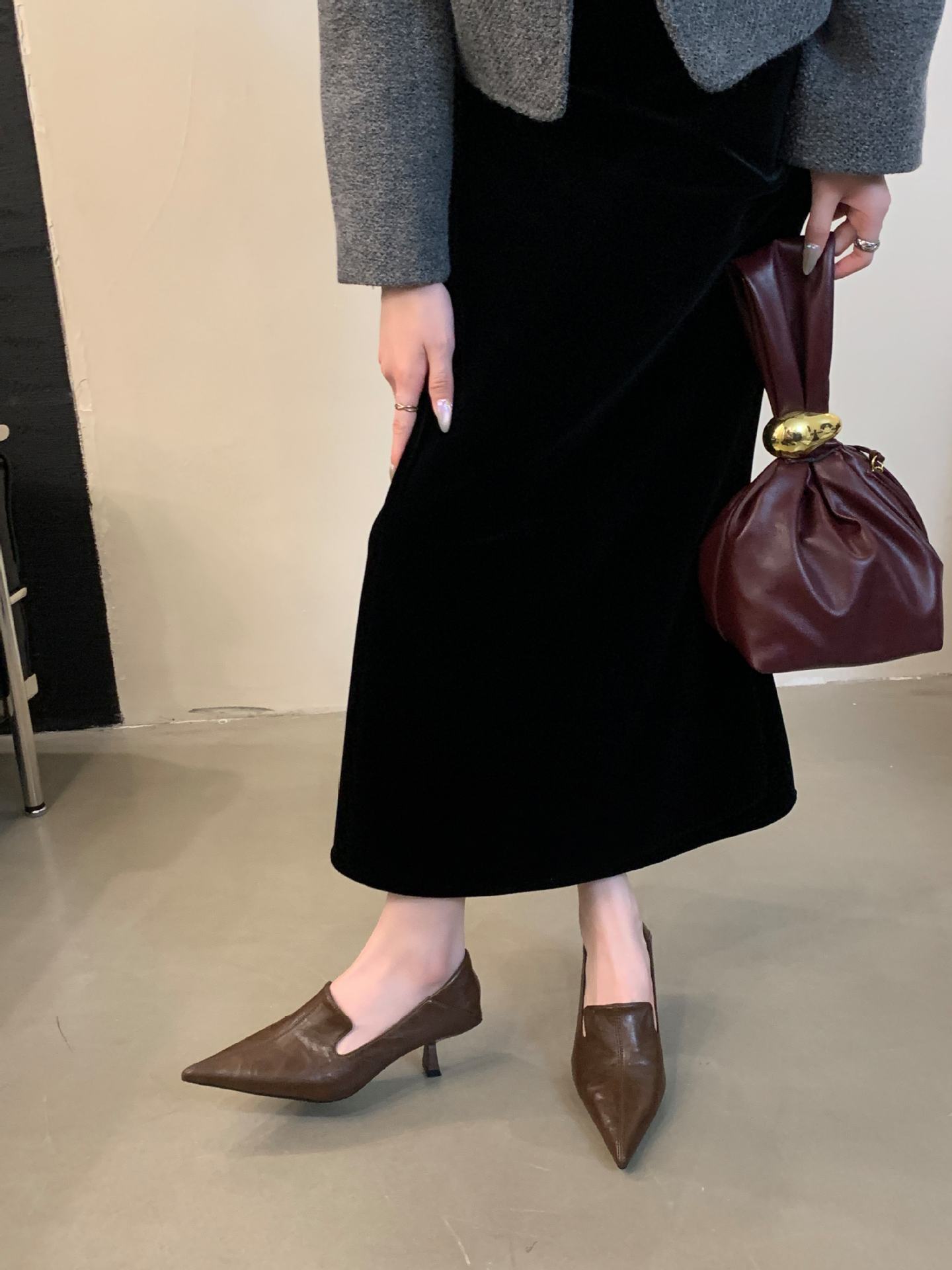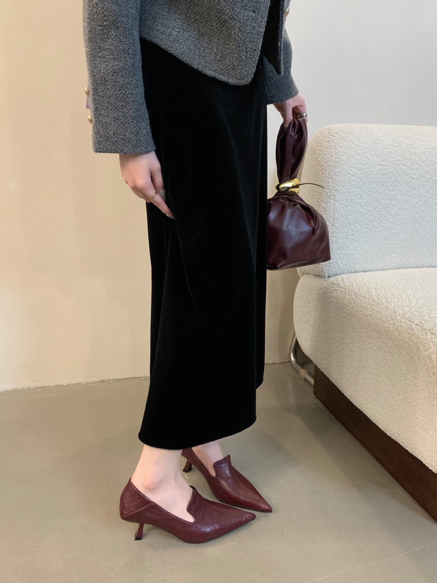 새로운 2024 프랑스 스타일 우아한 메리 제인 신발 여성 틈새 디자인 센스 뾰족한 가죽 신발 패션 하이힐 싱글 레이어 신발스토어 가기