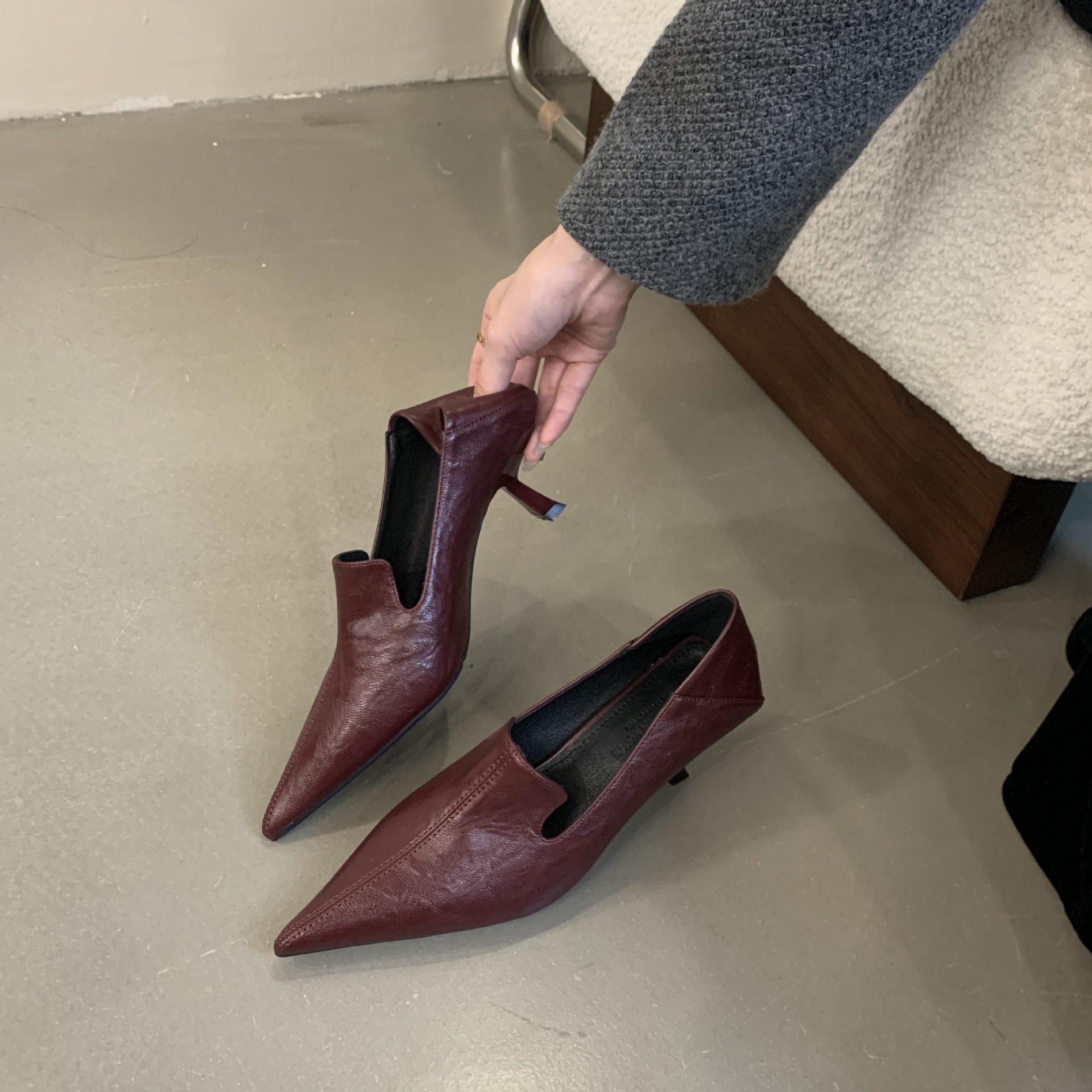 새로운 2024 프랑스 스타일 우아한 메리 제인 신발 여성 틈새 디자인 센스 뾰족한 가죽 신발 패션 하이힐 싱글 레이어 신발