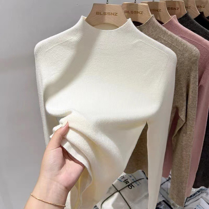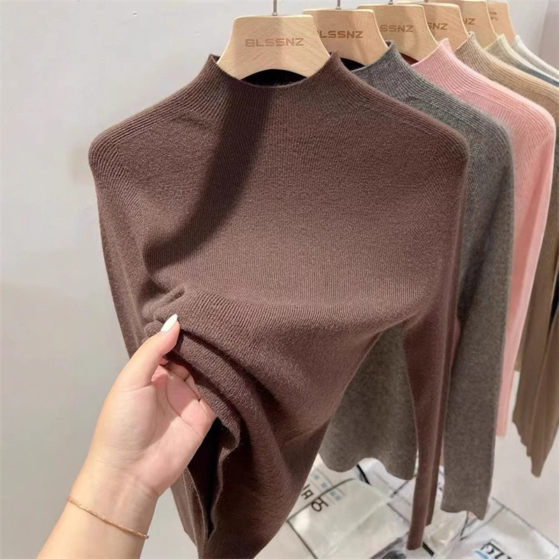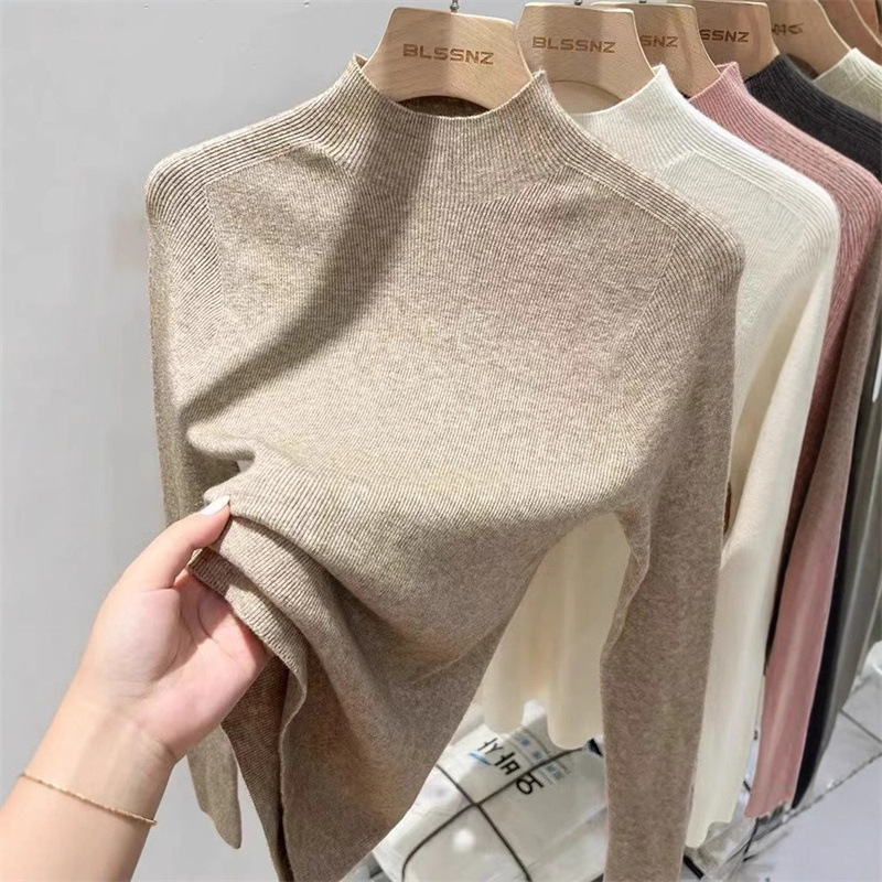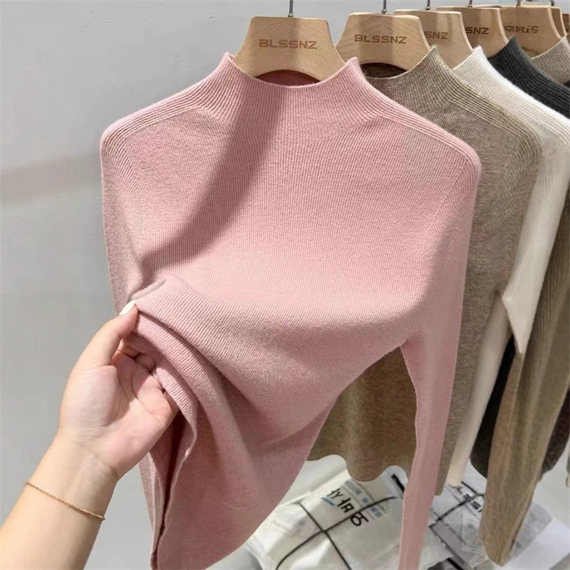 가을 겨울 하프 터틀넥 니트 바닥 셔츠 탑 2025 새로운 스타일 다목적 두꺼운 따뜻한 내부 스웨터 여성 의류스토어 가기