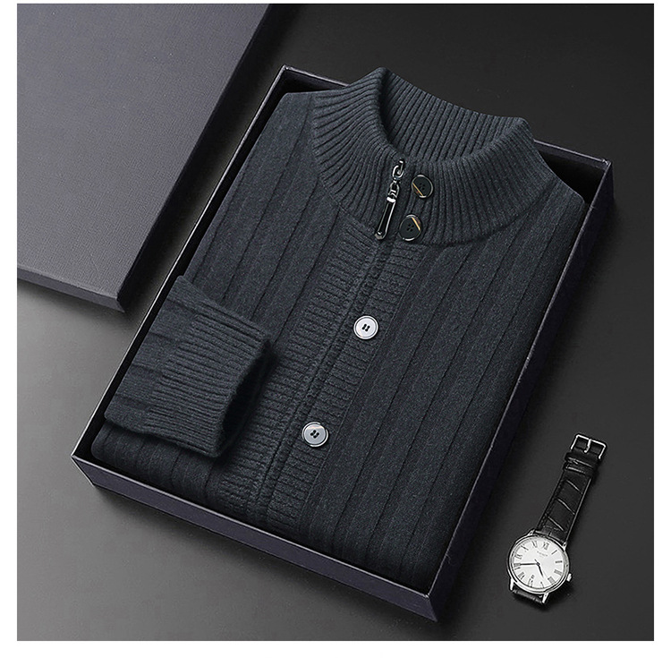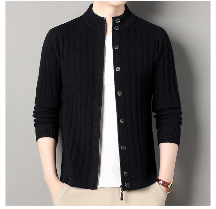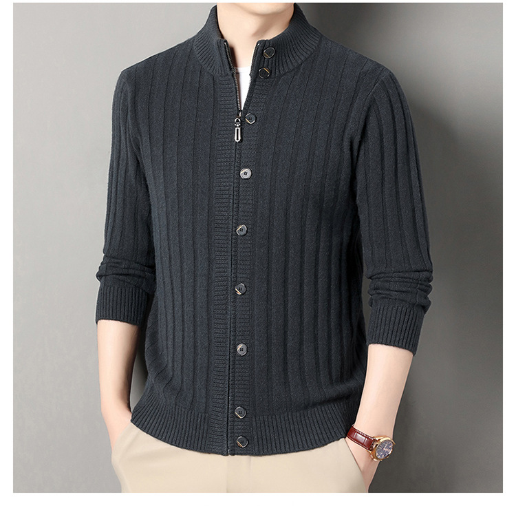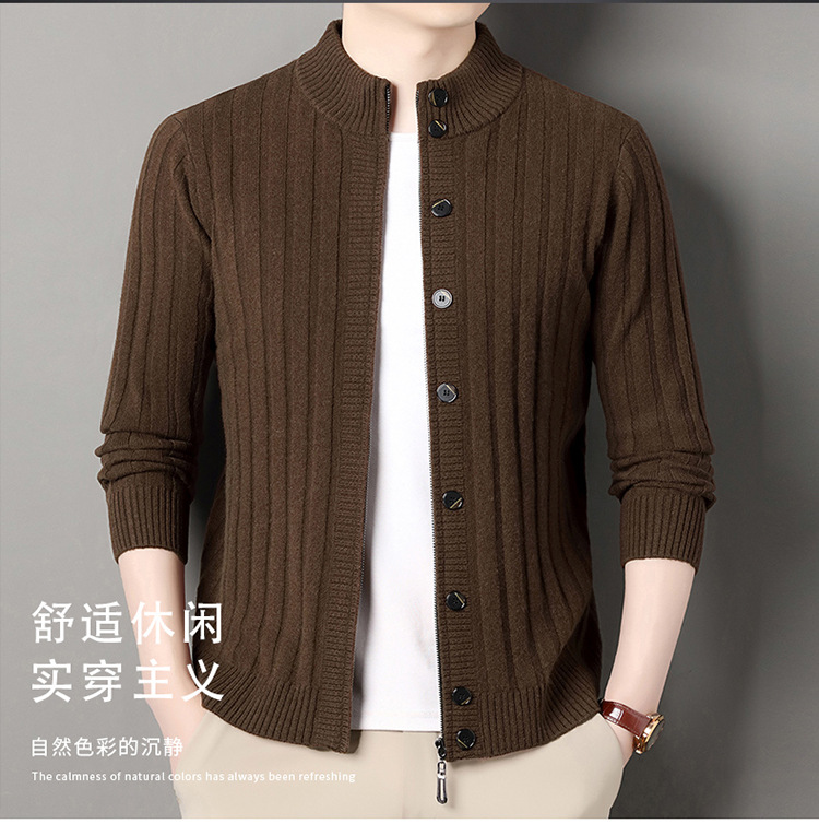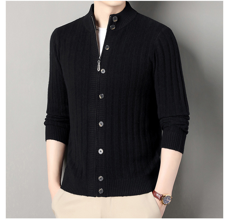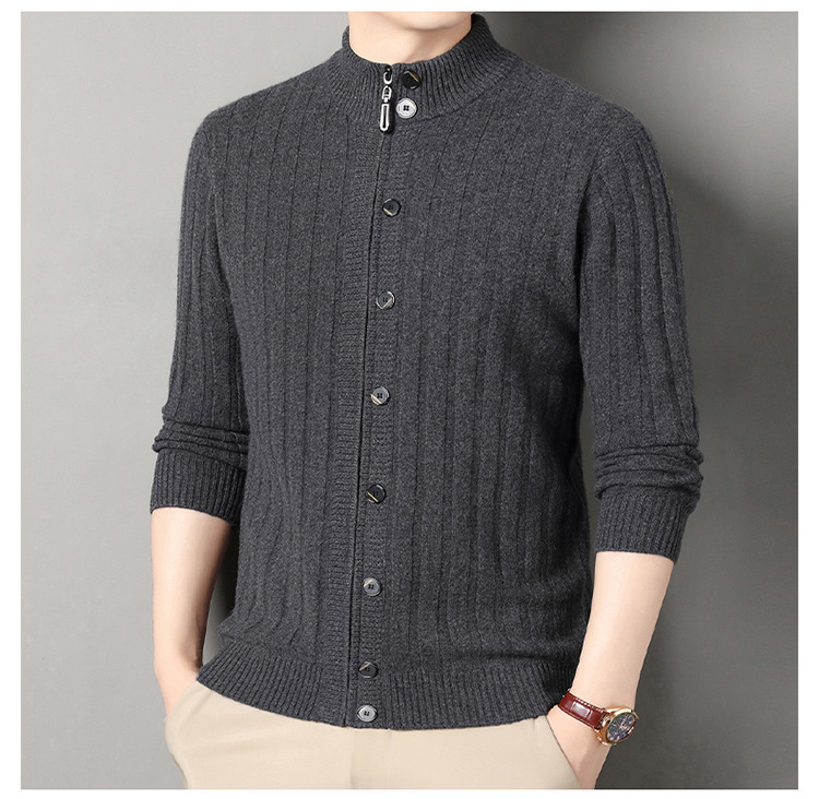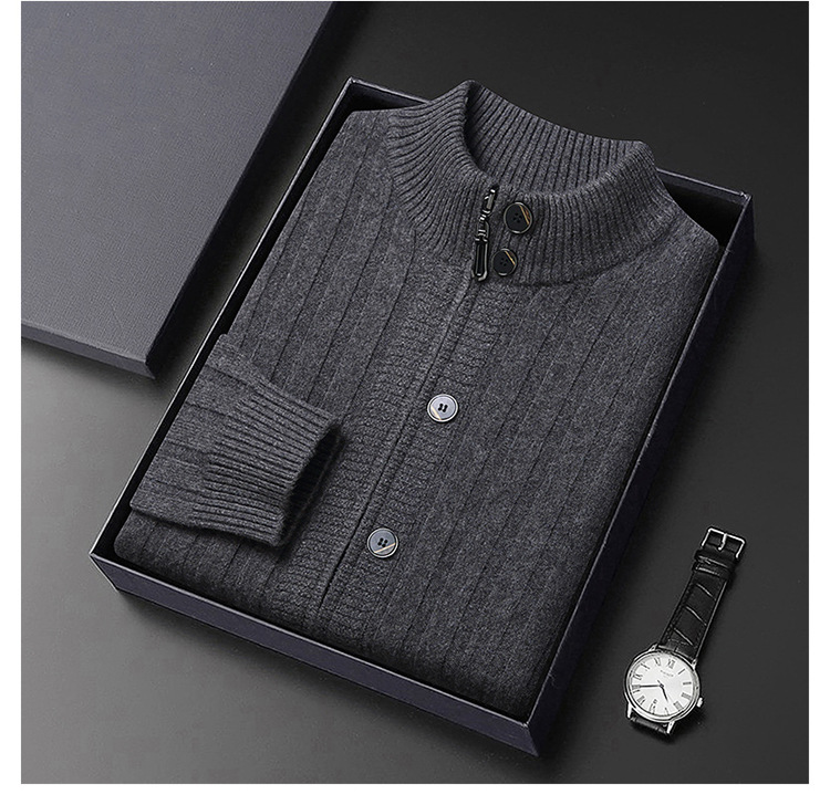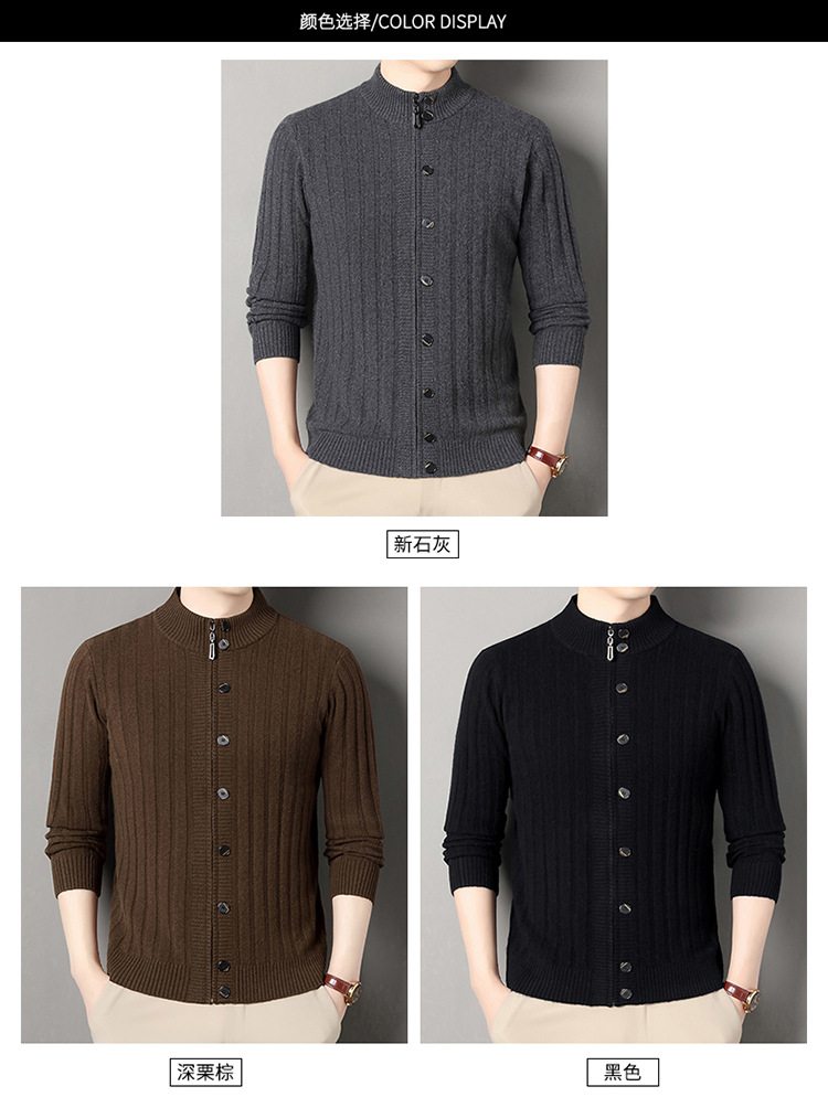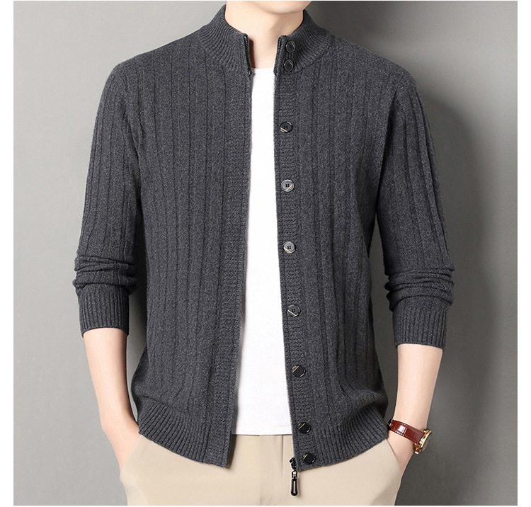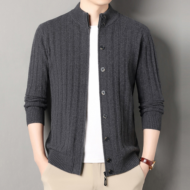 고급 100% 양모 카디건 남성 2024 가을 새로운 남성 캐주얼 순수 울 코트 남성용 스웨터 코트스토어 가기
