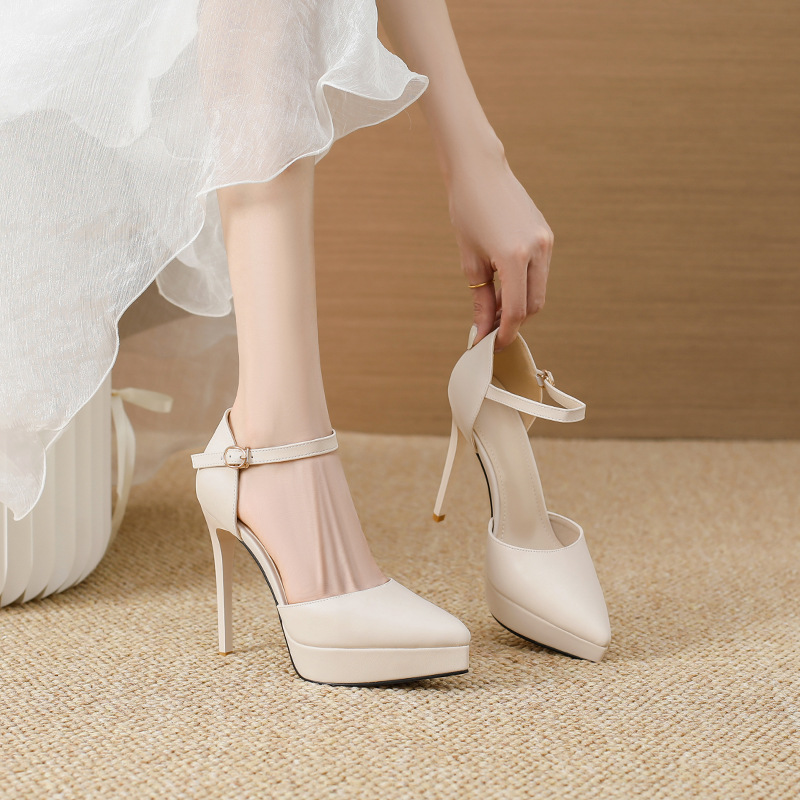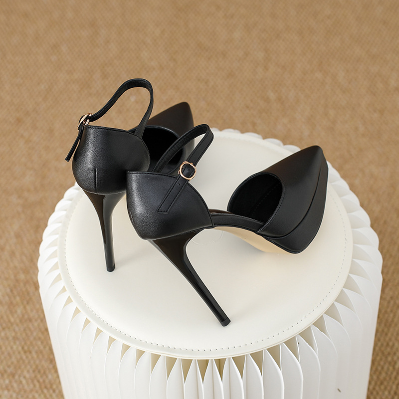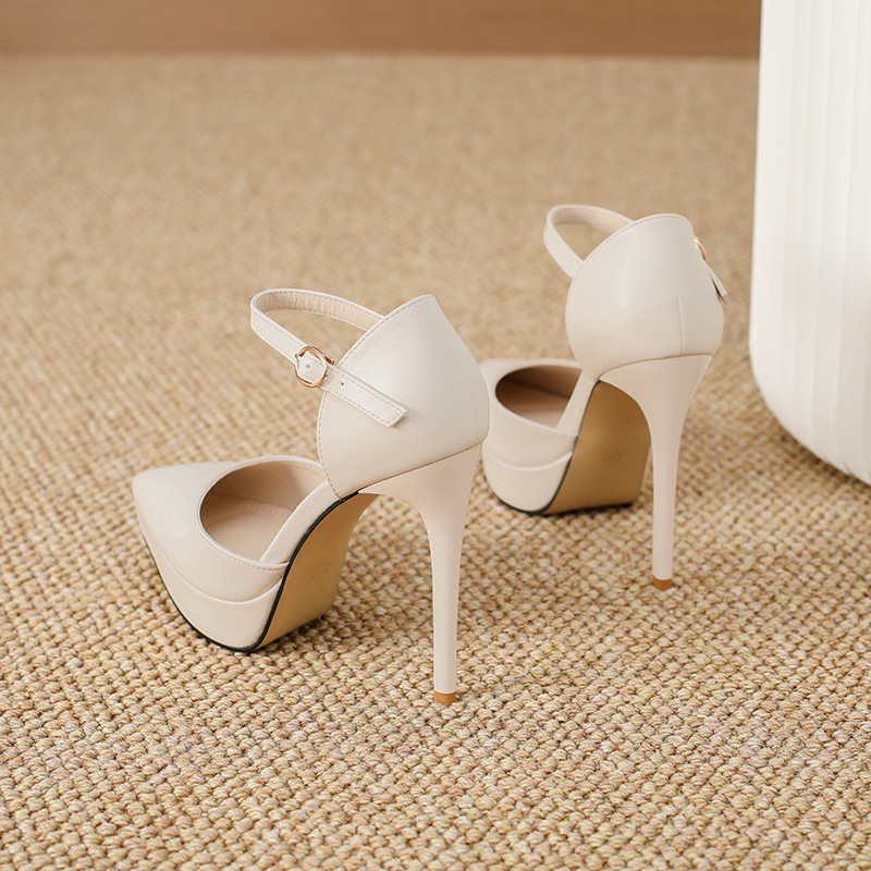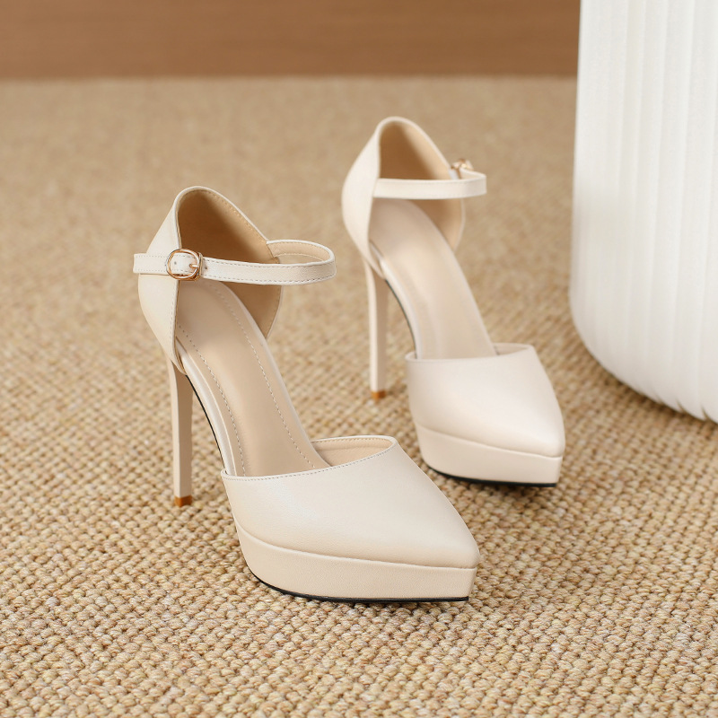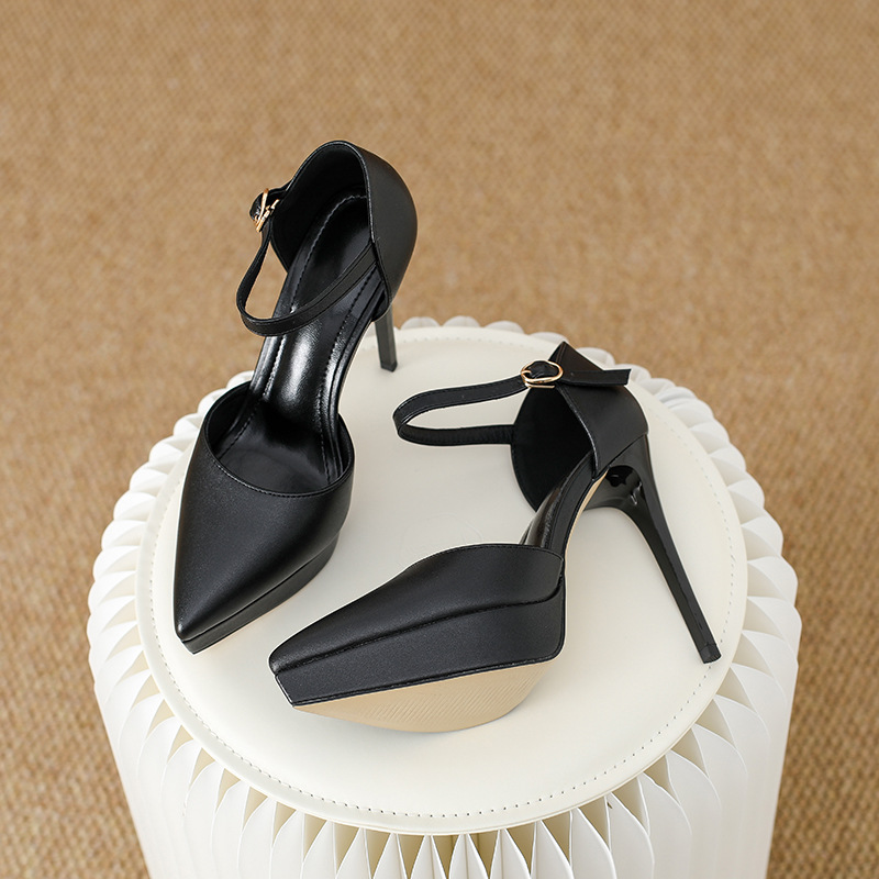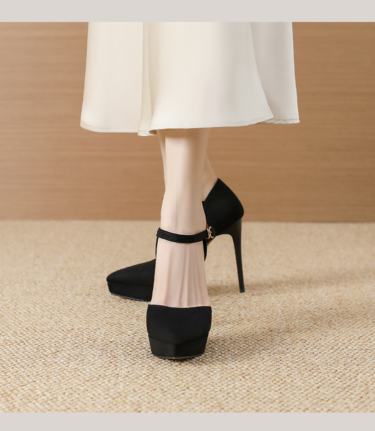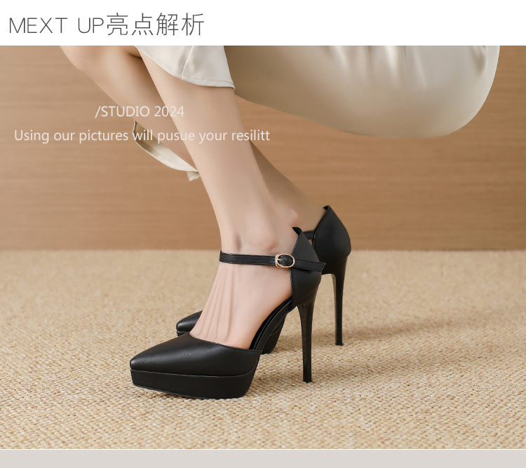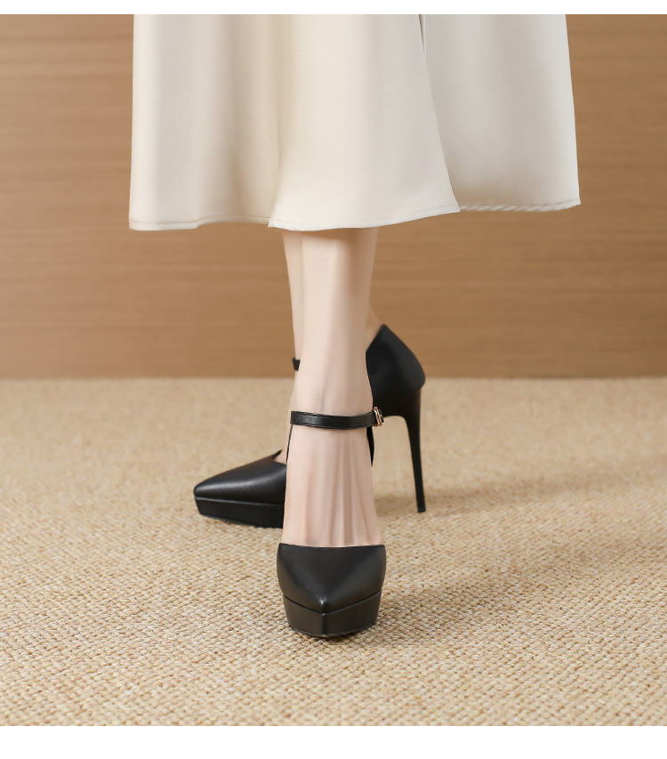 721-3 매트 가죽 하이힐 12cm 얇은 힐 방수 플랫폼 뾰족한 신발 여성의 세련된 검은 작업 신발