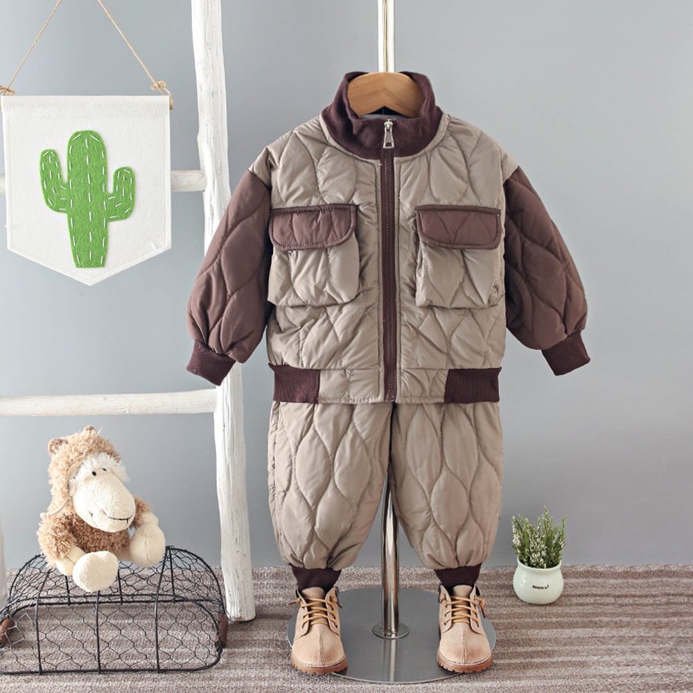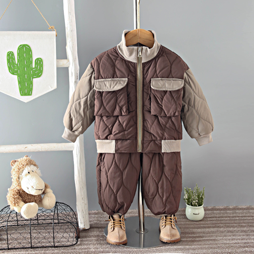 겨울 한국 스타일 어린이 의류 어린이 세트 큰 주머니 소년의 따뜻한 긴 소매 2 피스 코튼 옷 면 바지 세트