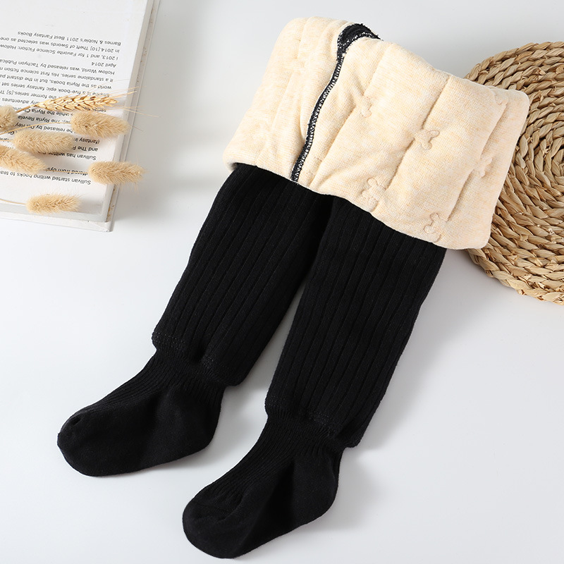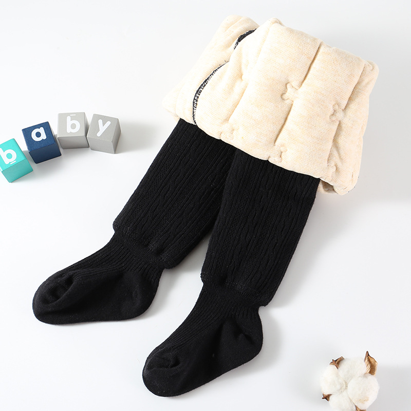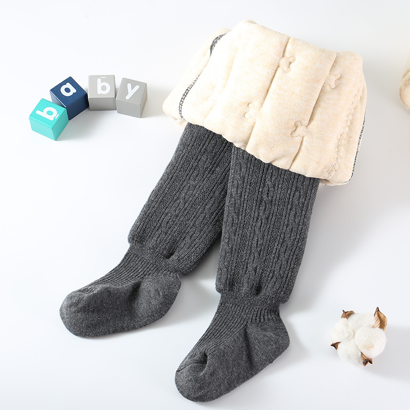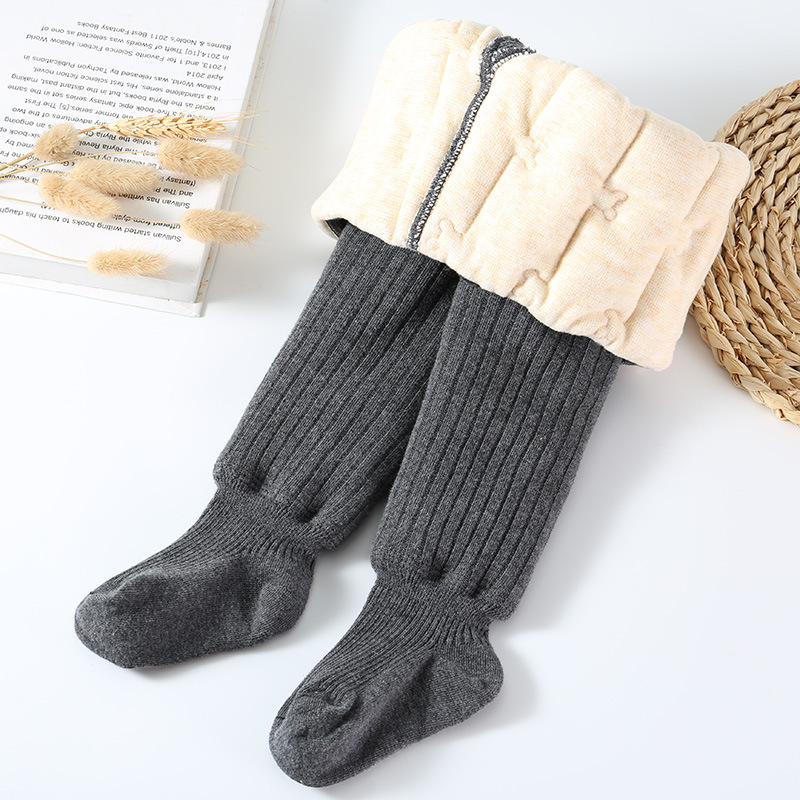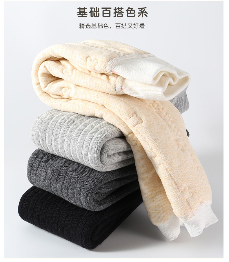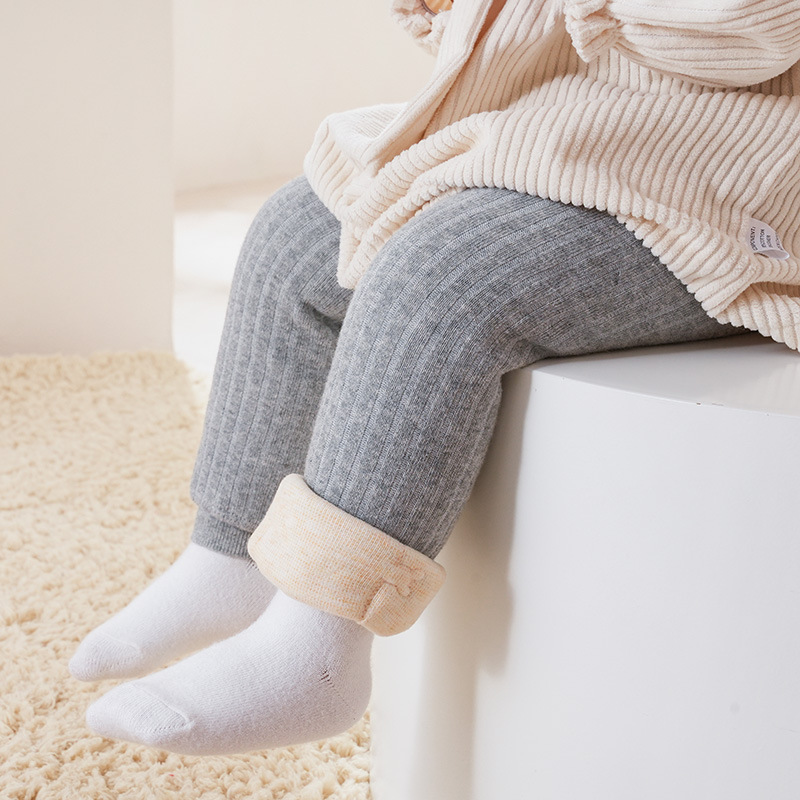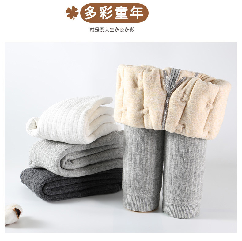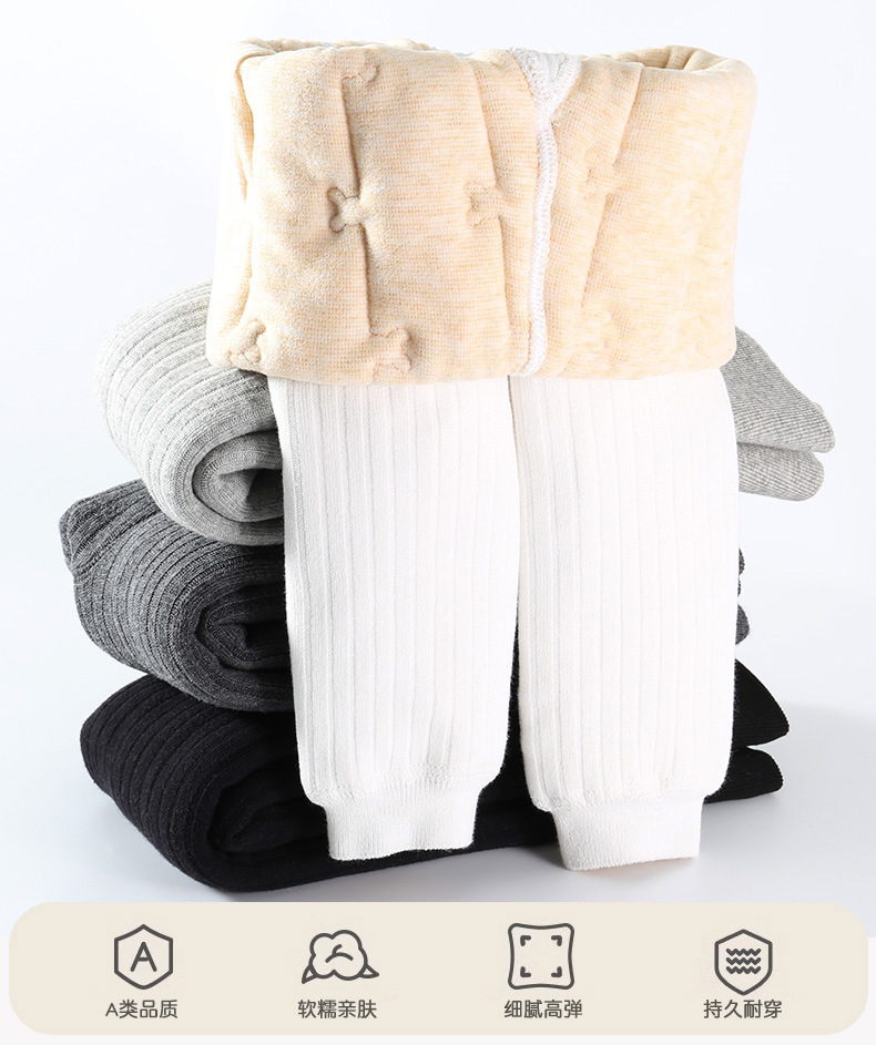 2024 겨울 아기 레깅스 기모 두꺼운 외부 착용 양 양모 바지 어린이 원피스 수직 스트립 외부 착용 단색