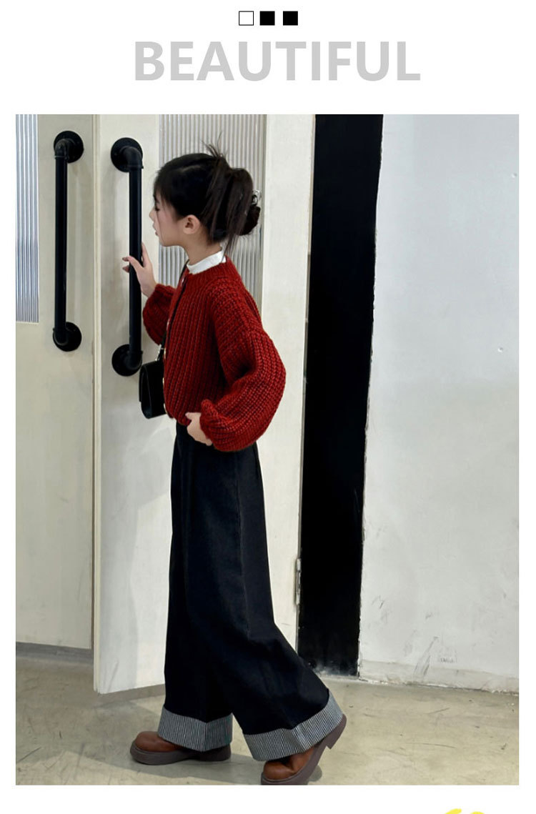 소녀의 가을과 겨울 기모 청바지 2024 새로운 패션 올 매치 캐주얼 와이드 레그 바지 큰 어린이 두꺼운 스트레이트 바지
