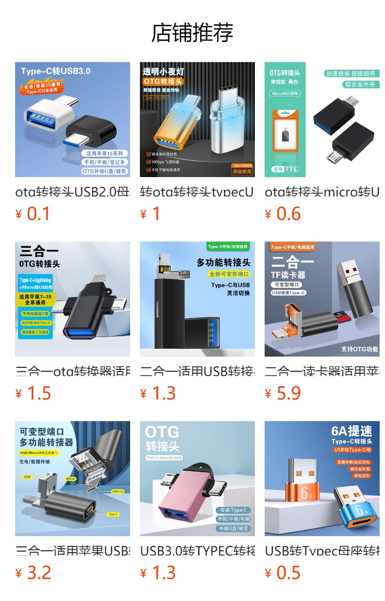 OTG 어댑터 typec-USB 어댑터 Apple 16 Huawei Xiaomi 어댑터에 적합한 휴대 전화 어댑터스토어 가기