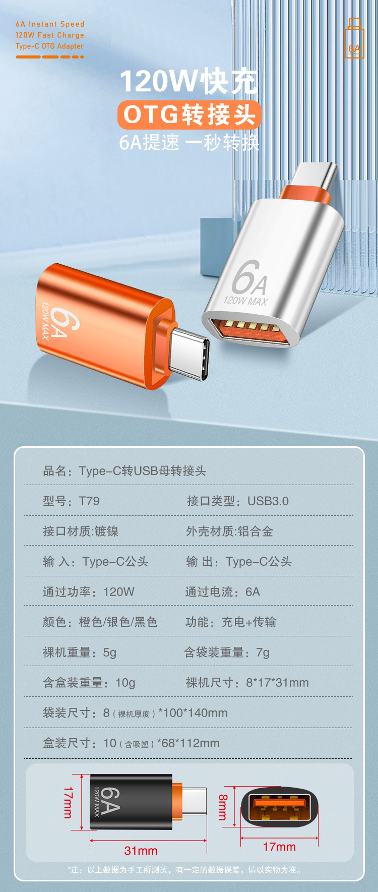 • T79 검정색 [Type-c - 주황색 포트 USB3.0] 중립 판지 상자