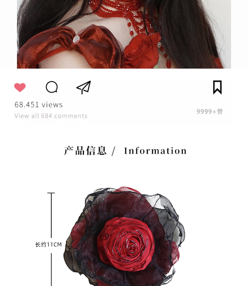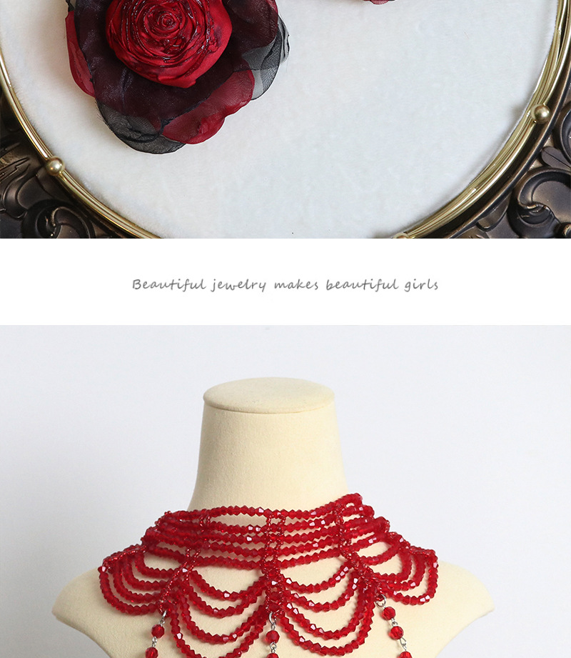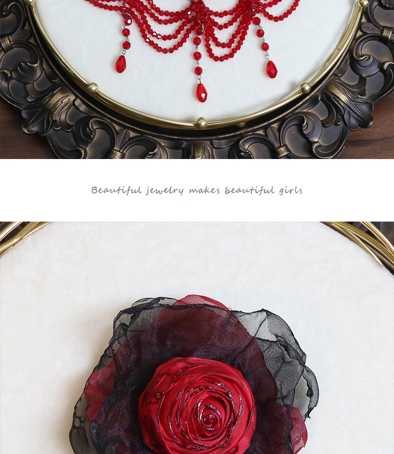 2024 수제 구슬 목걸이 다크 레드 꽃 머리핀 할로윈 빈티지 펑크 스타일 액세서리 세트스토어 가기