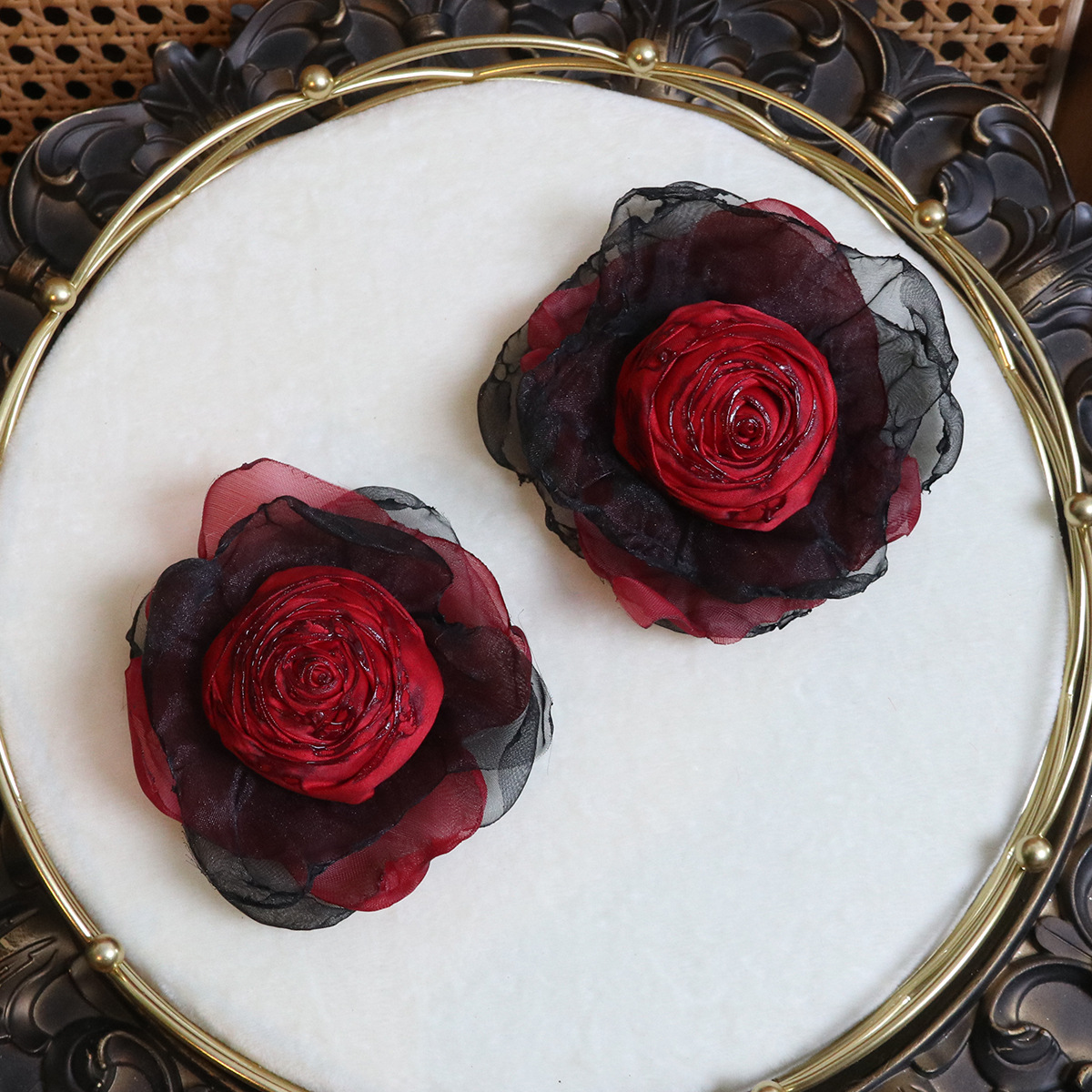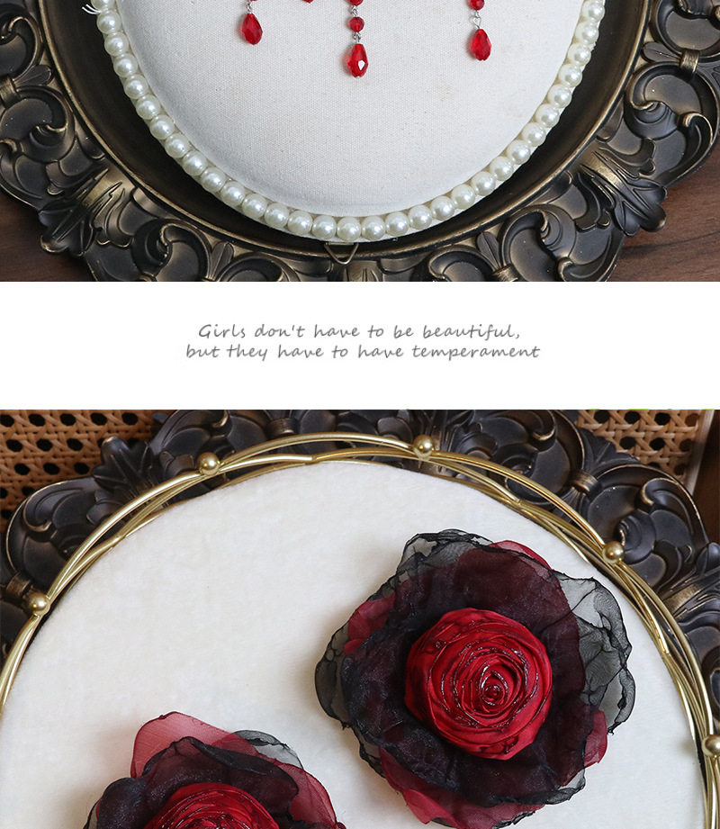 2024 수제 구슬 목걸이 다크 레드 꽃 머리핀 할로윈 빈티지 펑크 스타일 액세서리 세트