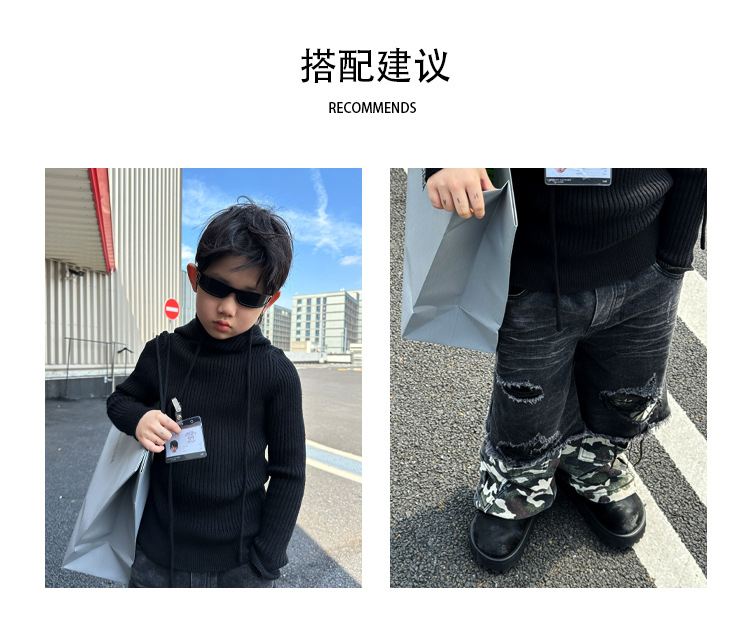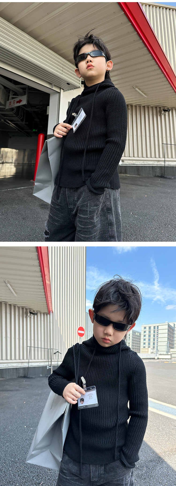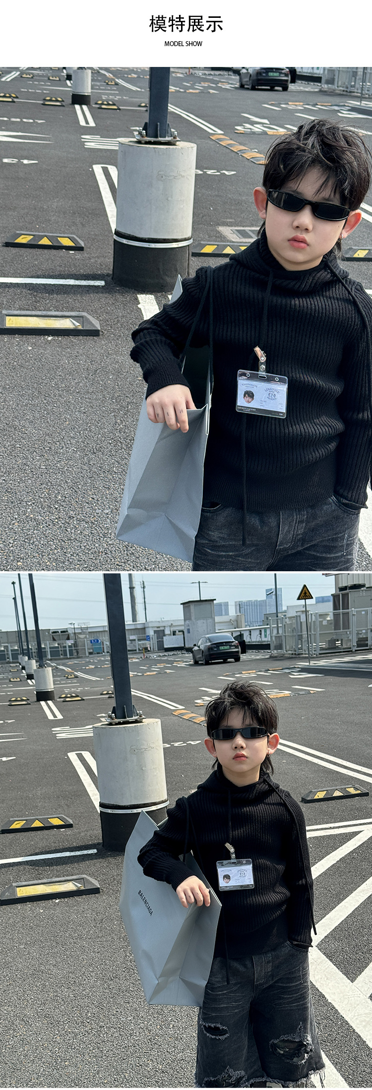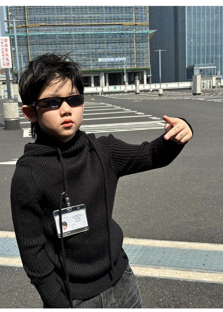 이홍제의 남아용 후드 스웨터, 2025 겨울 아동용 골지 스트레치 두꺼운 니트웨어, 다용도 트렌디스토어 가기