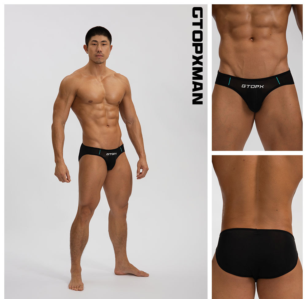 GTOPX纯色冰丝男生夏季薄款三角裤 一件代发U凸性感丝滑低腰内裤