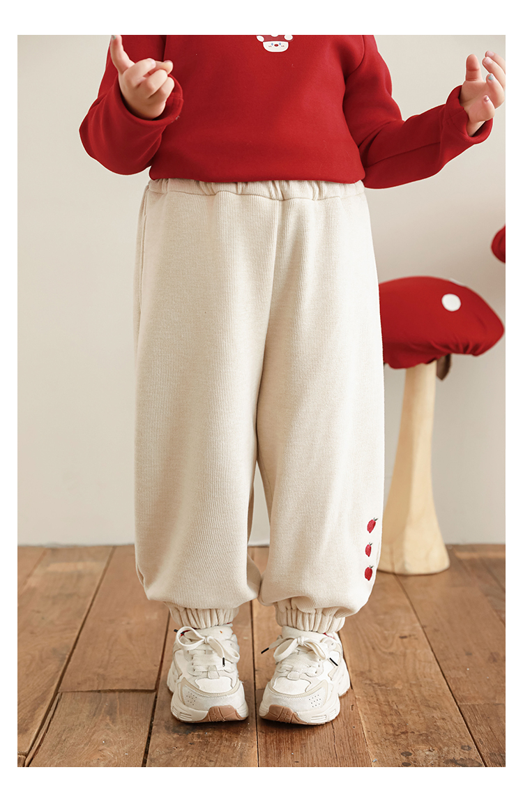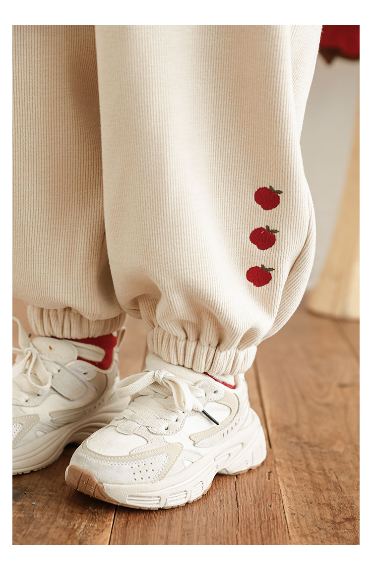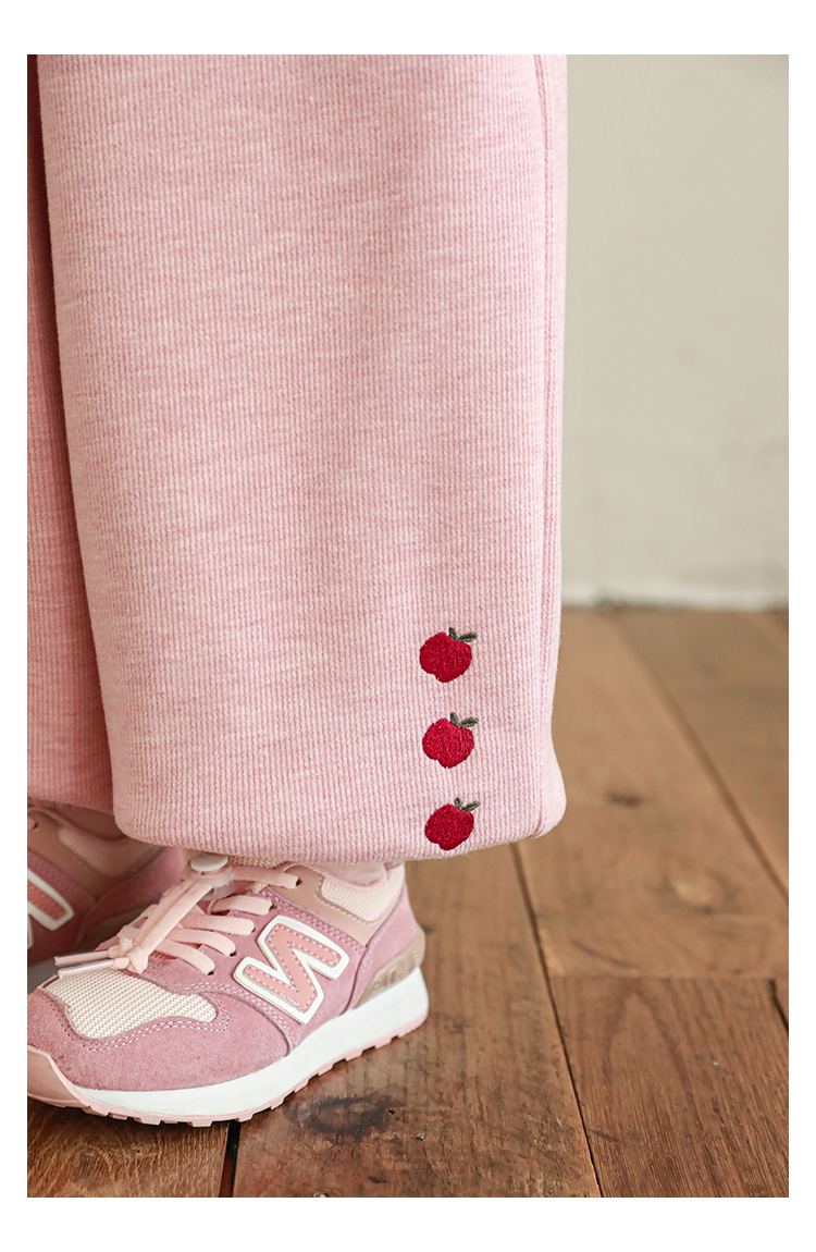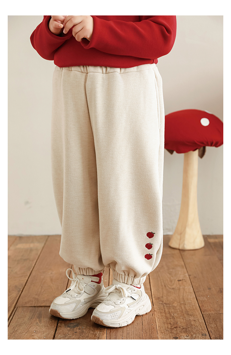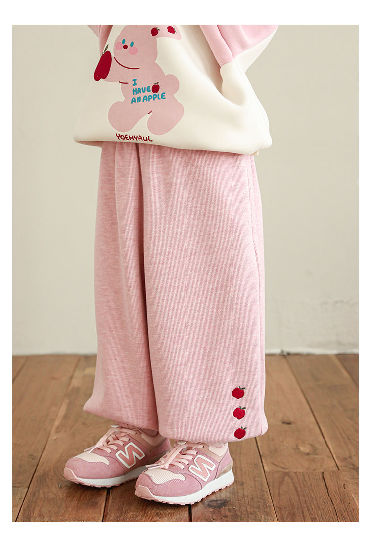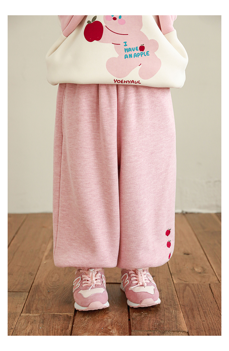 Wurib Girl's 기모 두꺼운 작은 사과 자수 니트 바지 겨울 따뜻한 느슨한 캐주얼 바지