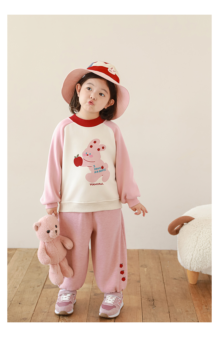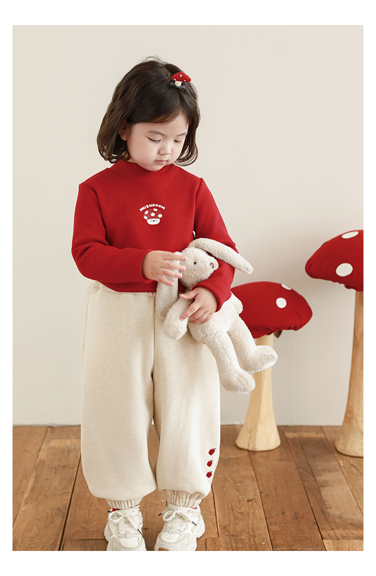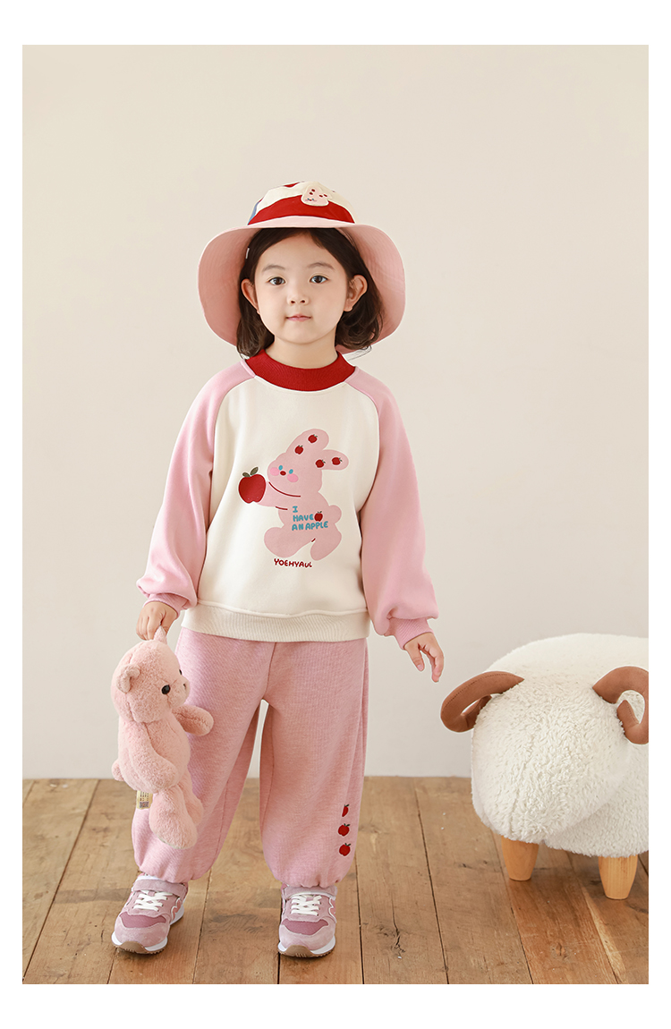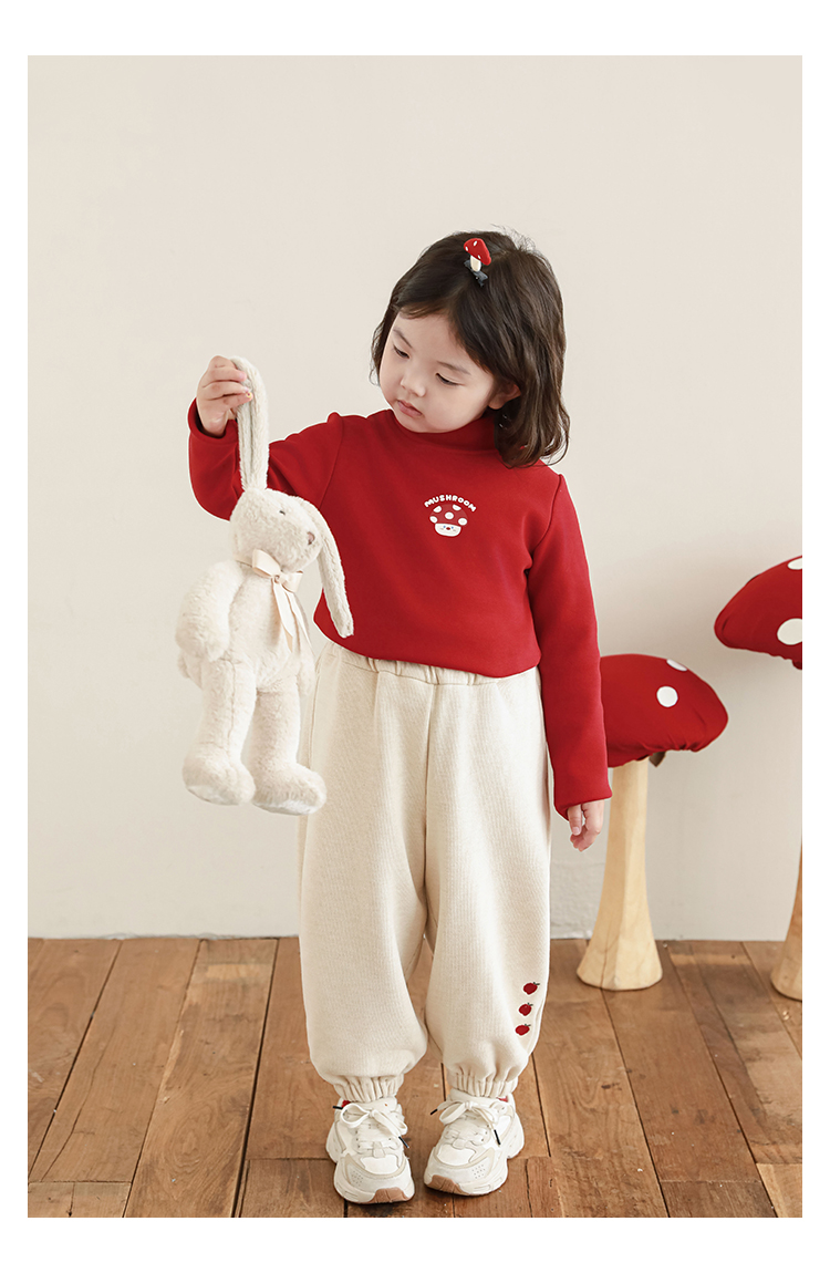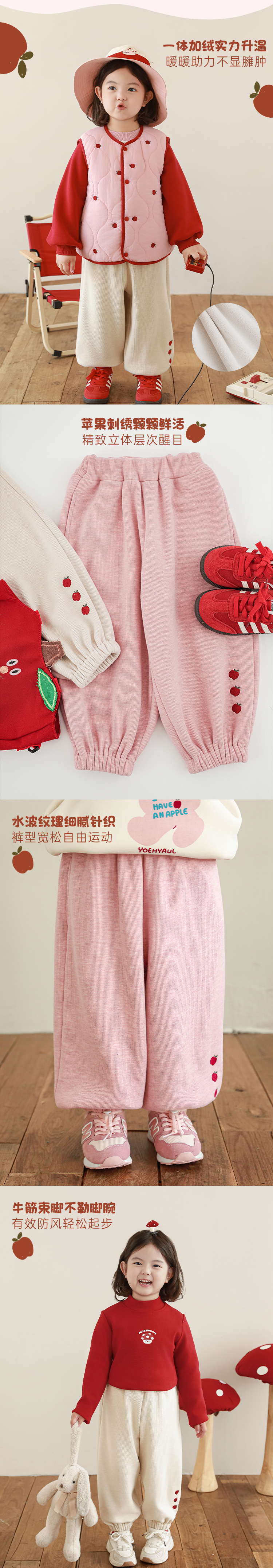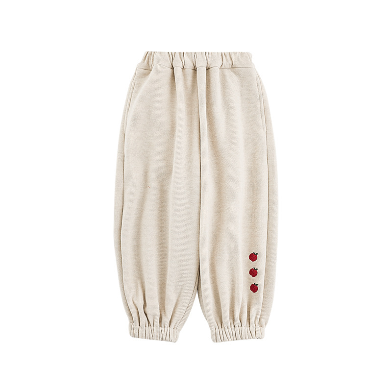 Wurib Girl's 기모 두꺼운 작은 사과 자수 니트 바지 겨울 따뜻한 느슨한 캐주얼 바지
