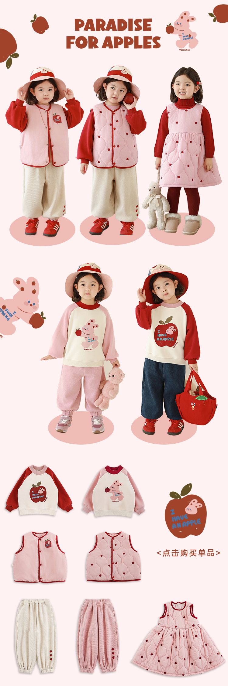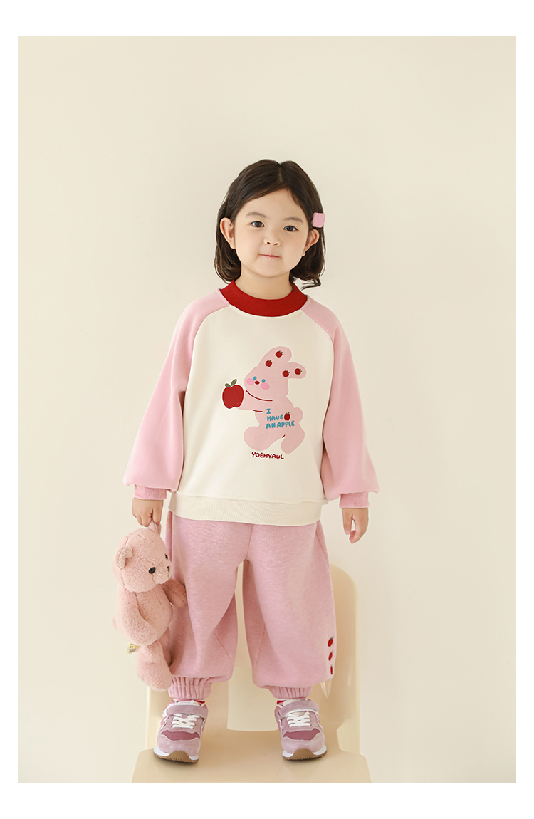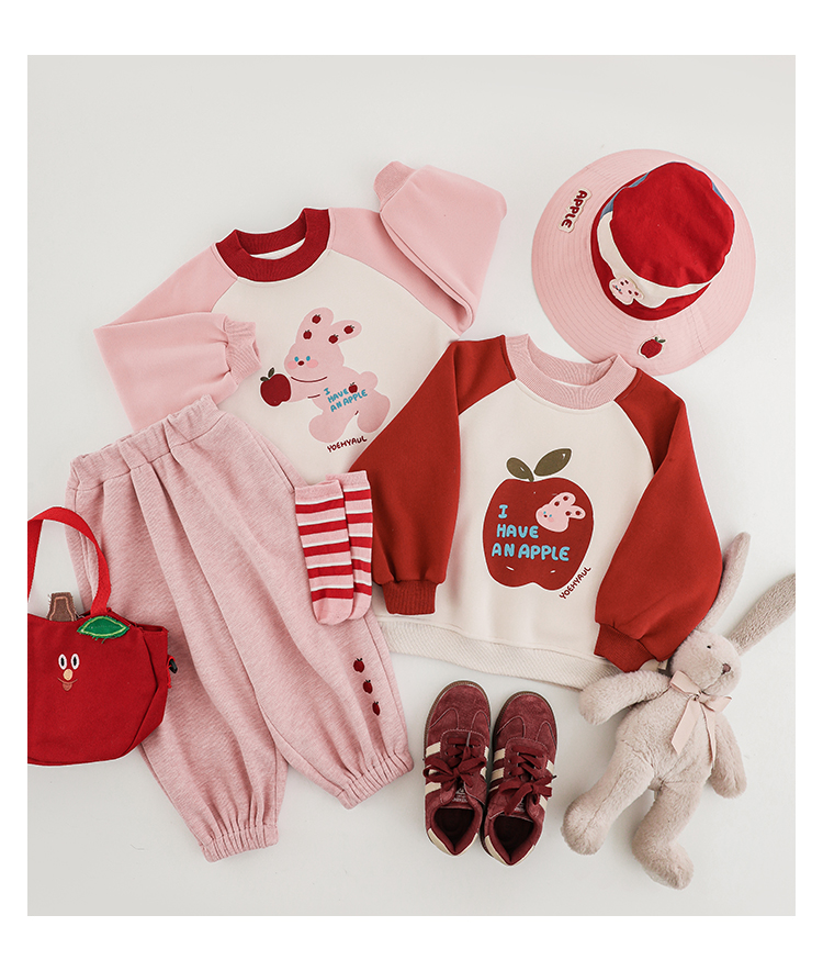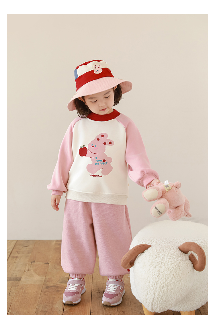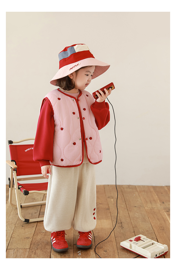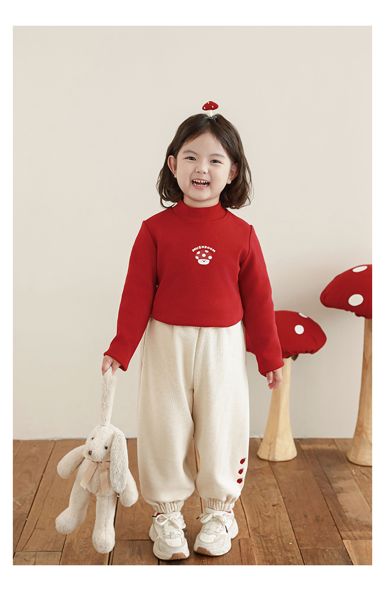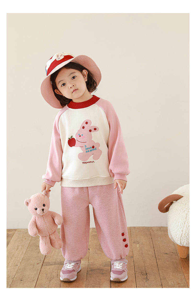 Wurib Girl's 기모 두꺼운 작은 사과 자수 니트 바지 겨울 따뜻한 느슨한 캐주얼 바지