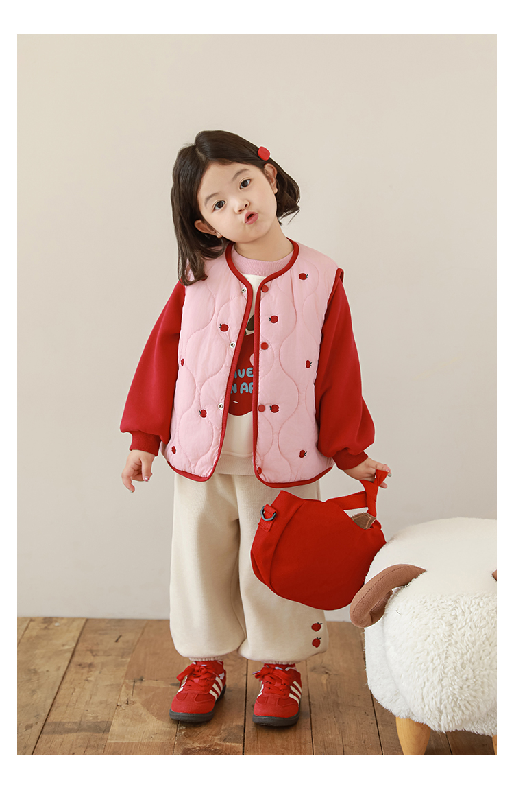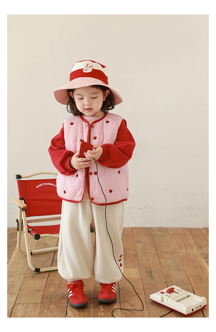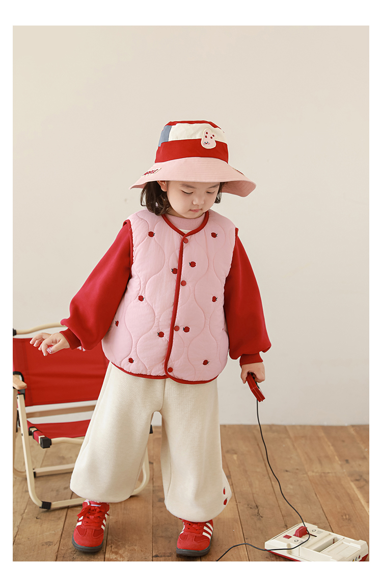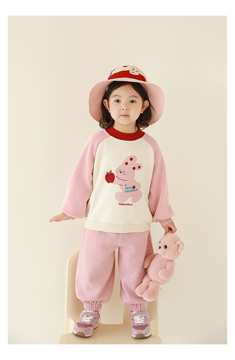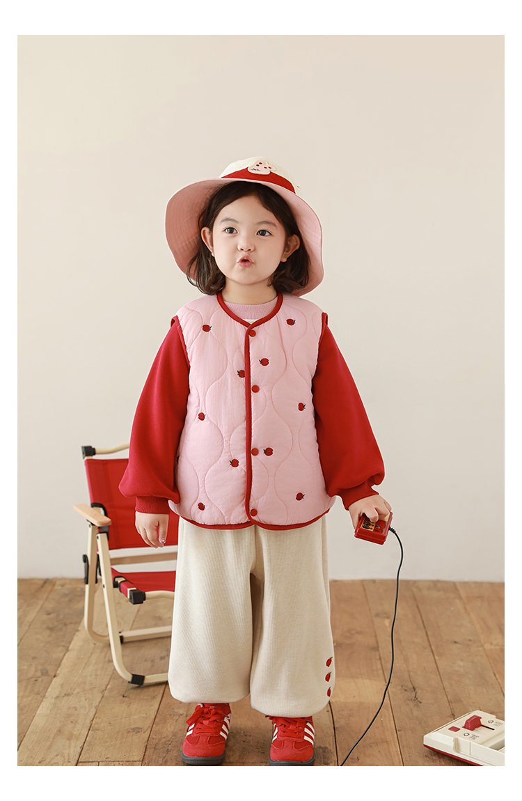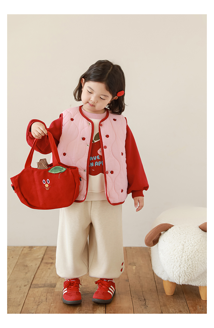 Wurib Girl's 기모 두꺼운 작은 사과 자수 니트 바지 겨울 따뜻한 느슨한 캐주얼 바지
