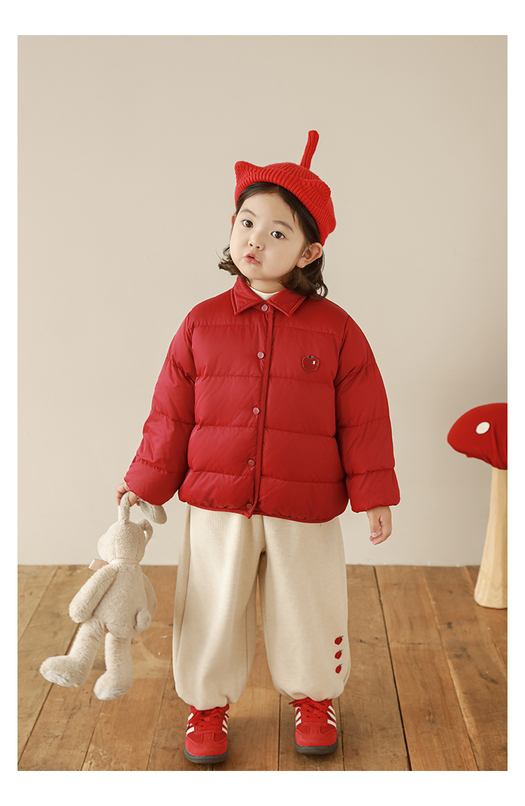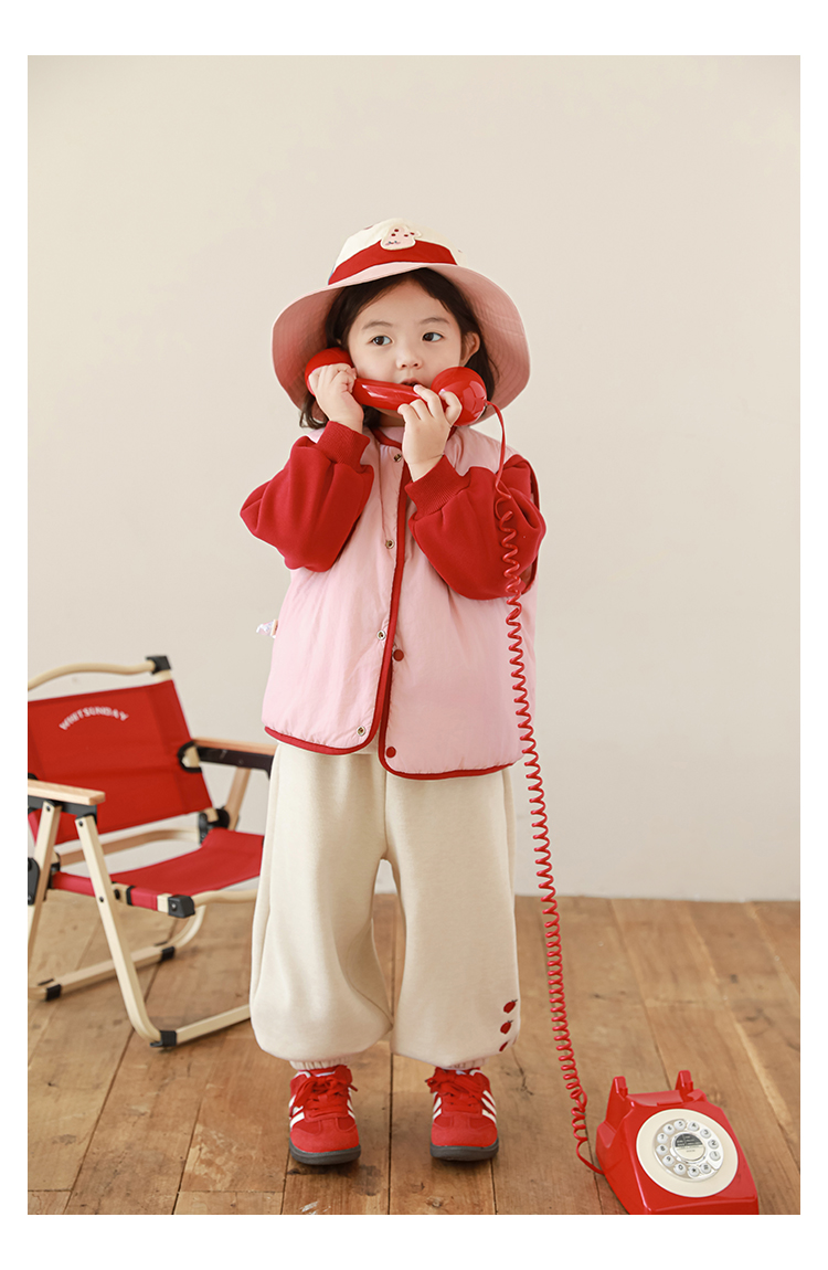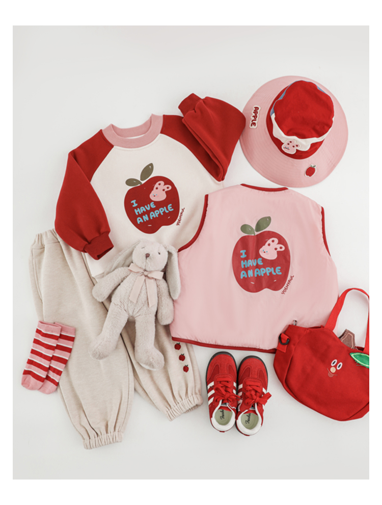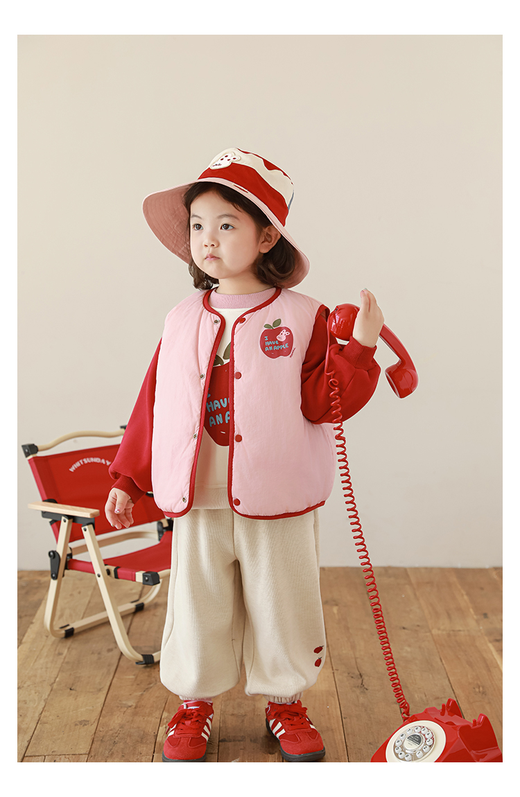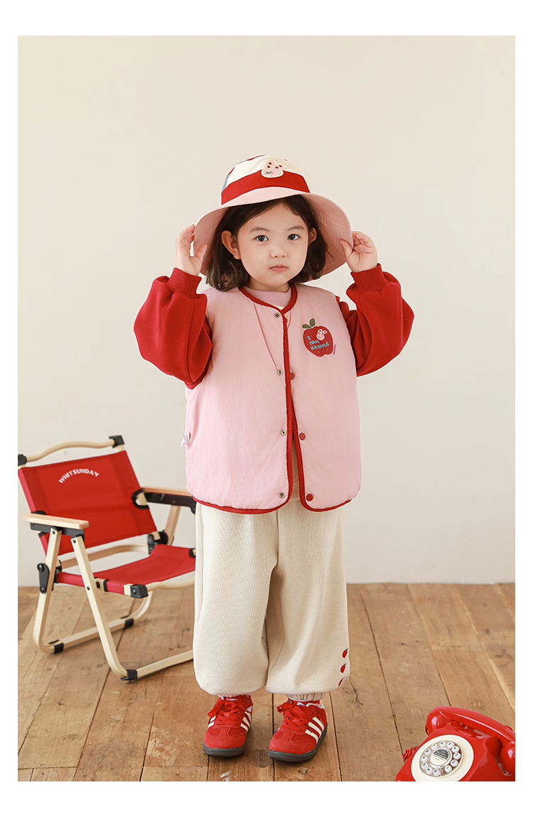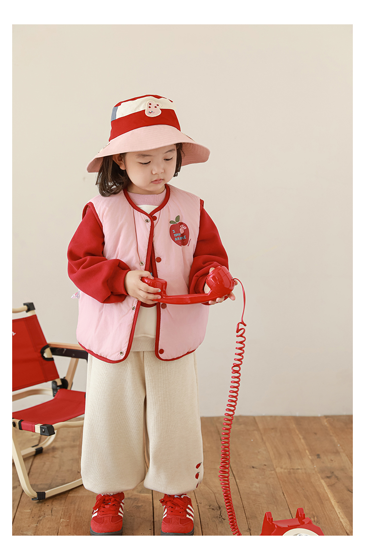 Wurib Girl's 기모 두꺼운 작은 사과 자수 니트 바지 겨울 따뜻한 느슨한 캐주얼 바지