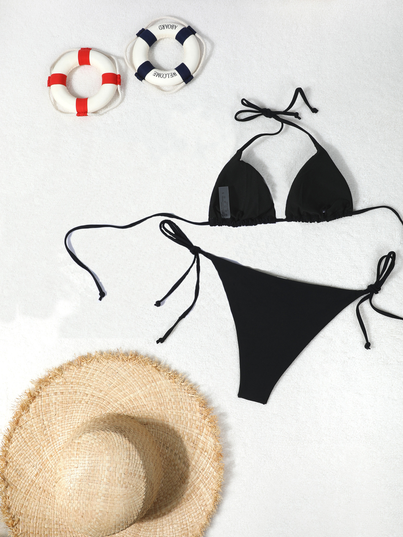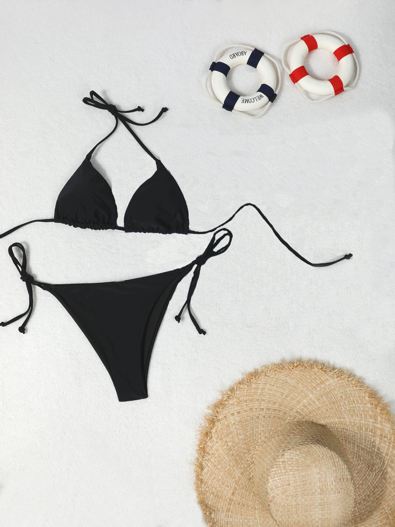 2024 유럽과 미국의 단색 섹시한 비키니 테더 스트랩 3 점 분할 BIKINI 국경 수영복 여성스토어 가기