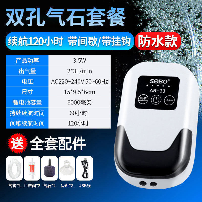 • 방수 [권장♥후크 포함/풍량 조절 가능] 배터리 수명 120시간/이중 구멍 에어 스톤 패키지