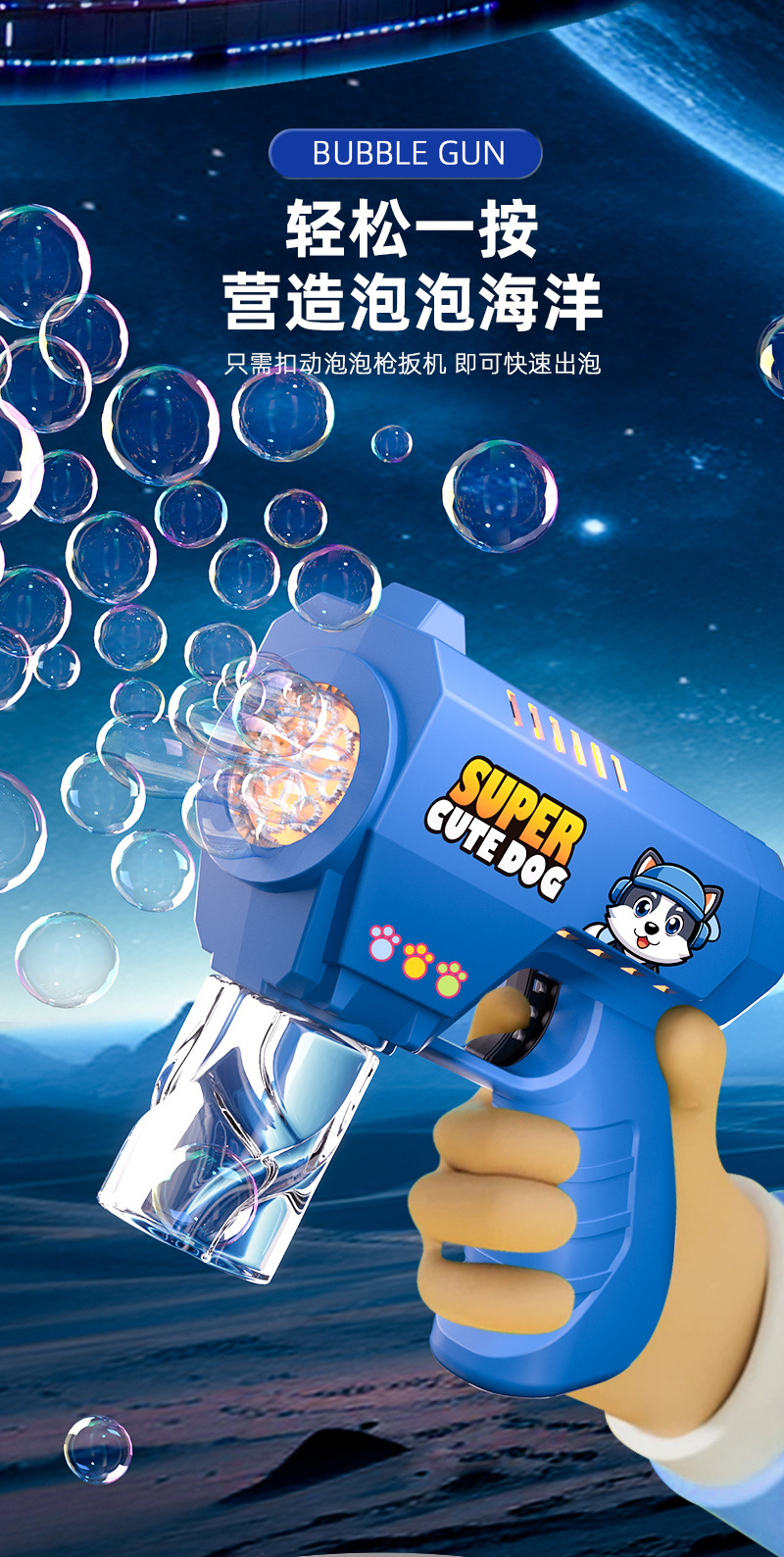 2024 새로운 공간 거품 총 어린이 만화 자동 휴대용 가벼운 거품 기계 소년과 소녀 장난감 도매