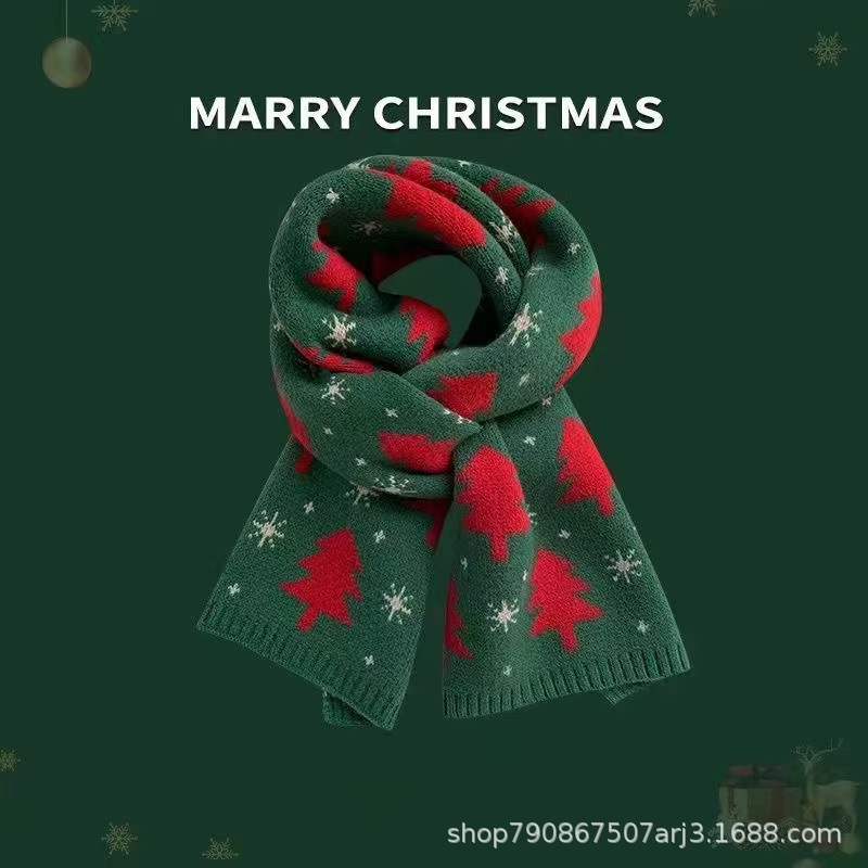 빨간 크리스마스 트리 니트 스카프 한국 스타일 분위기 겨울 따뜻함 다용도 학생 커플 크리스마스 선물 목도리