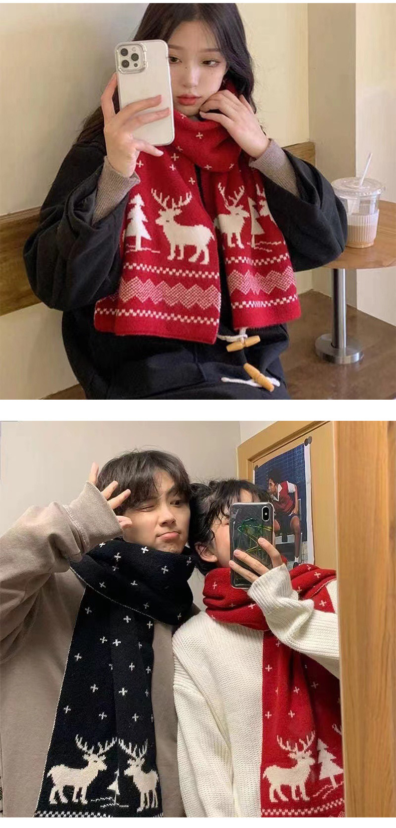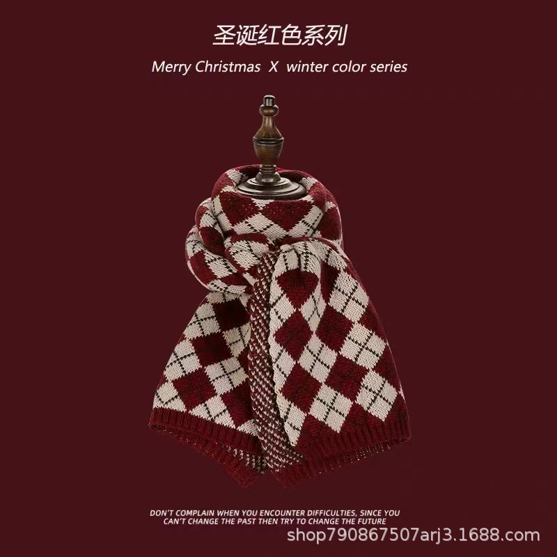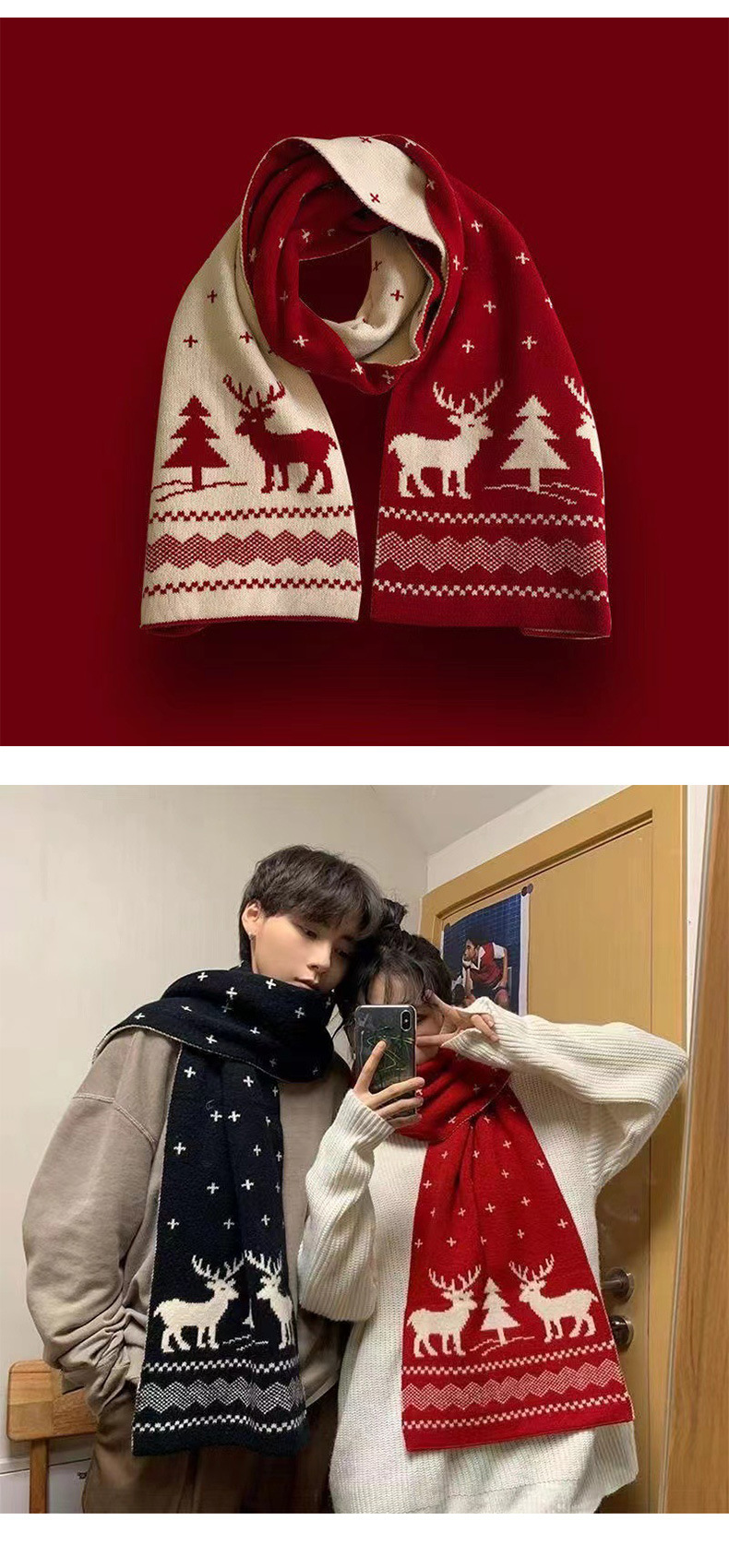 빨간 크리스마스 트리 니트 스카프 한국 스타일 분위기 겨울 따뜻함 다용도 학생 커플 크리스마스 선물 목도리스토어 가기
