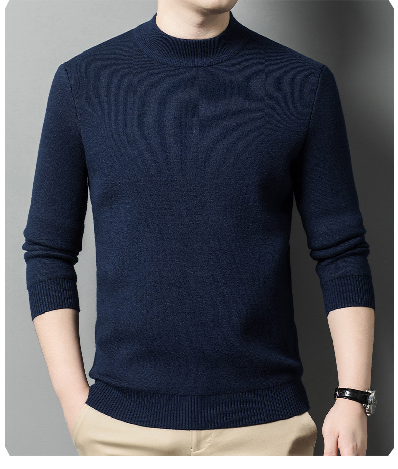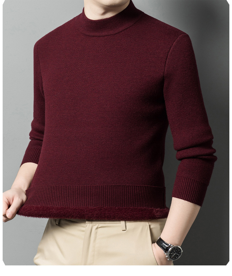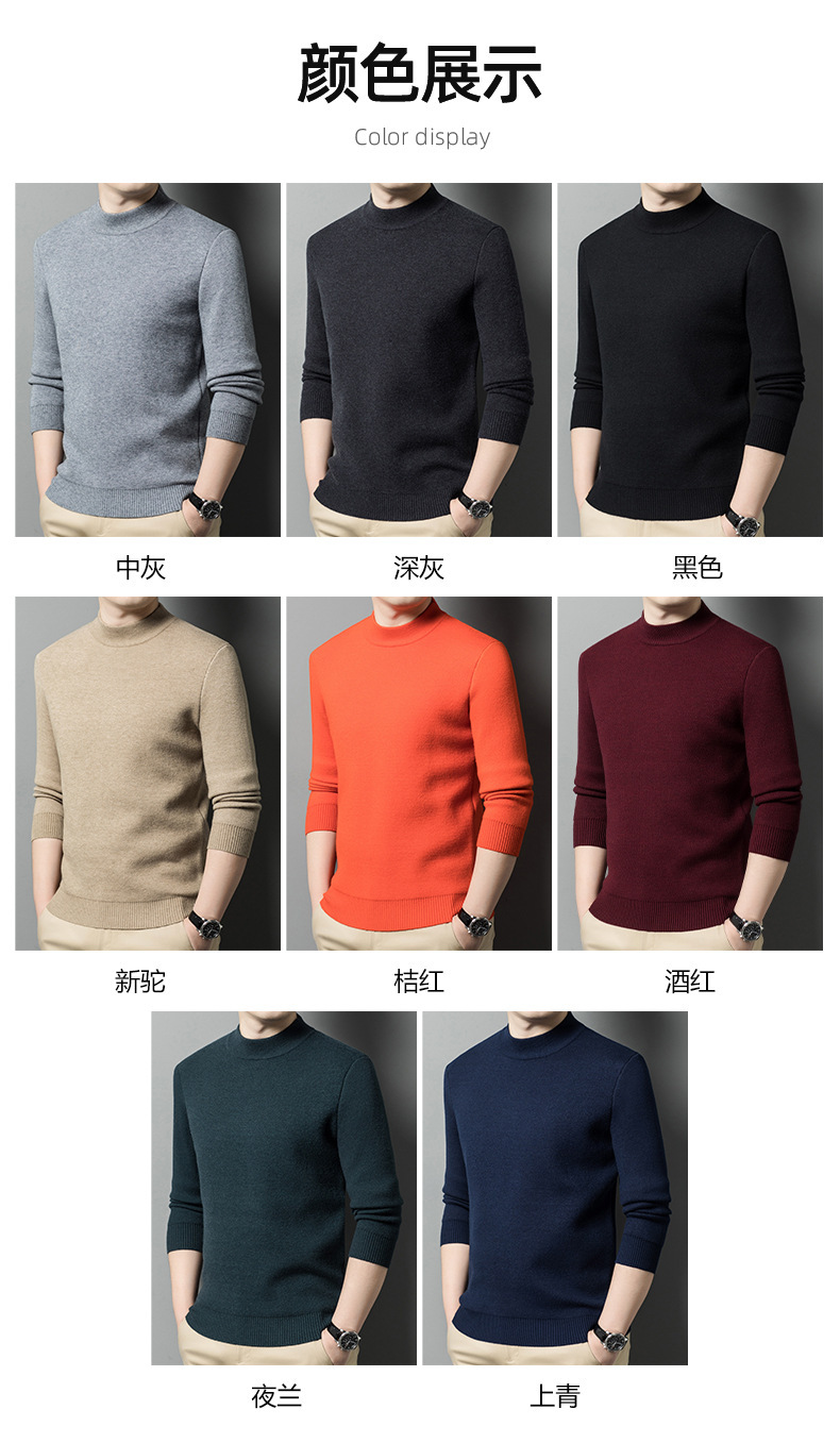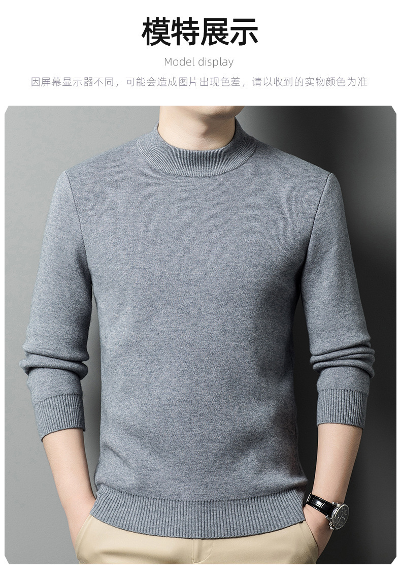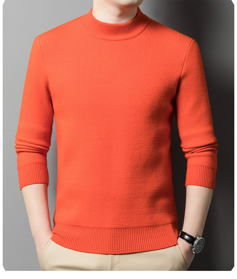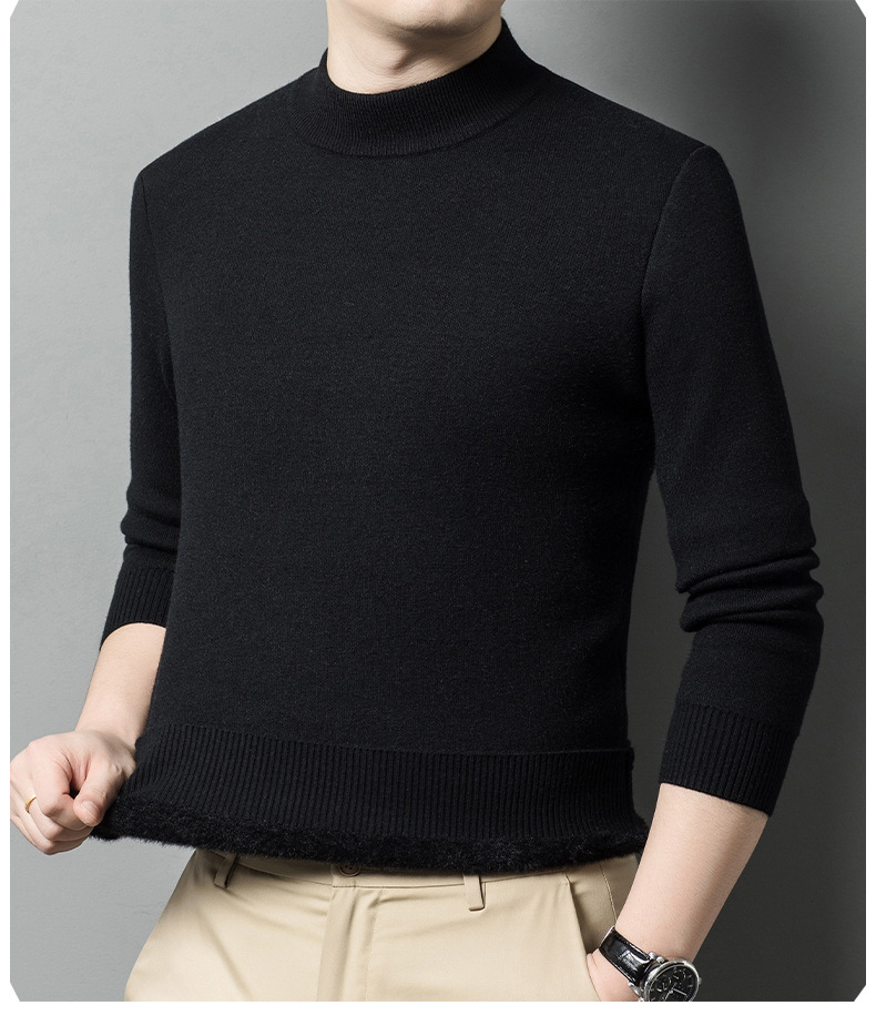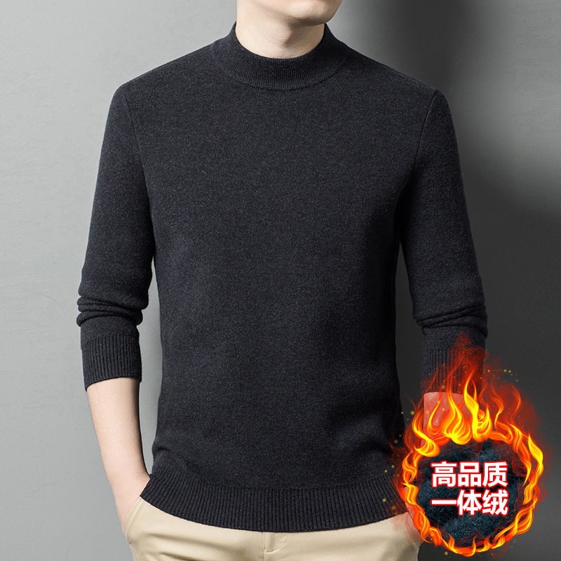 가을과 겨울 새로운 단색 기모 두꺼운 밍크 원피스 벨벳 스웨터 남성용 하프 하이 칼라 따뜻한 스웨터 남성복스토어 가기