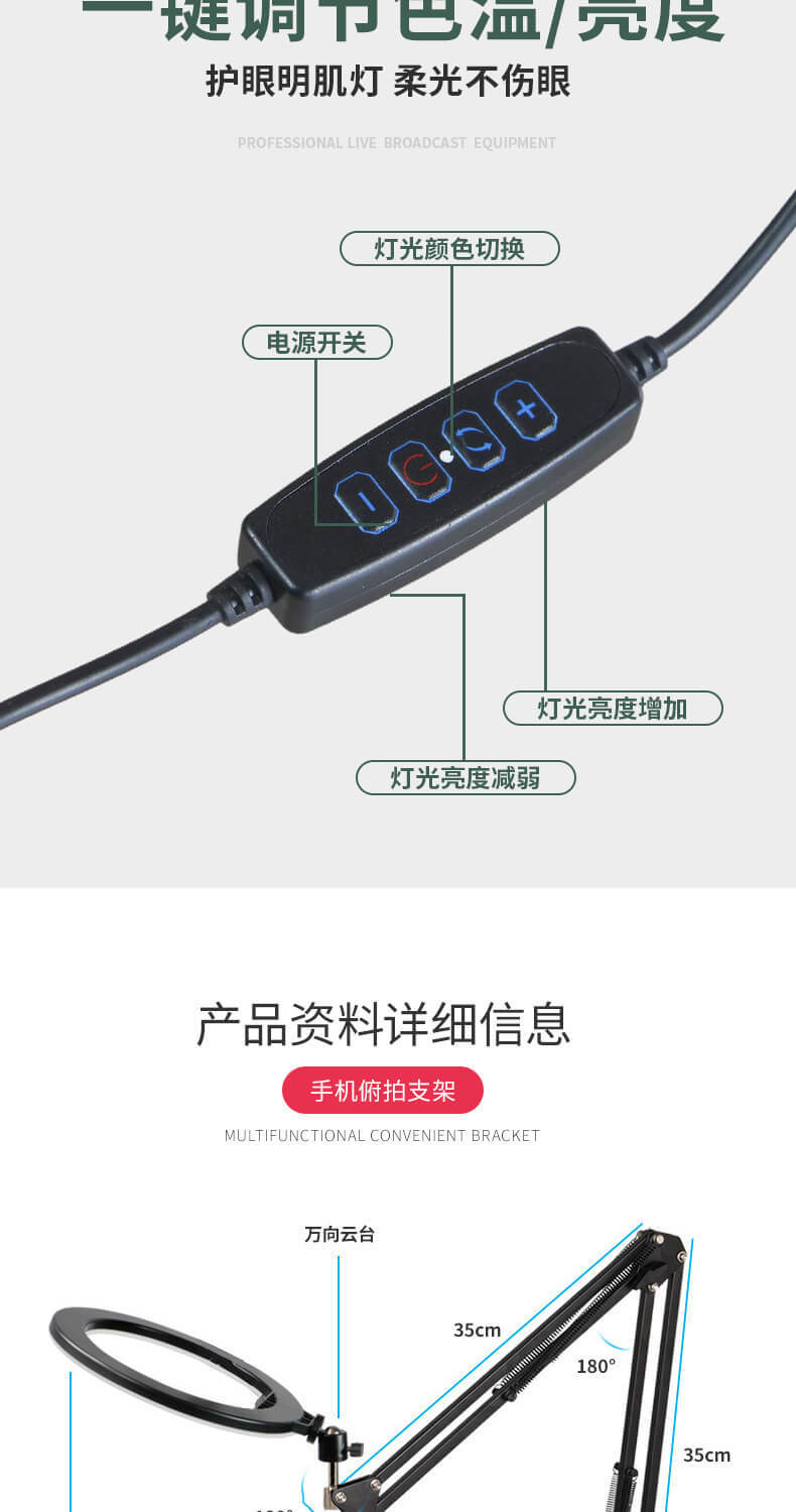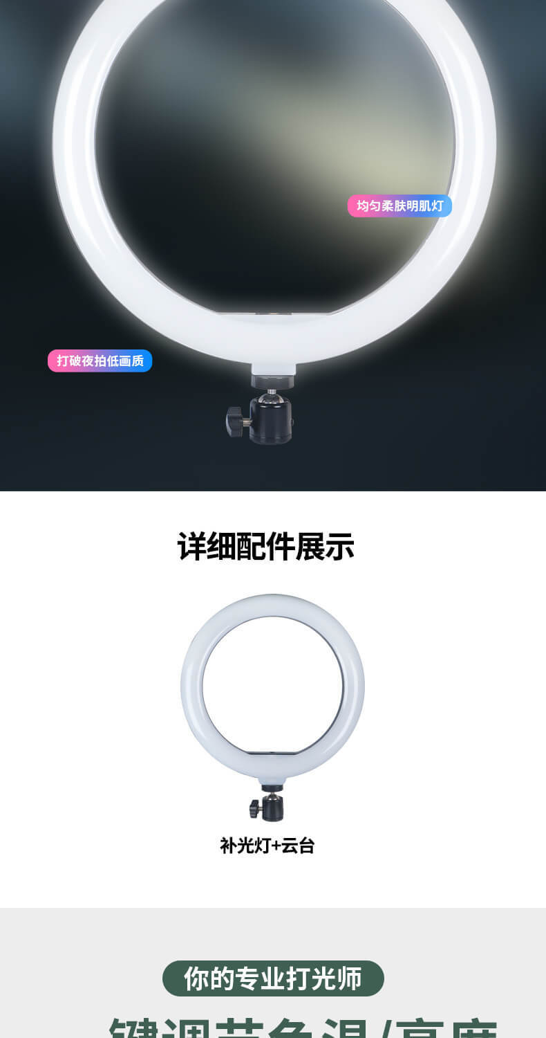 휴대 전화 라이브 지원 10 인치 조명 보충 비디오 녹화 데스크톱 스틸 라이프 페인팅 및 서예 음식 메이크업 엎드린 사진