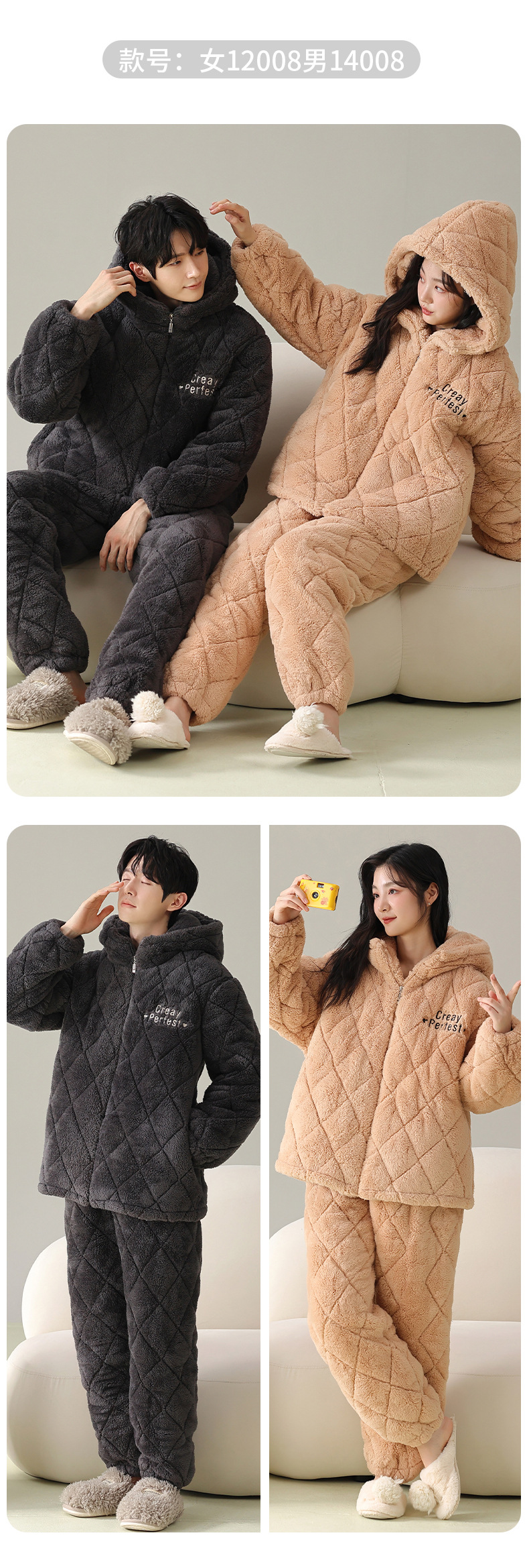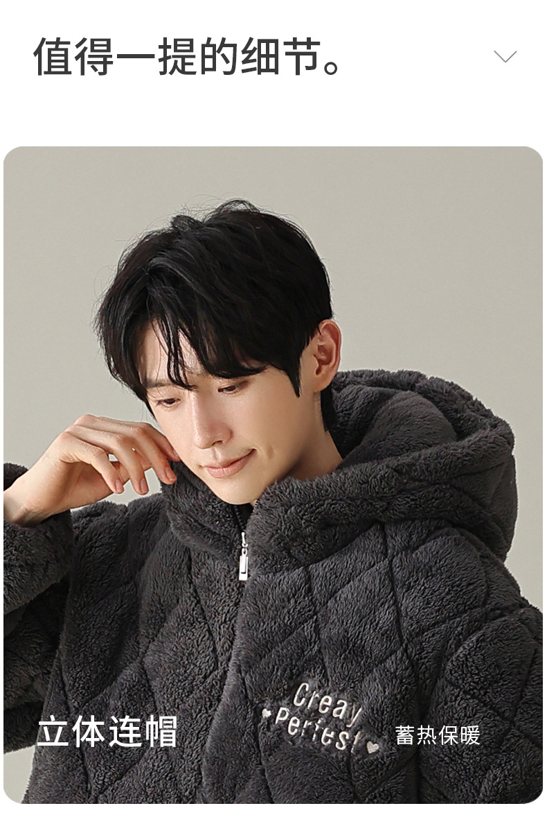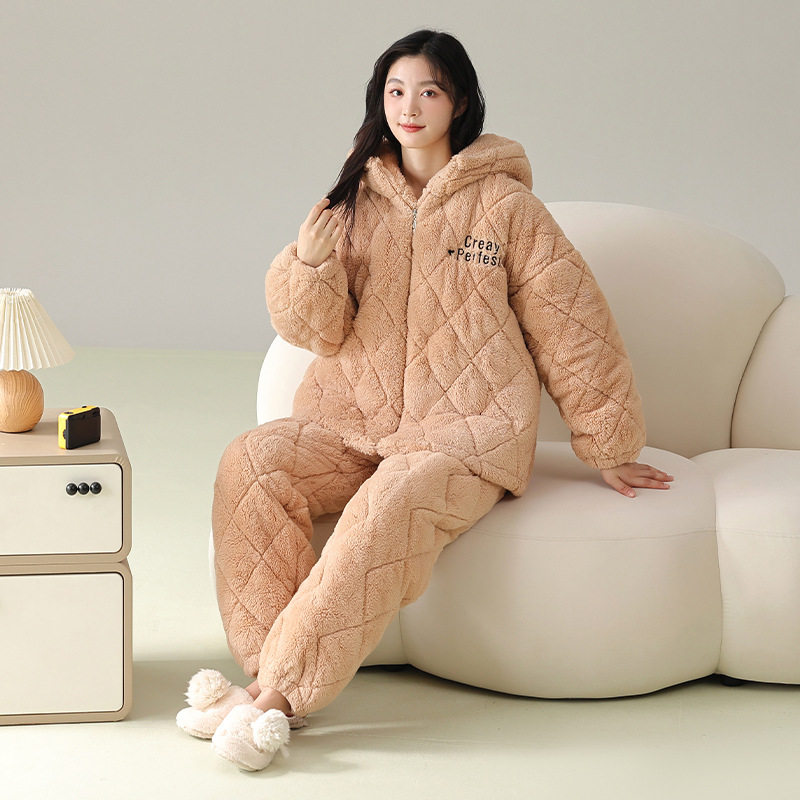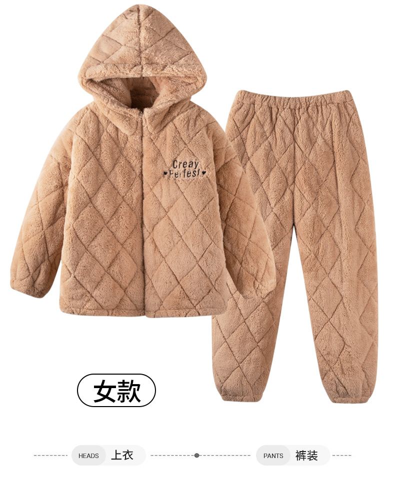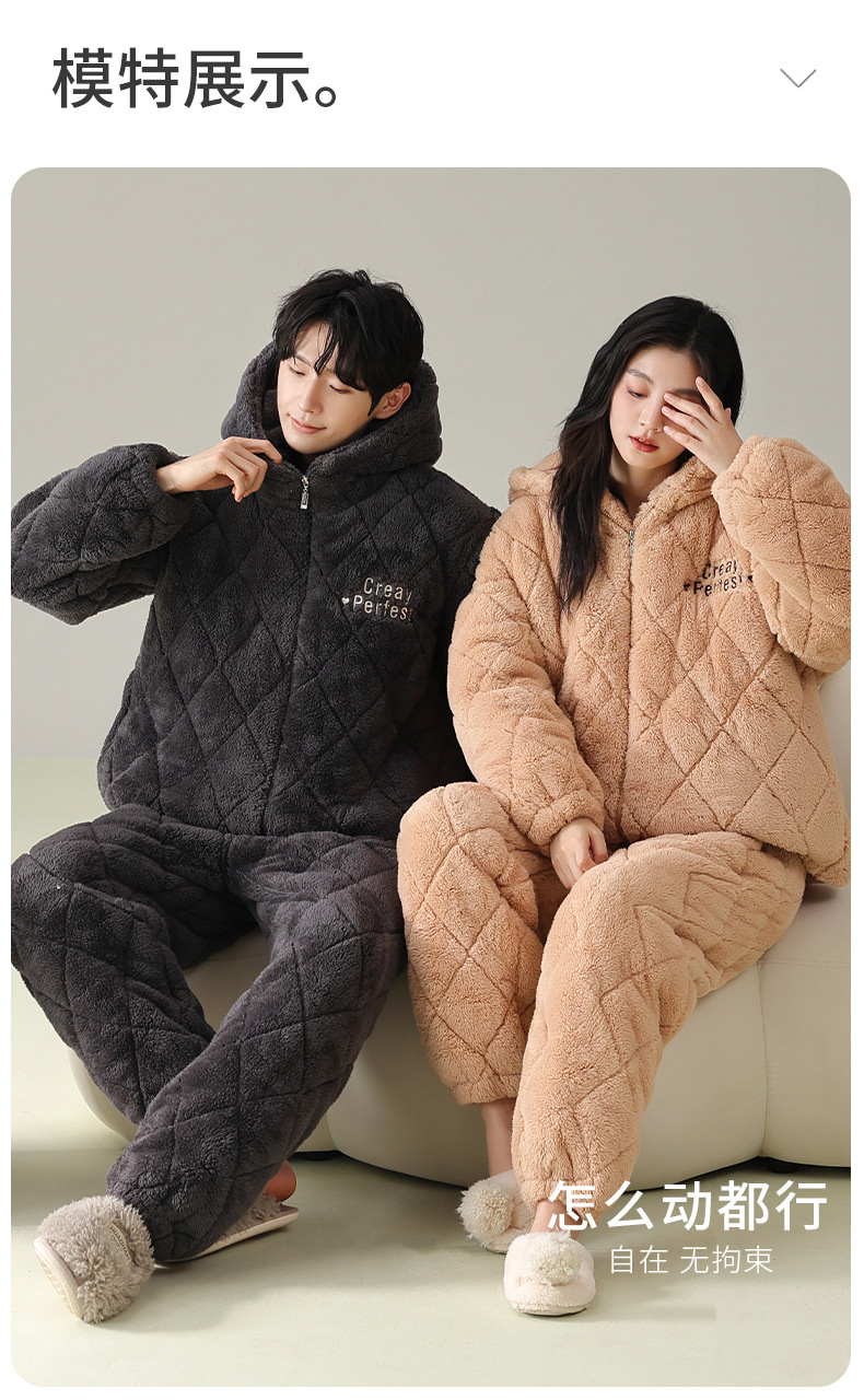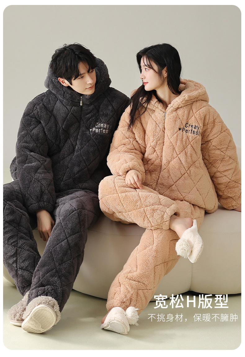 겨울 커플 잠옷 여성의 겨울 두꺼운 기모 따뜻한 3 층 산호 양털 퀼트 남성 긴팔 홈 의류 세트스토어 가기